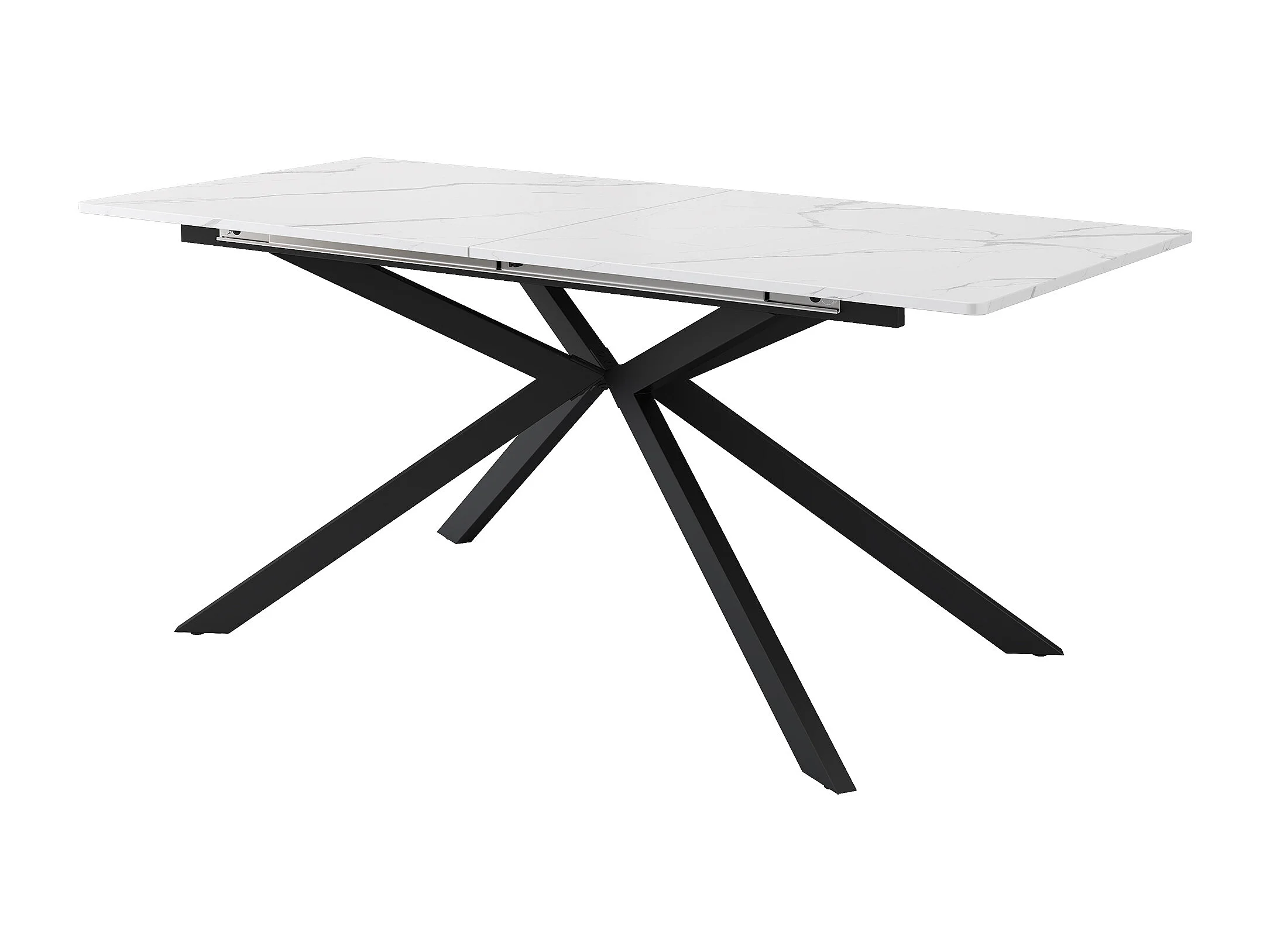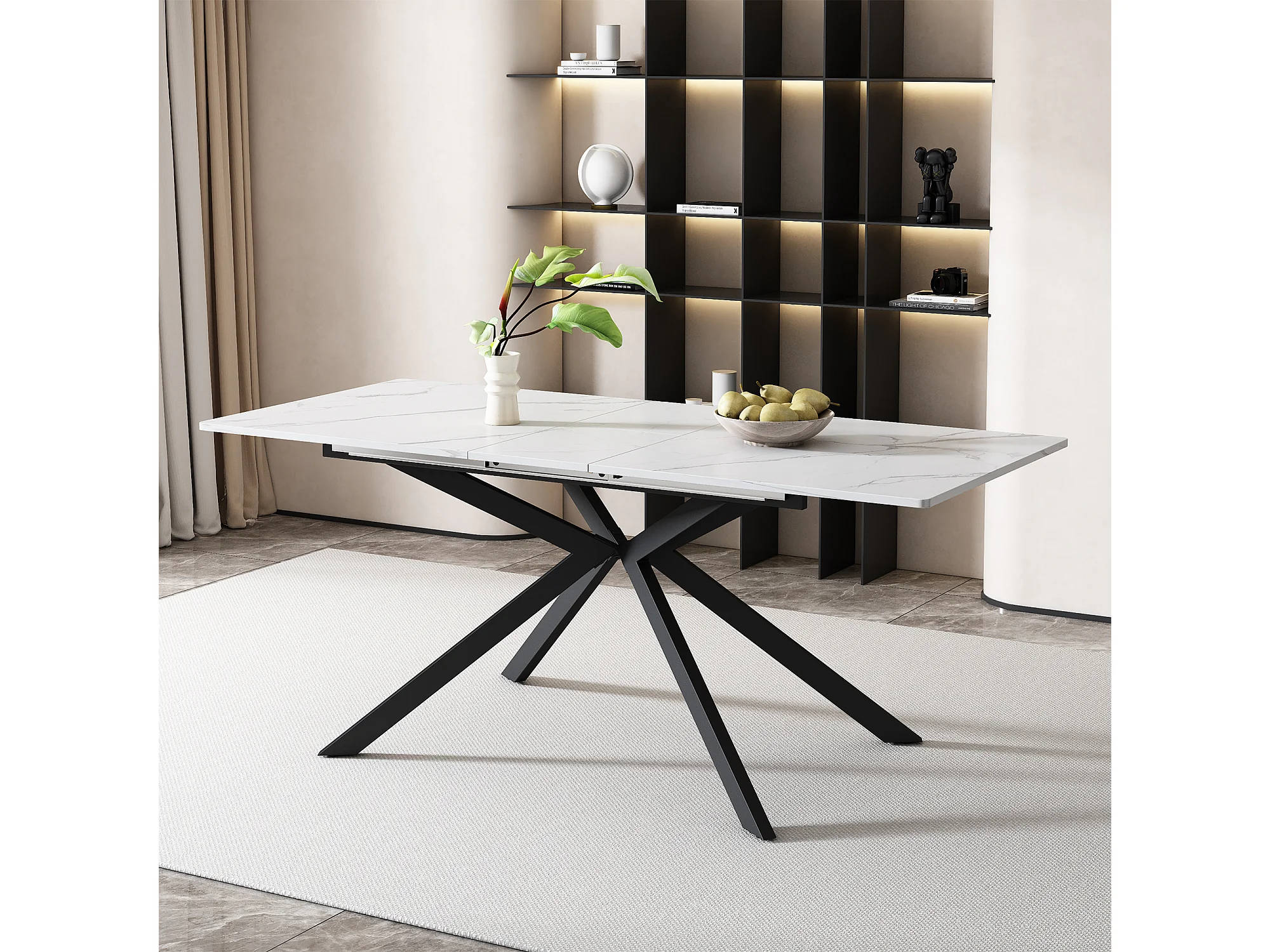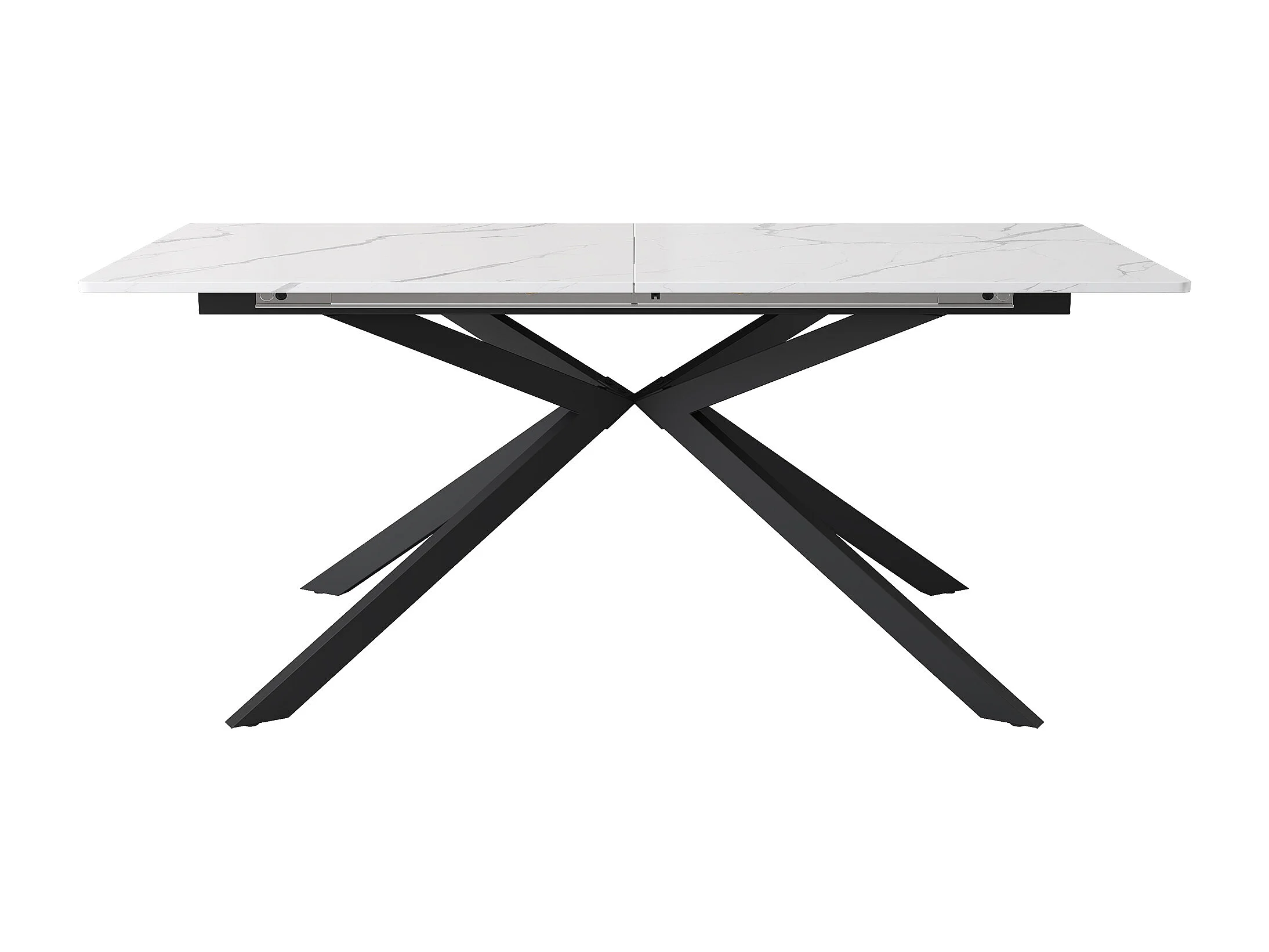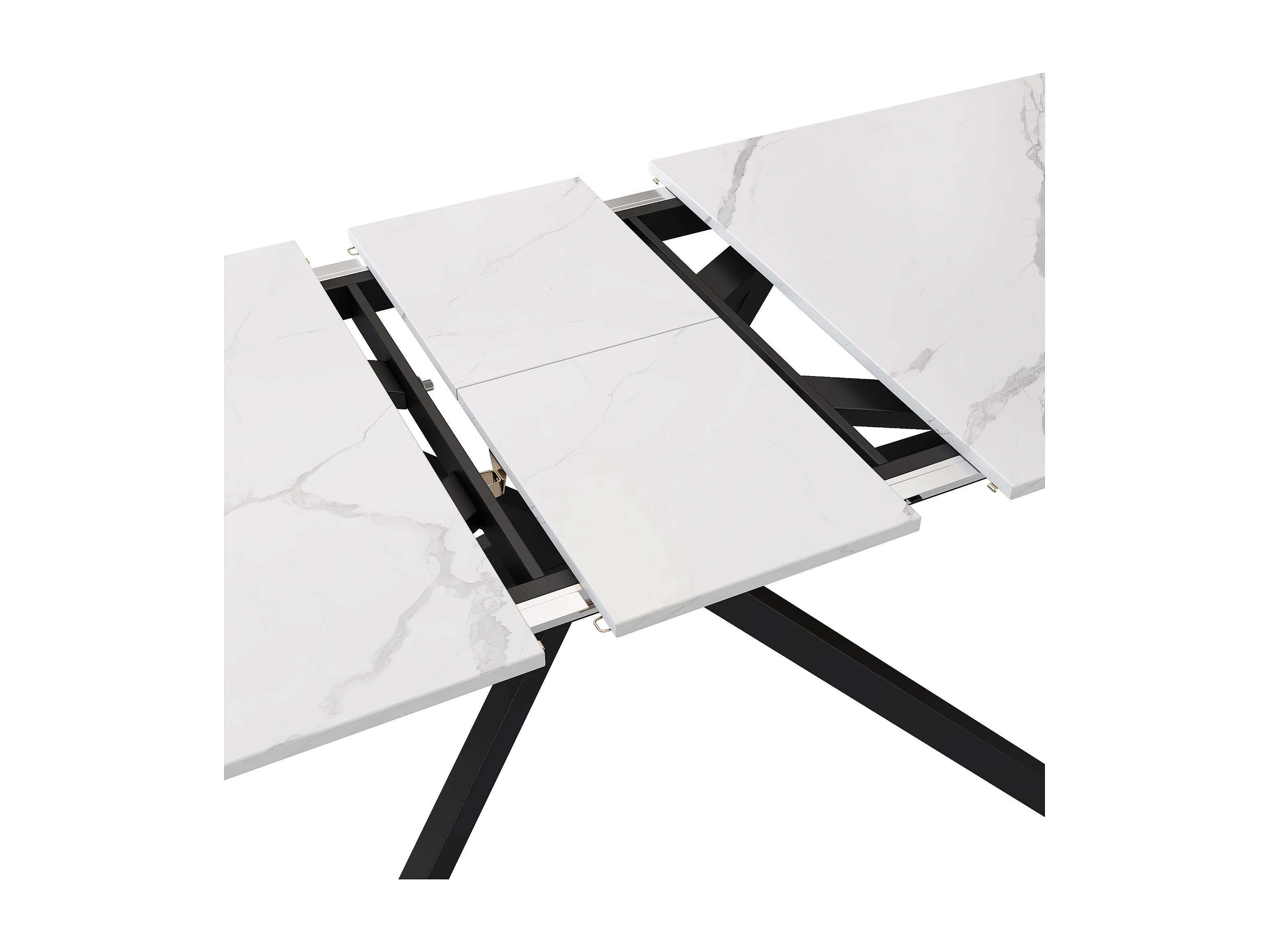 Table à manger extensible - pieds croisés en fer forgé - plateau à motif de marbre - Blanc & Noir