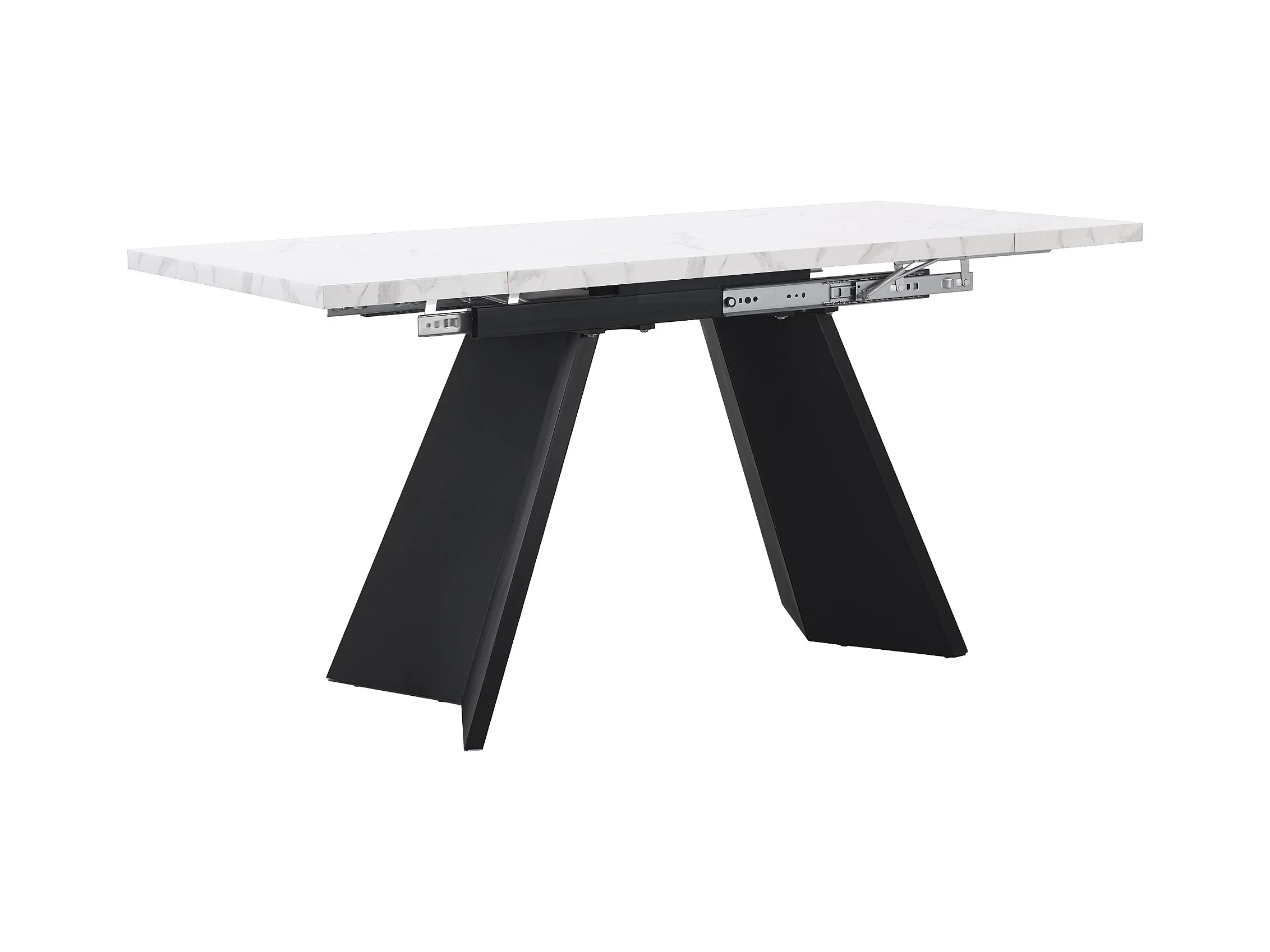 Table à manger extensible rectangle 6-8 personnes, plateau en placage marbre blanc avec pieds en métal noir - 179.5x80x75.5cm