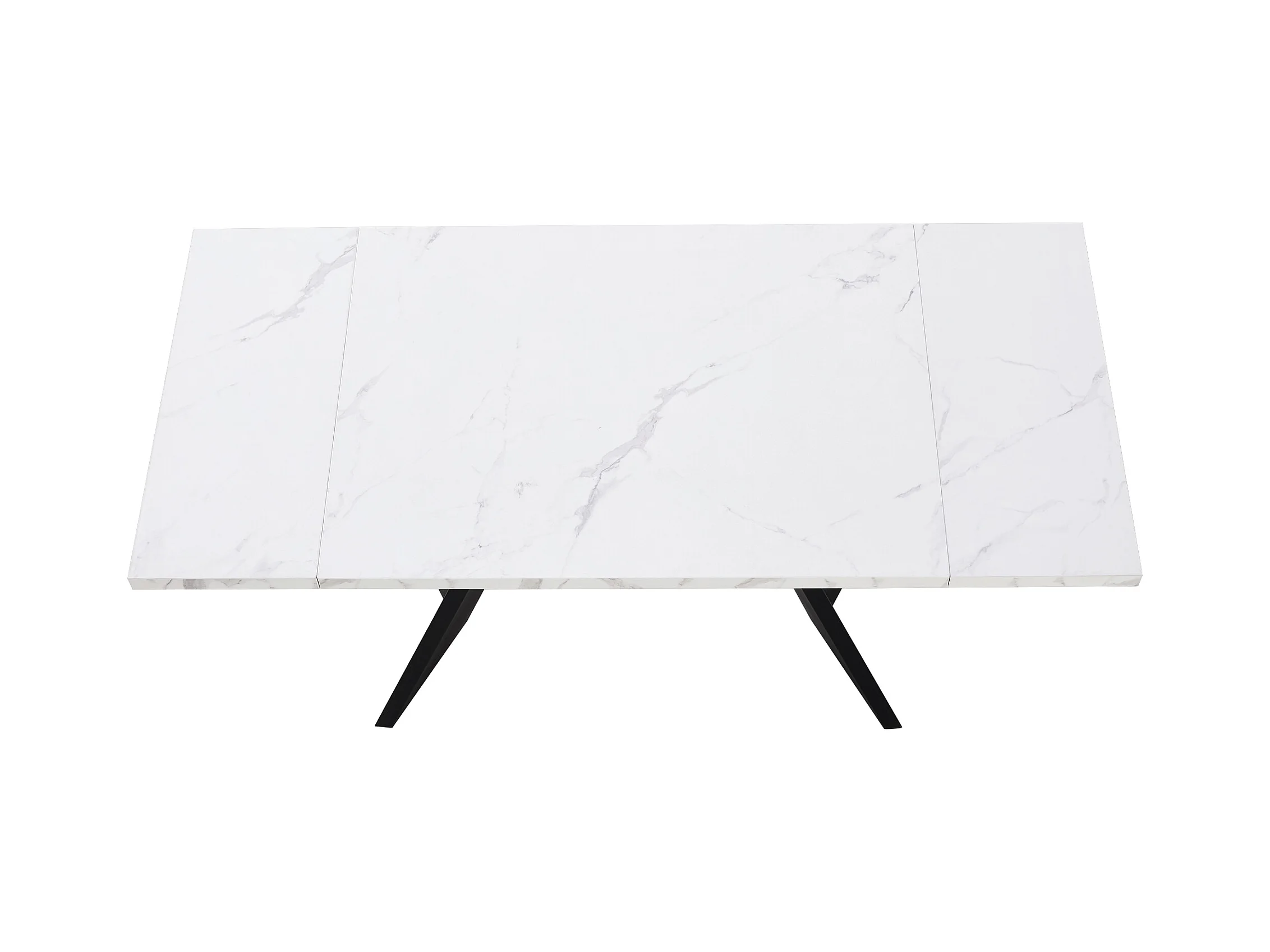 Table à manger extensible 159x75cm 6 personnes en MDF, placage marbre blanc avec pied noir