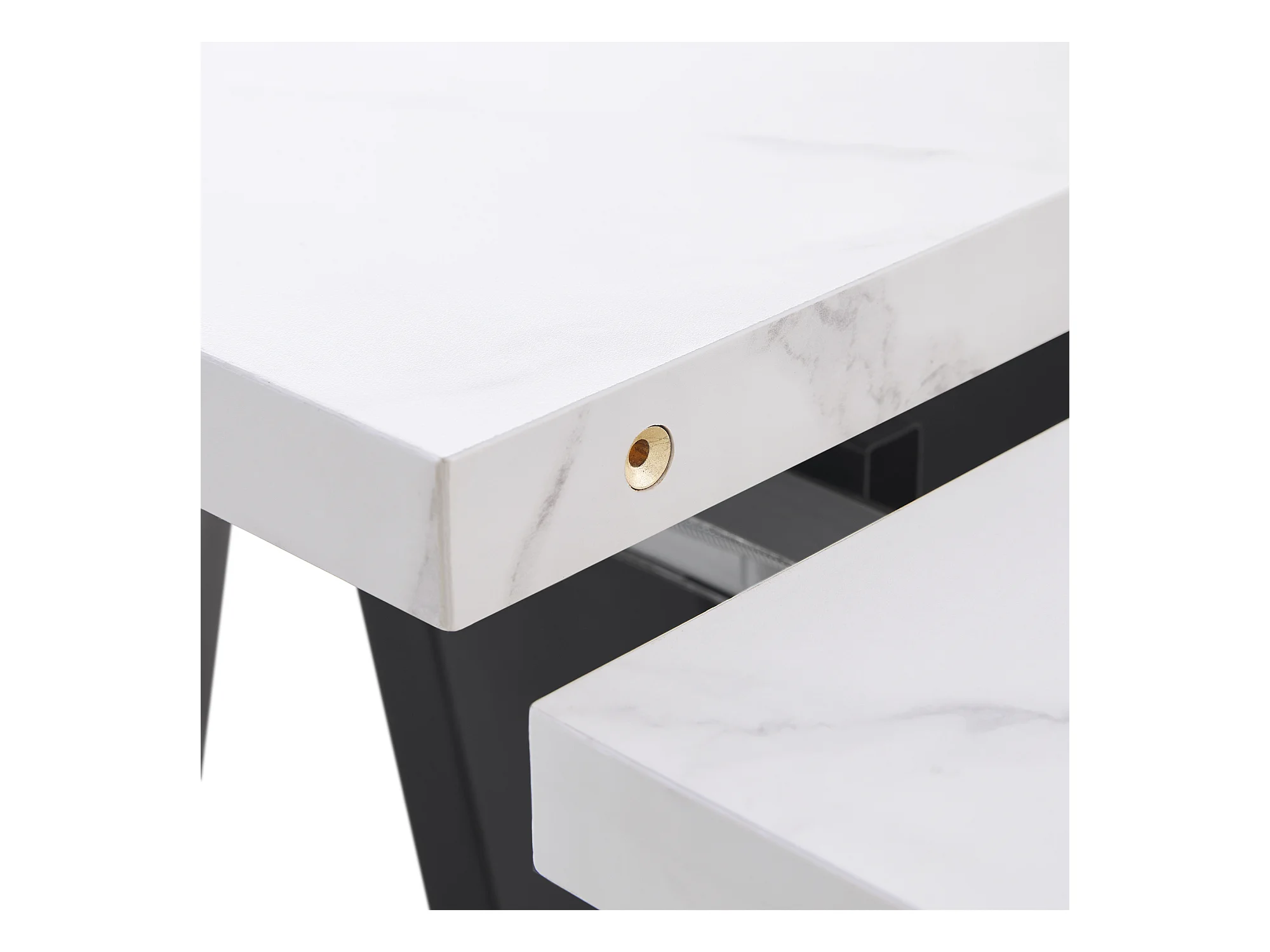 Table à manger extensible 6 à 10 personnes en MDF et métal - Effet marbre blanc et noir - CATONAV
