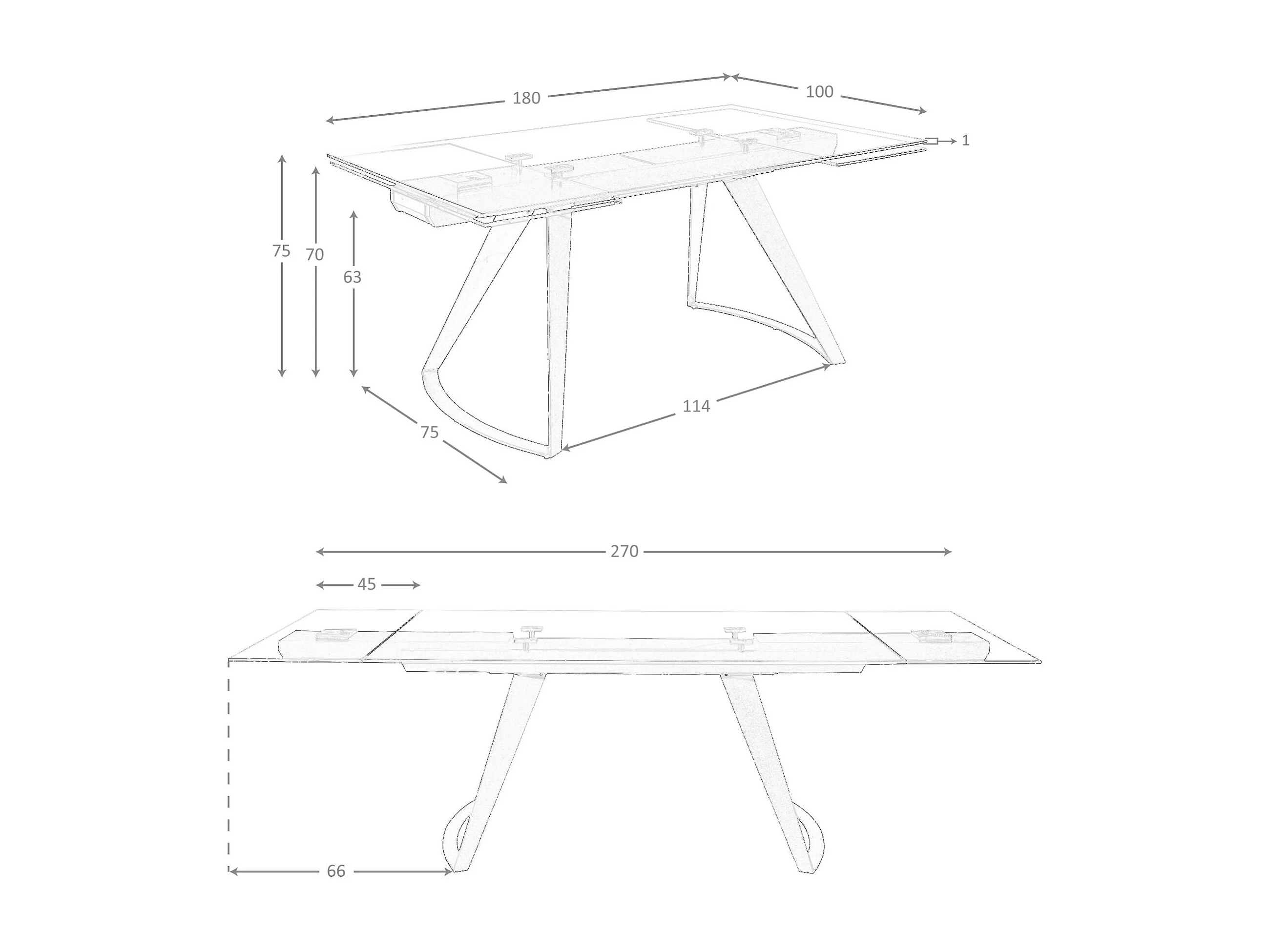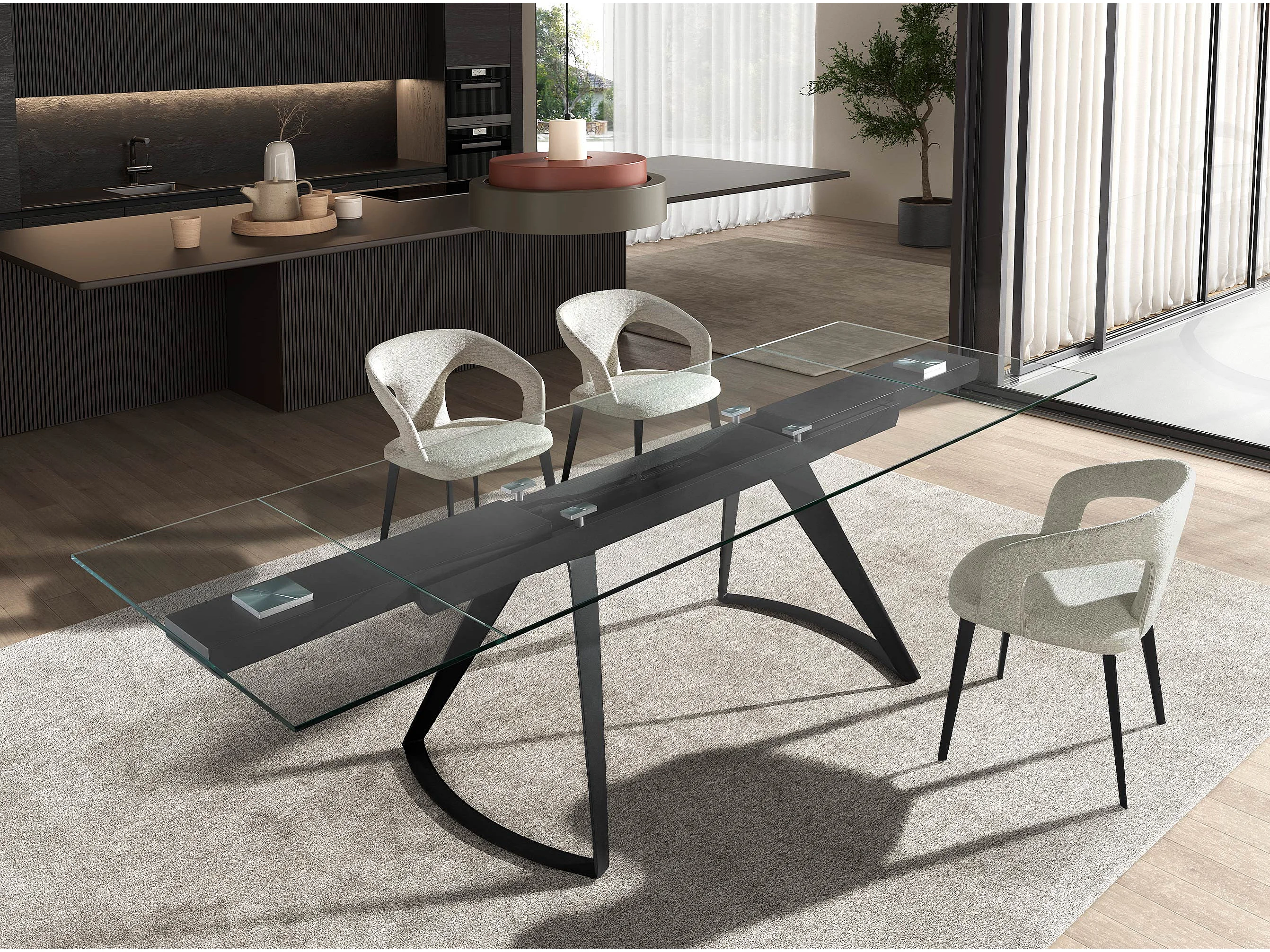 Table à manger extensible rectangulaire en verre trempé et acier noir 1150 ANGEL CERDA