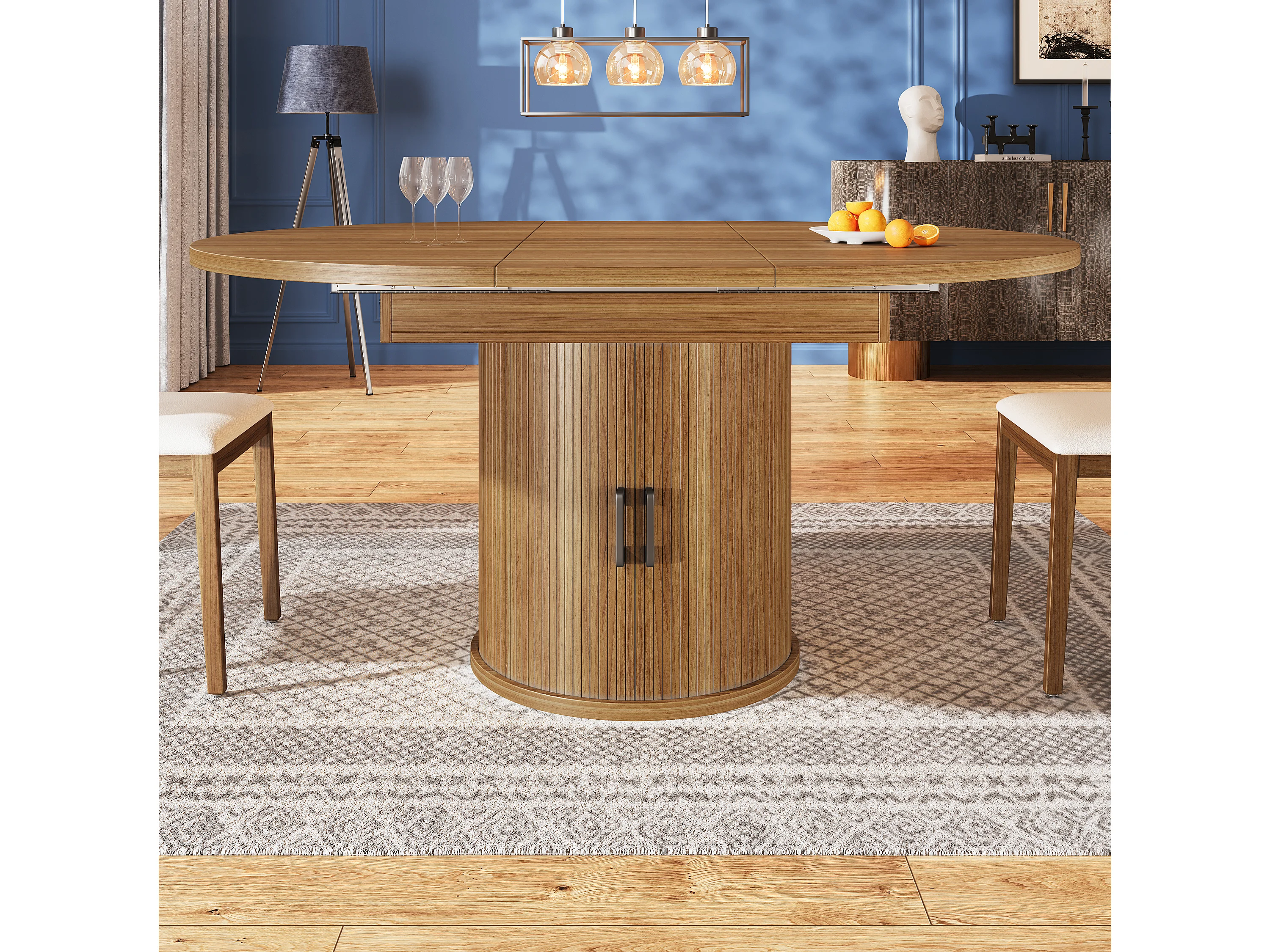 Table à manger extensible ronde/ovale, MDF, noyer/noir (118x118x76.8cm)