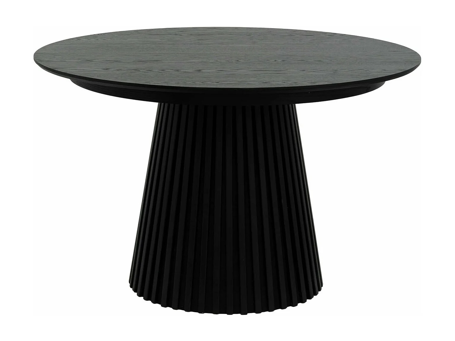 Table à manger extensible Svendborg - Ronde - MDF et placage de chêne - Noir