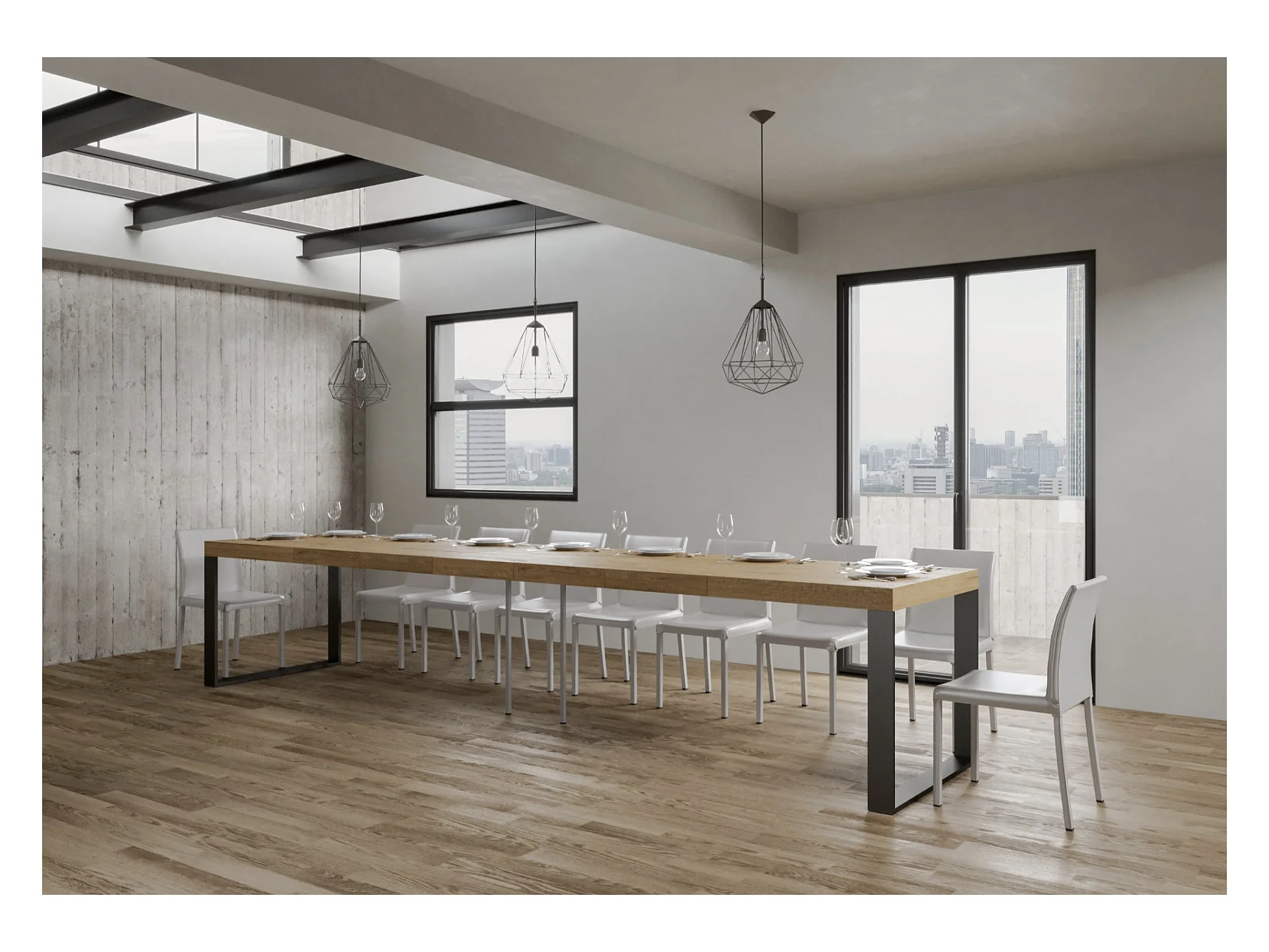 Table à manger extensible Tiroz-Couleur Naturel-4 pieds-5 rallonges épaisses-160 à 420cm