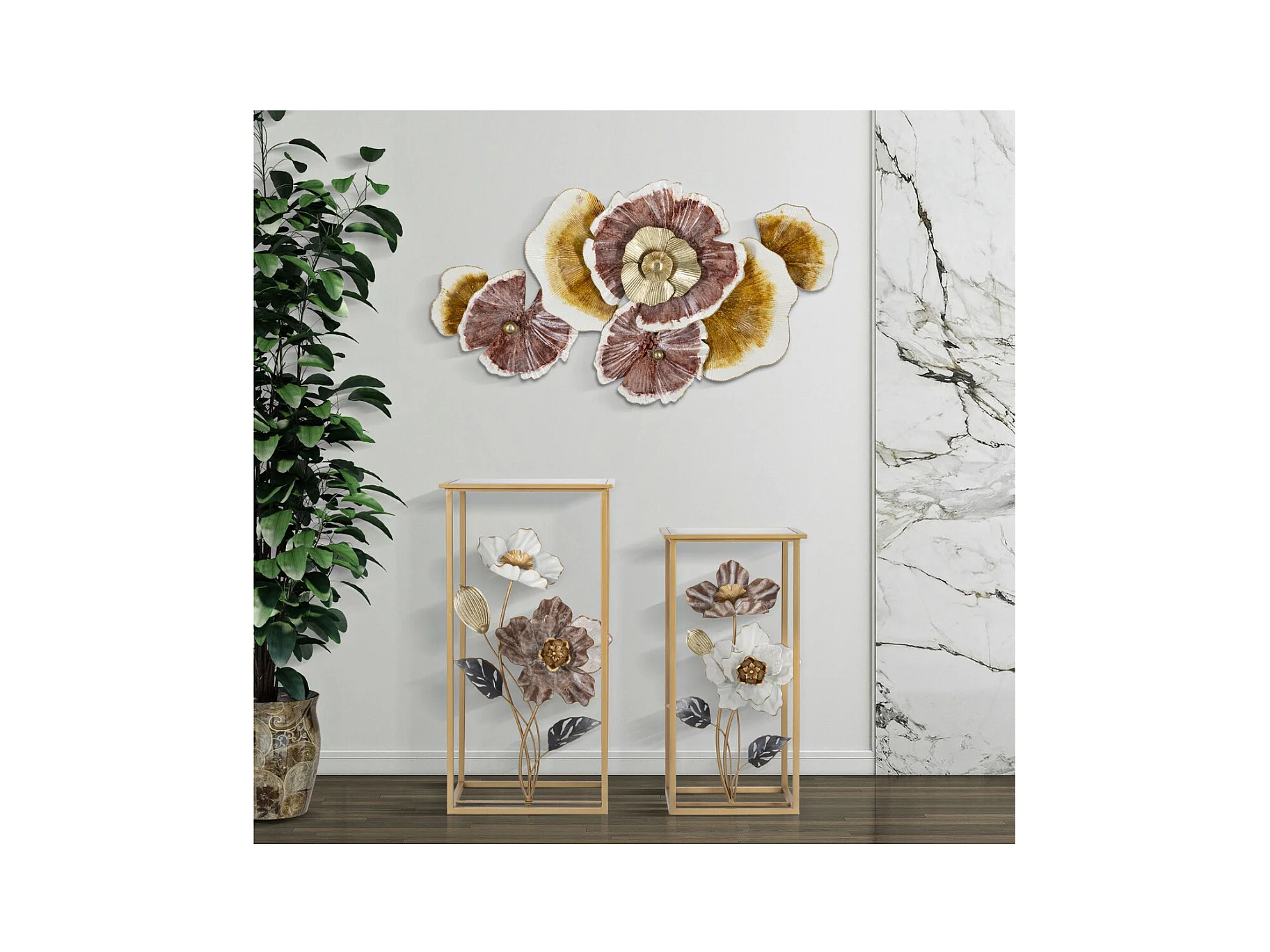 Table d'Appoint Fleurs 74, Multicouleur, 36x36x70 cm, Seven Design