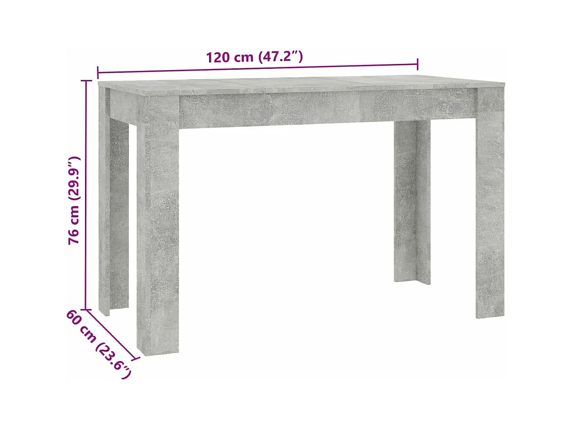 Table à manger Gris béton 120x60x76 cm Bois d'ingénierie
