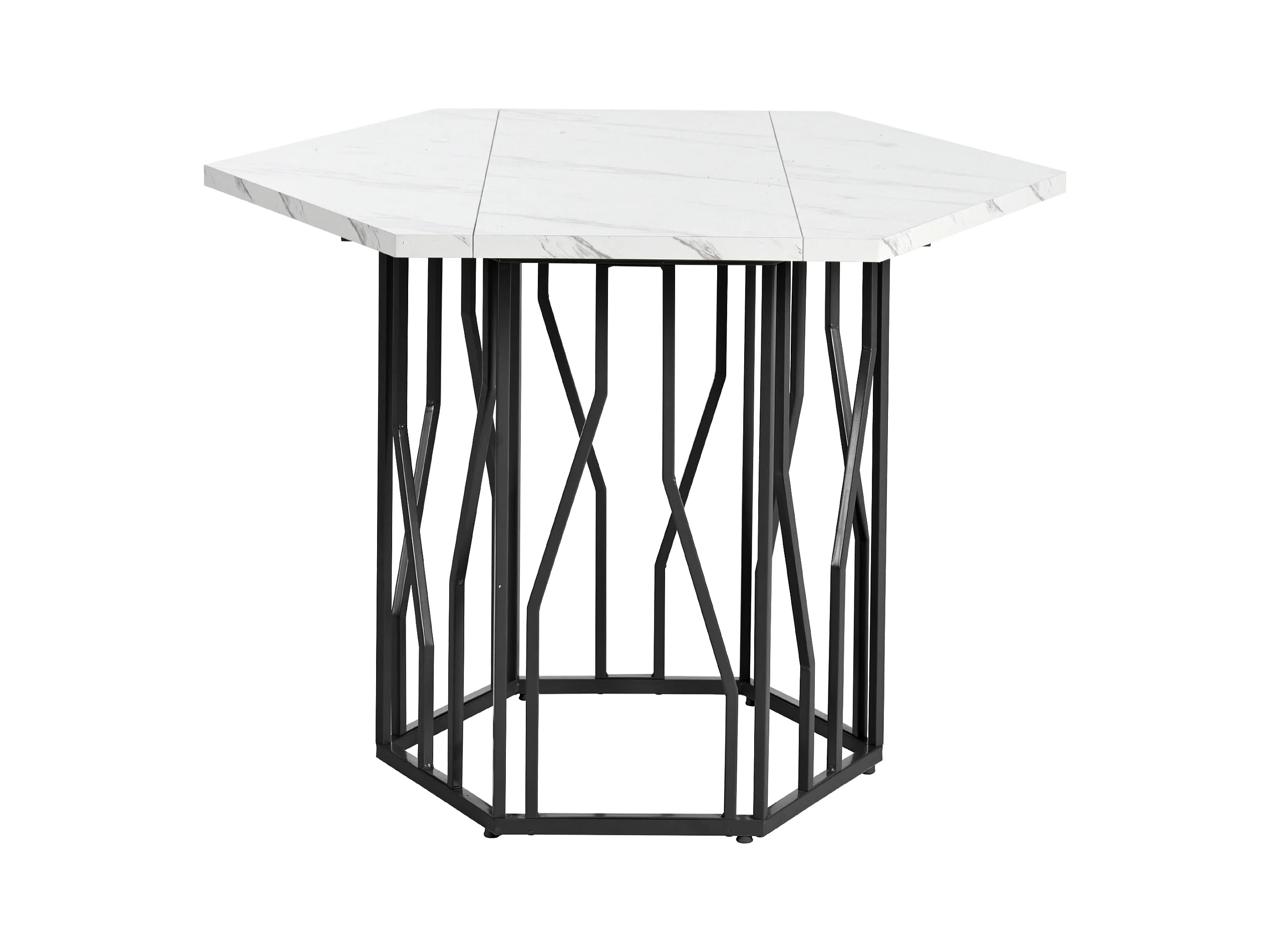 Table à manger hexagonale en marbre - 110.5 x 100 x 50 cm - structure en branches métalliques noir - MDF + Acier - noir + blanc