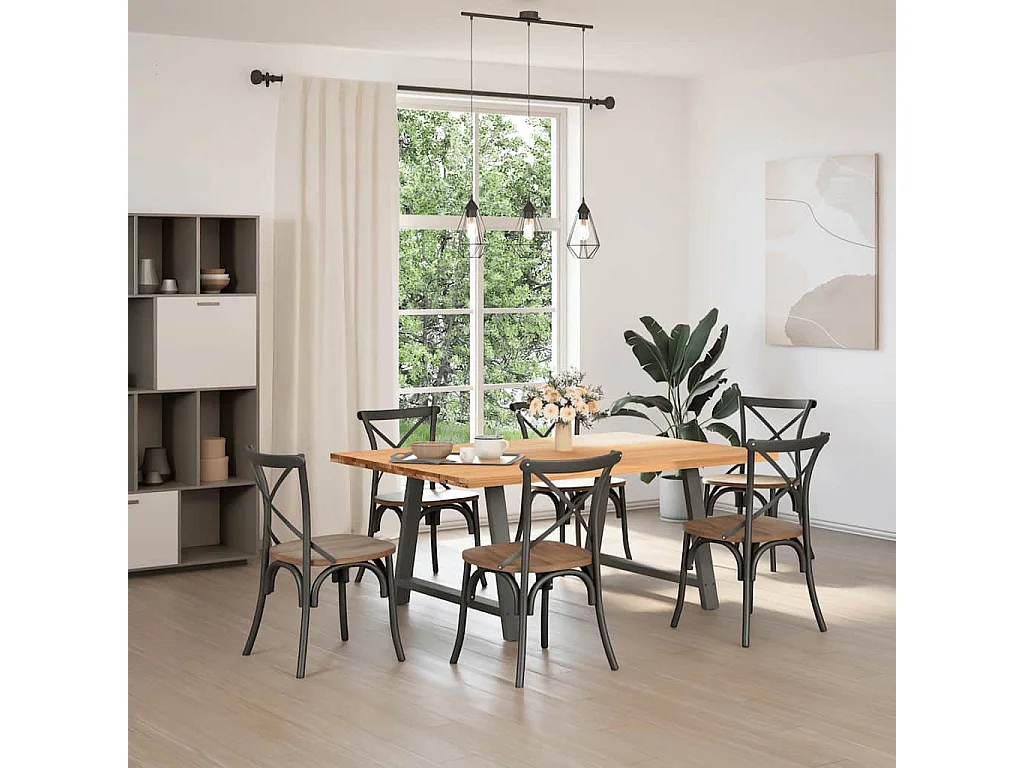Table à manger marron clair bois de chêne massif rectangulaire
