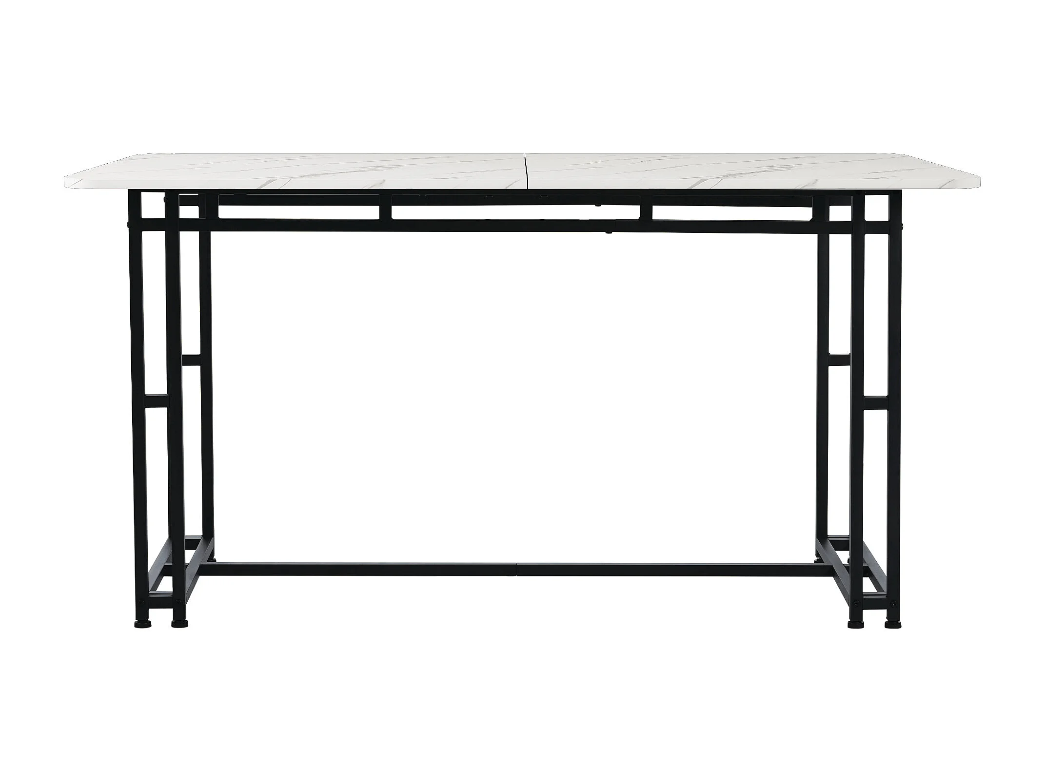 Table de salle à manger moderne 140x80cm, en MDF blanc avec pieds métalliques noirs, surface en marbre (140x80x75 cm)