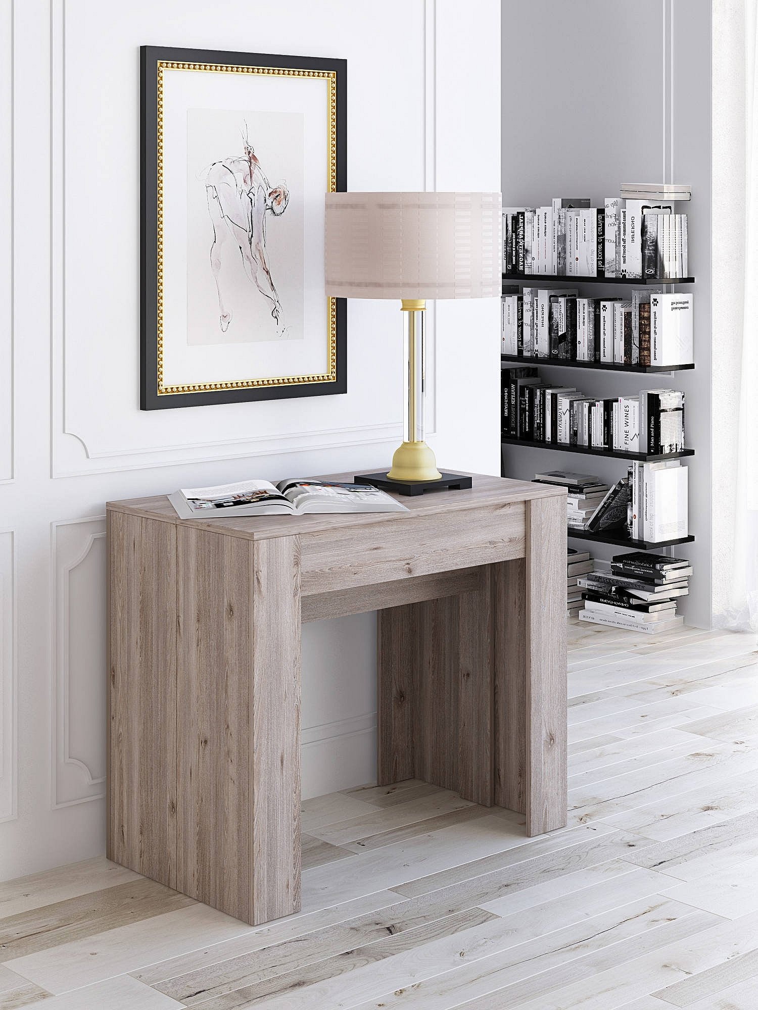 Console extensible 90x40/196 cm Saki Small chêne nature pieds blancs