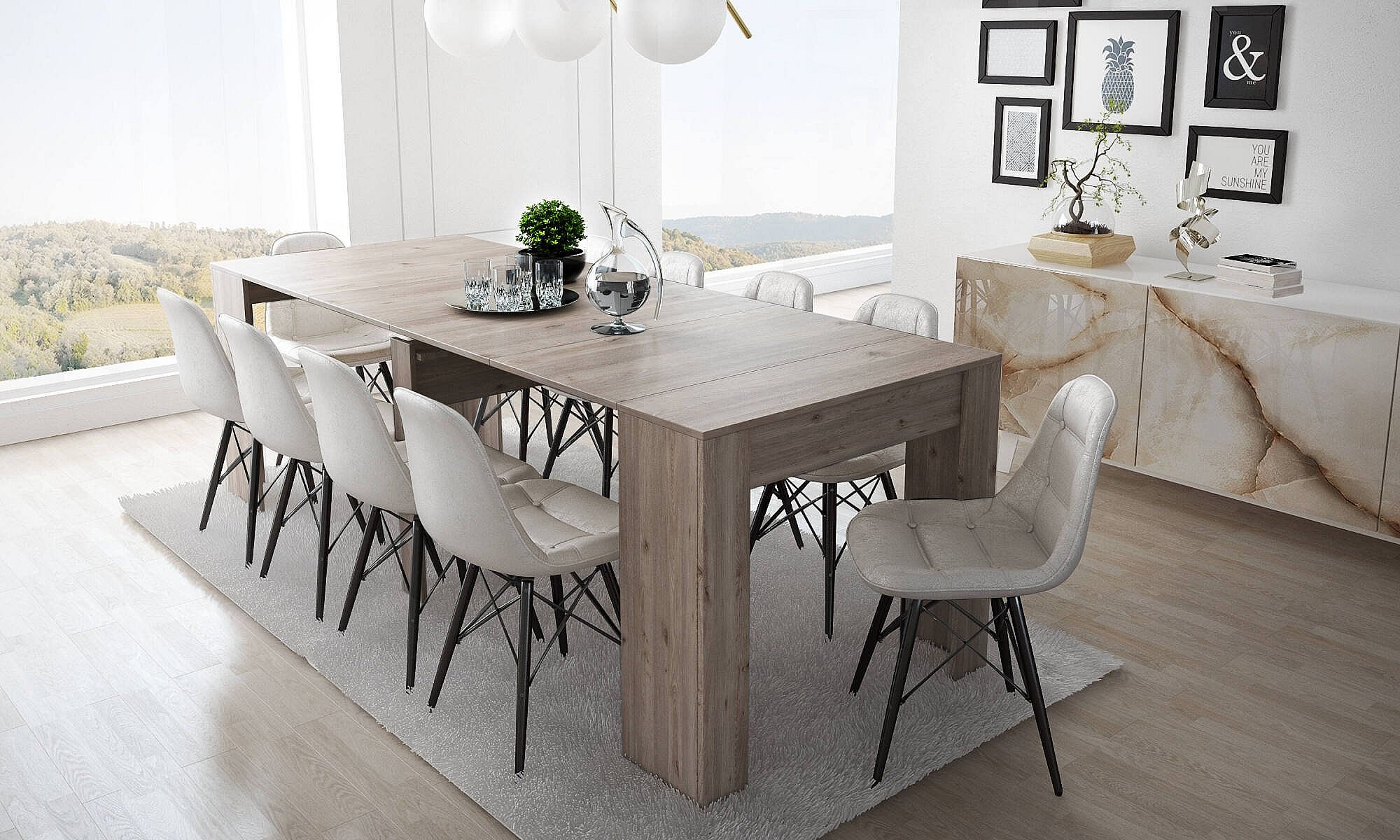 Table console à rallonge Dpanozz, Table avec rallonges, Console polyvalente, Table à manger extensible jusqu'à 10 places, 90/237x51h78 cm, Chêne