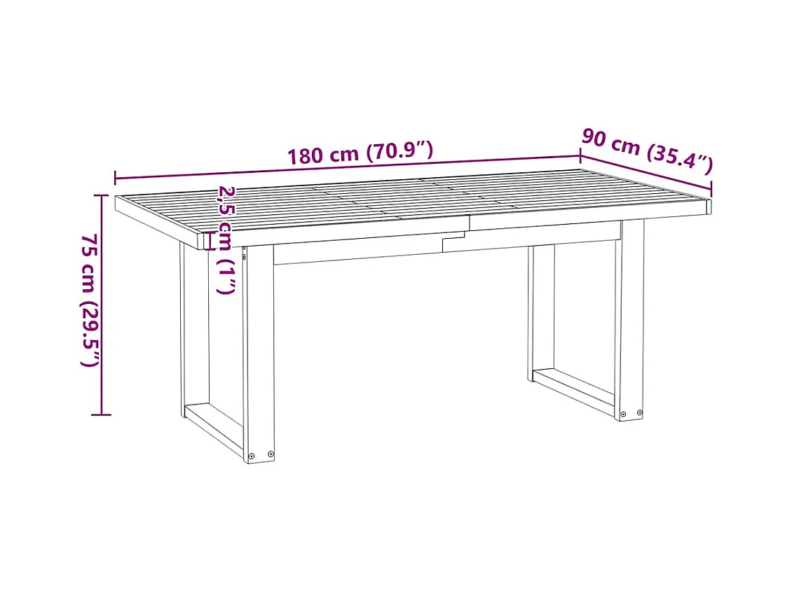 Table de salle à manger 180x90x75 cm Bois solide d'acacia
