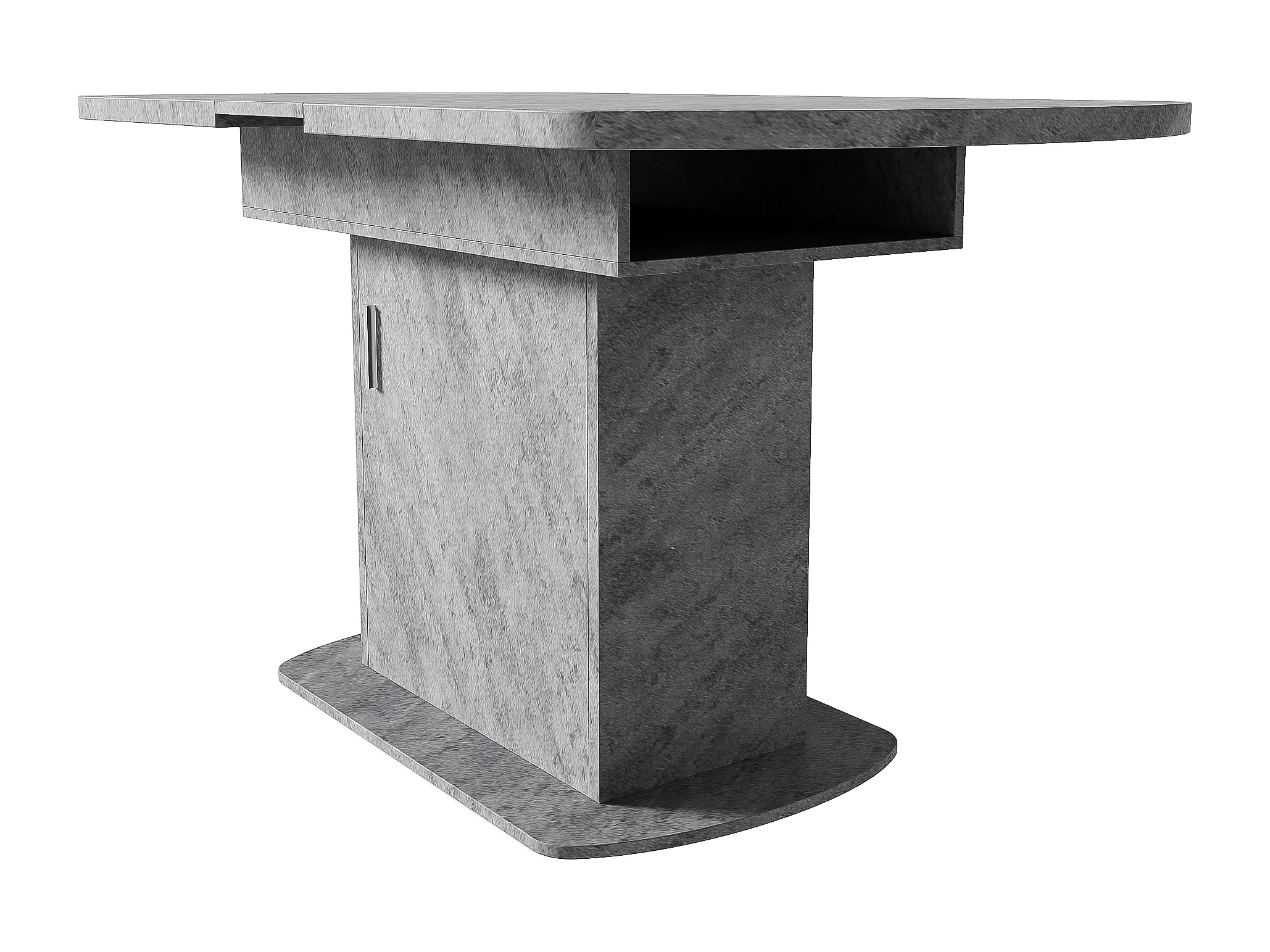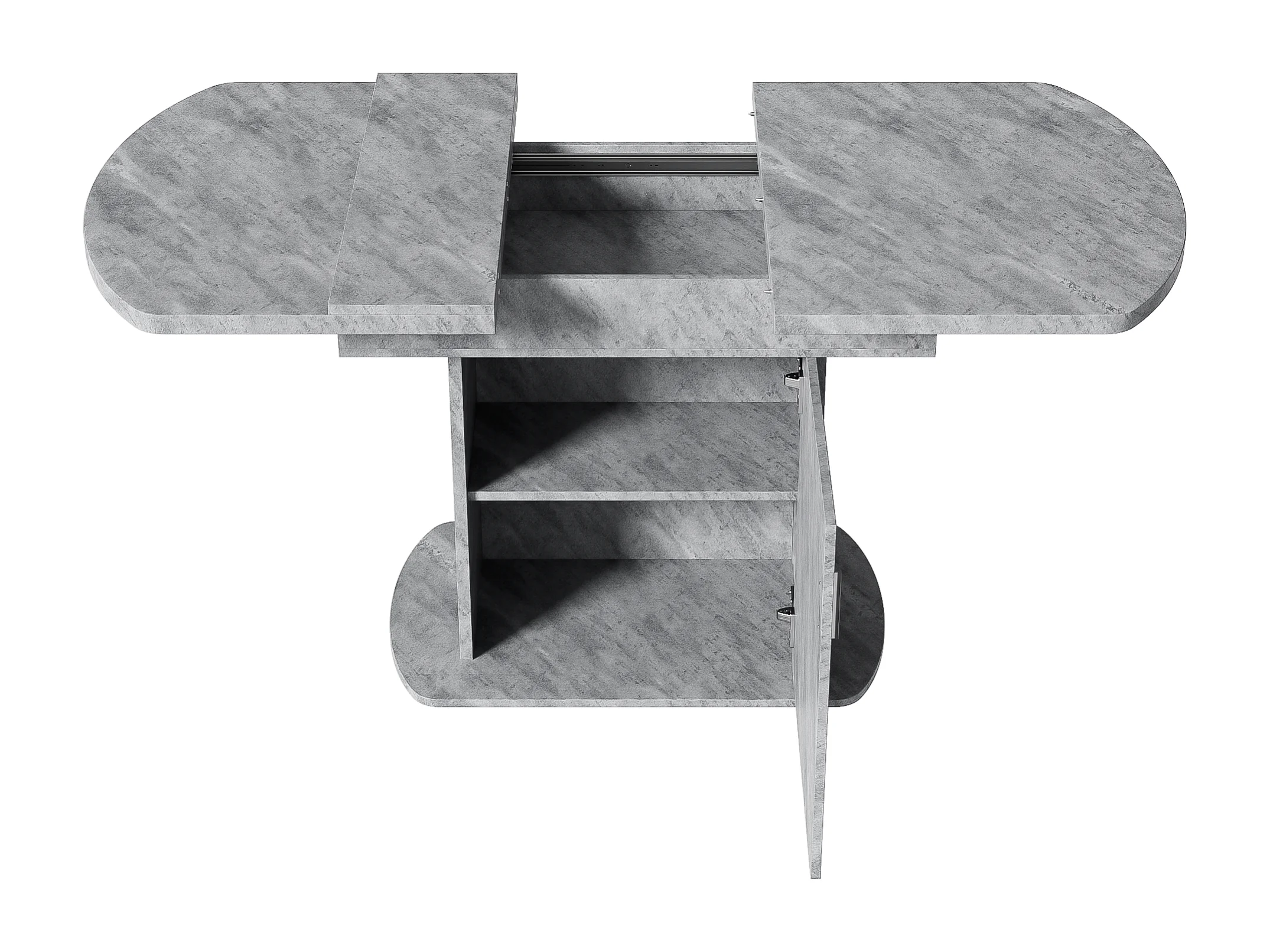 Table à manger ovale extensible - Table gris avec une porte et poignées argentées - avec rangement