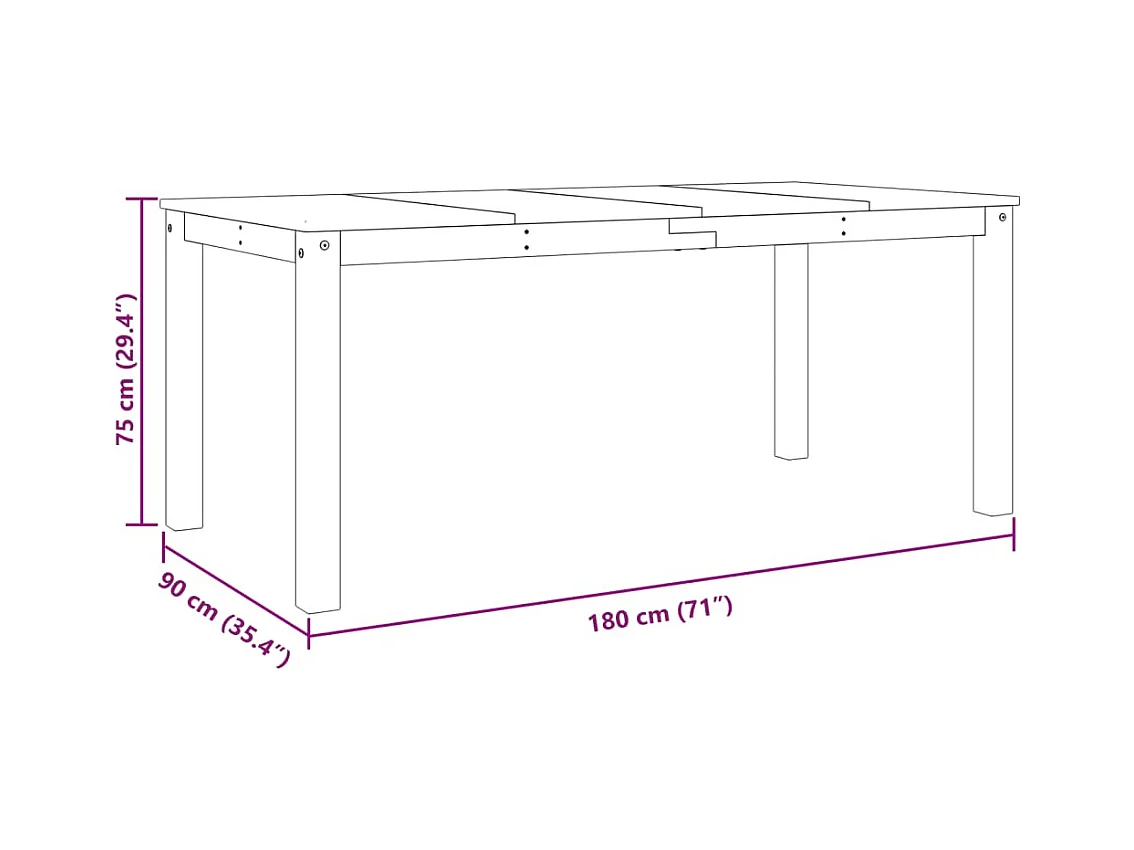 Table à manger Corona gris 180x90x75 cm bois massif de pin