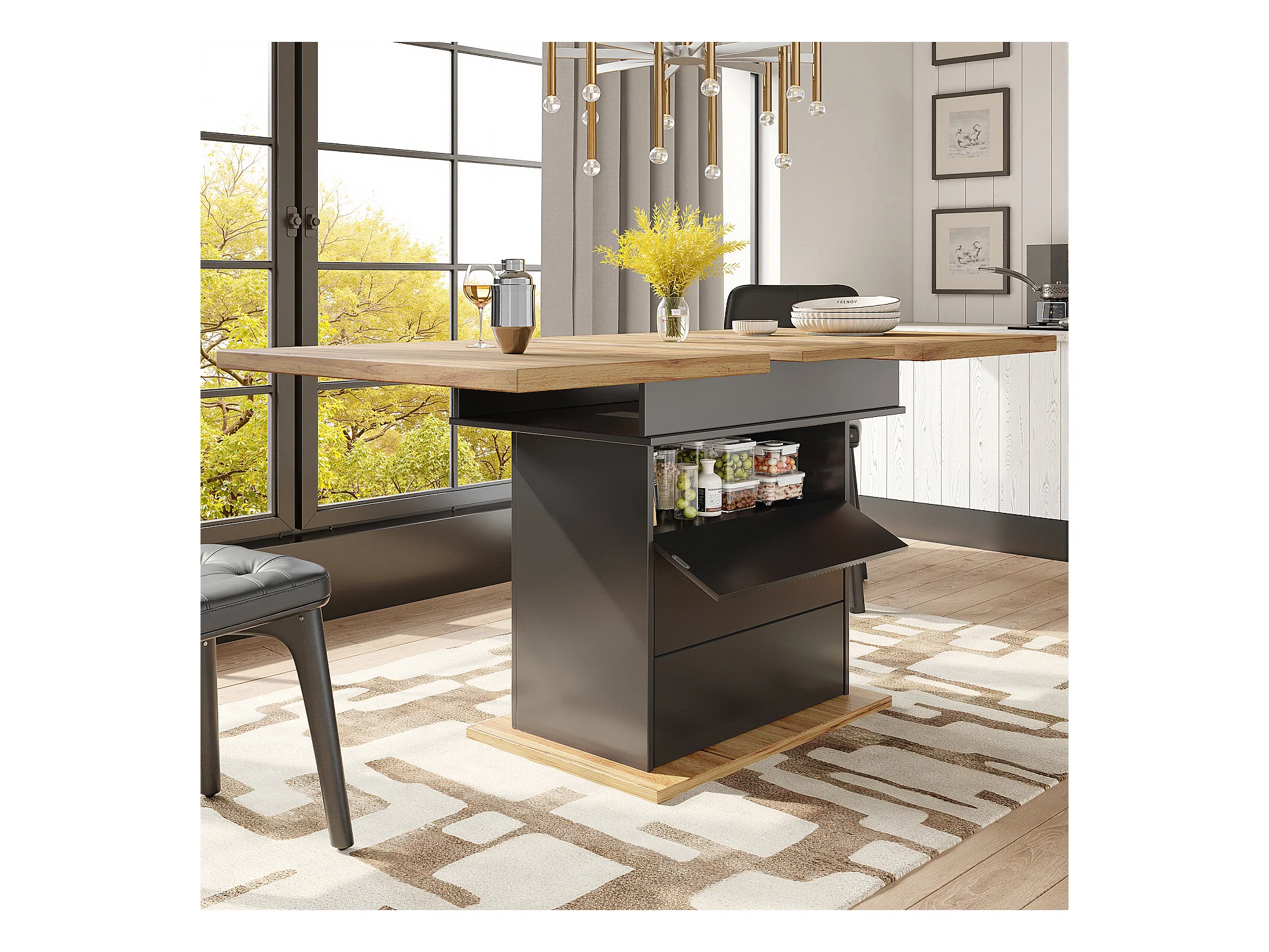 Table extensible, table de salle à manger pliante avec rangement, design moderne, MDF, noir et naturel (110-140x80x75 cm)
