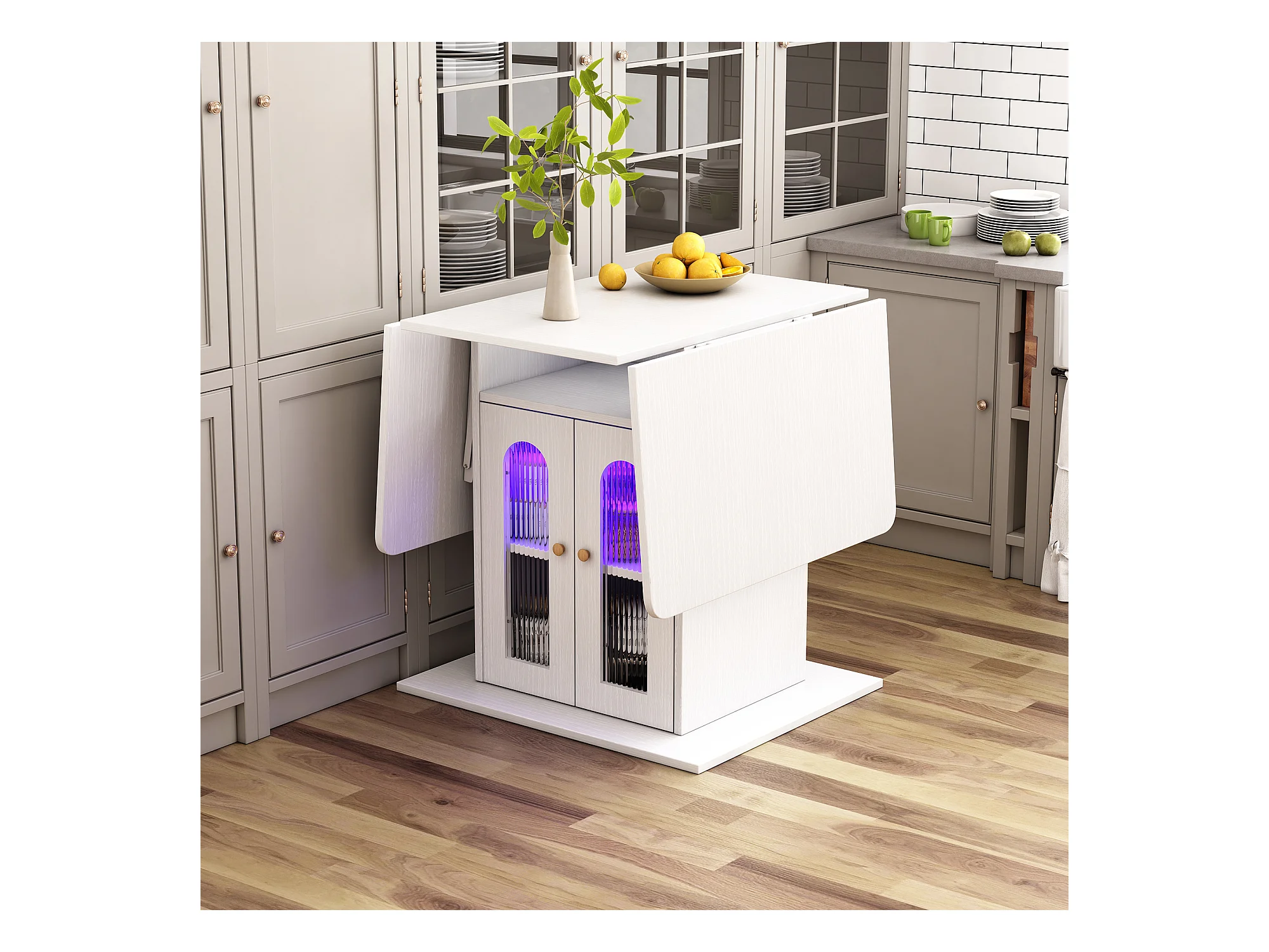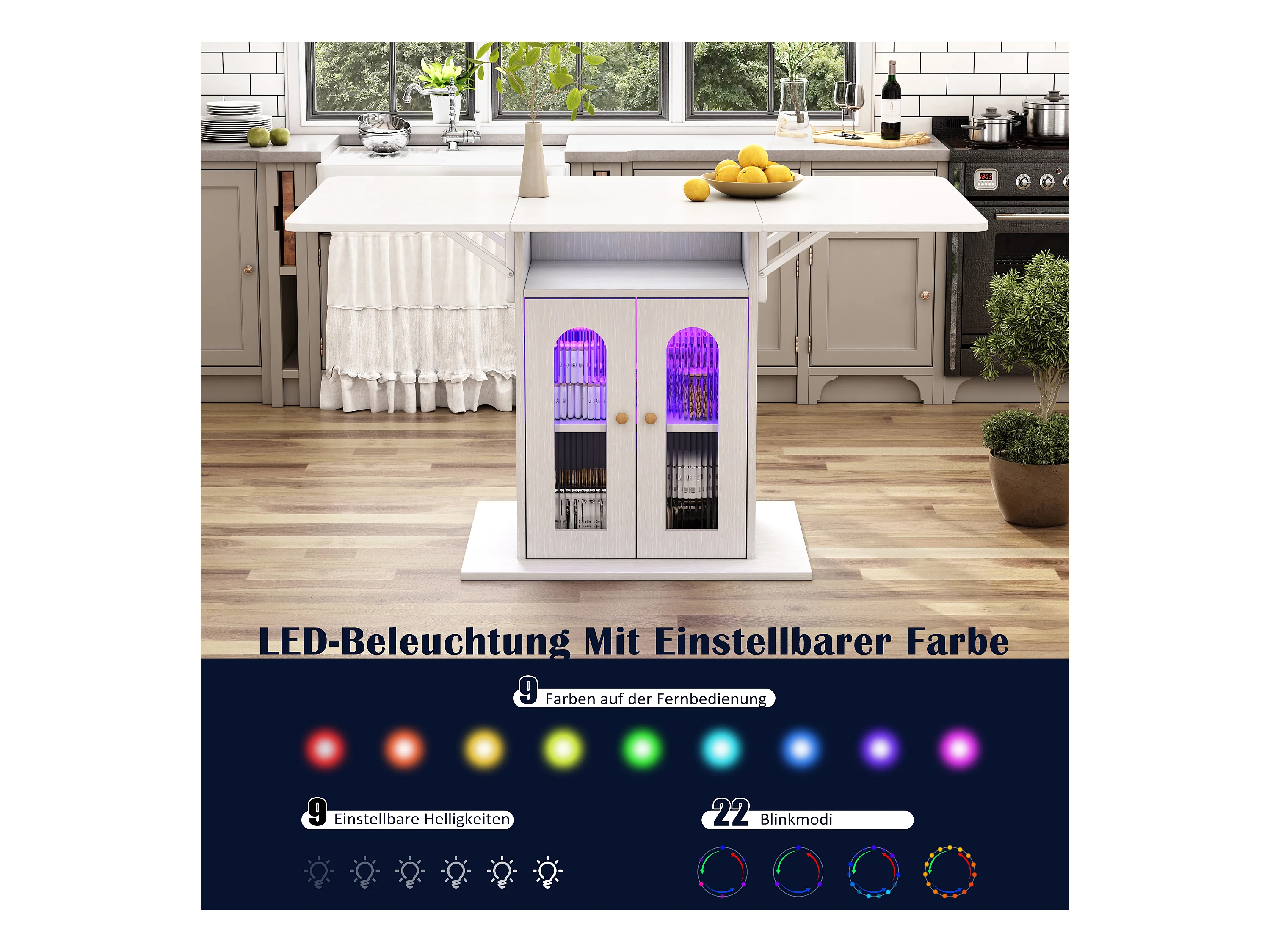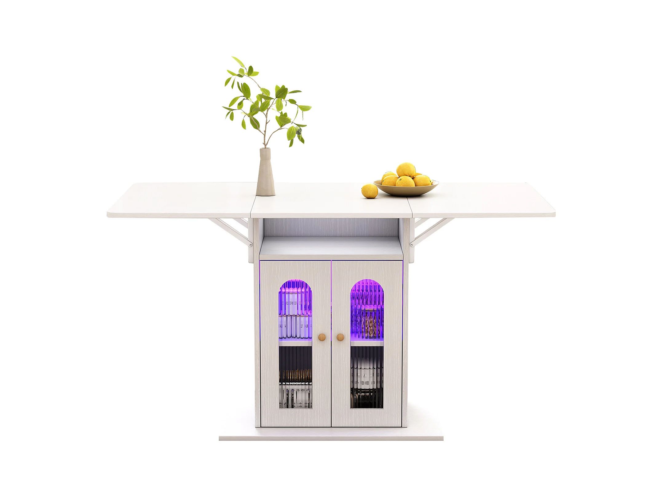 Table à Manger Pliable Moderne avec LED, Fonction de Changement de Couleur, Espace de Rangement Intégré, Plateau Extensible 140×78 cm (140×78 cm)