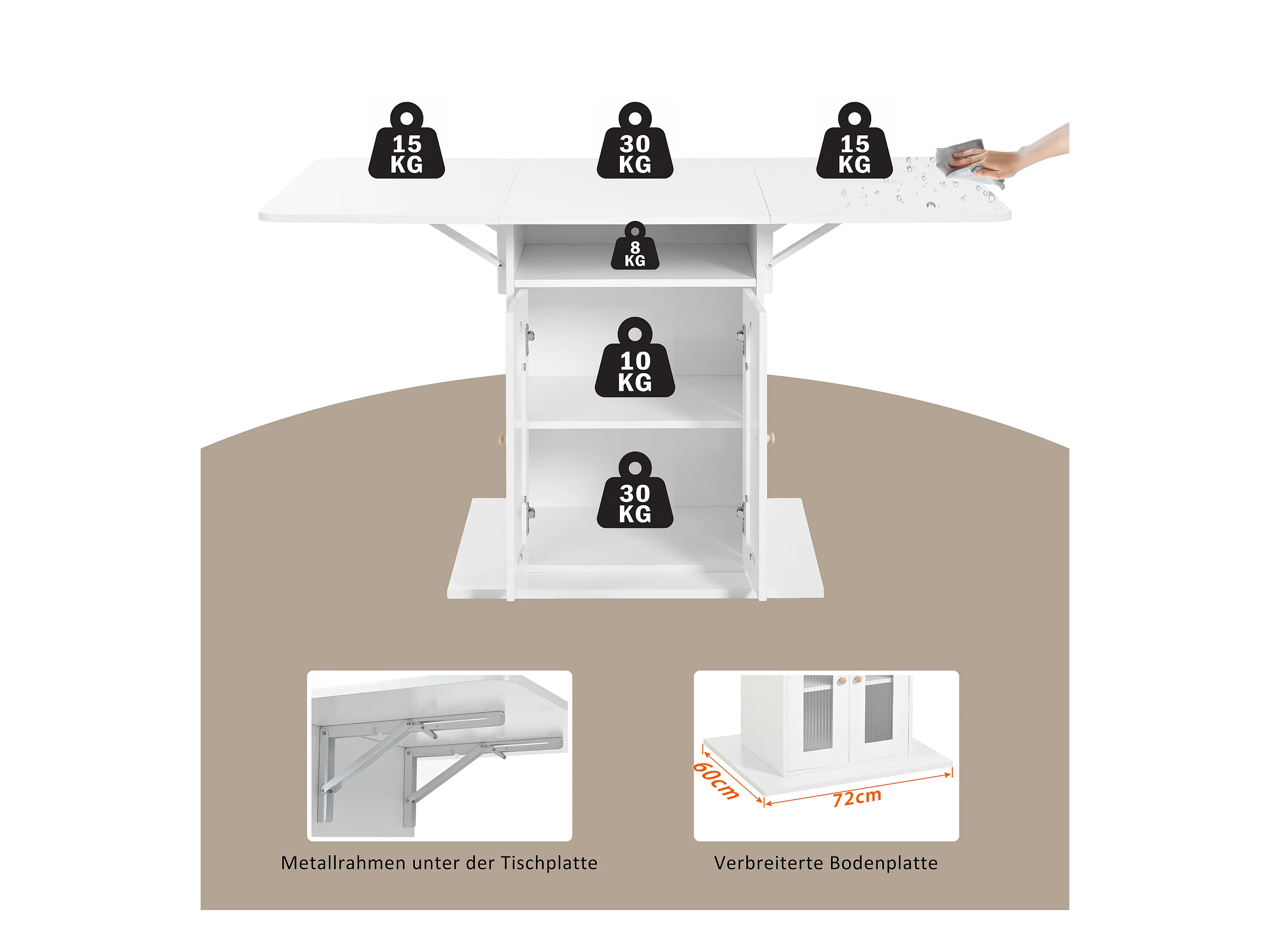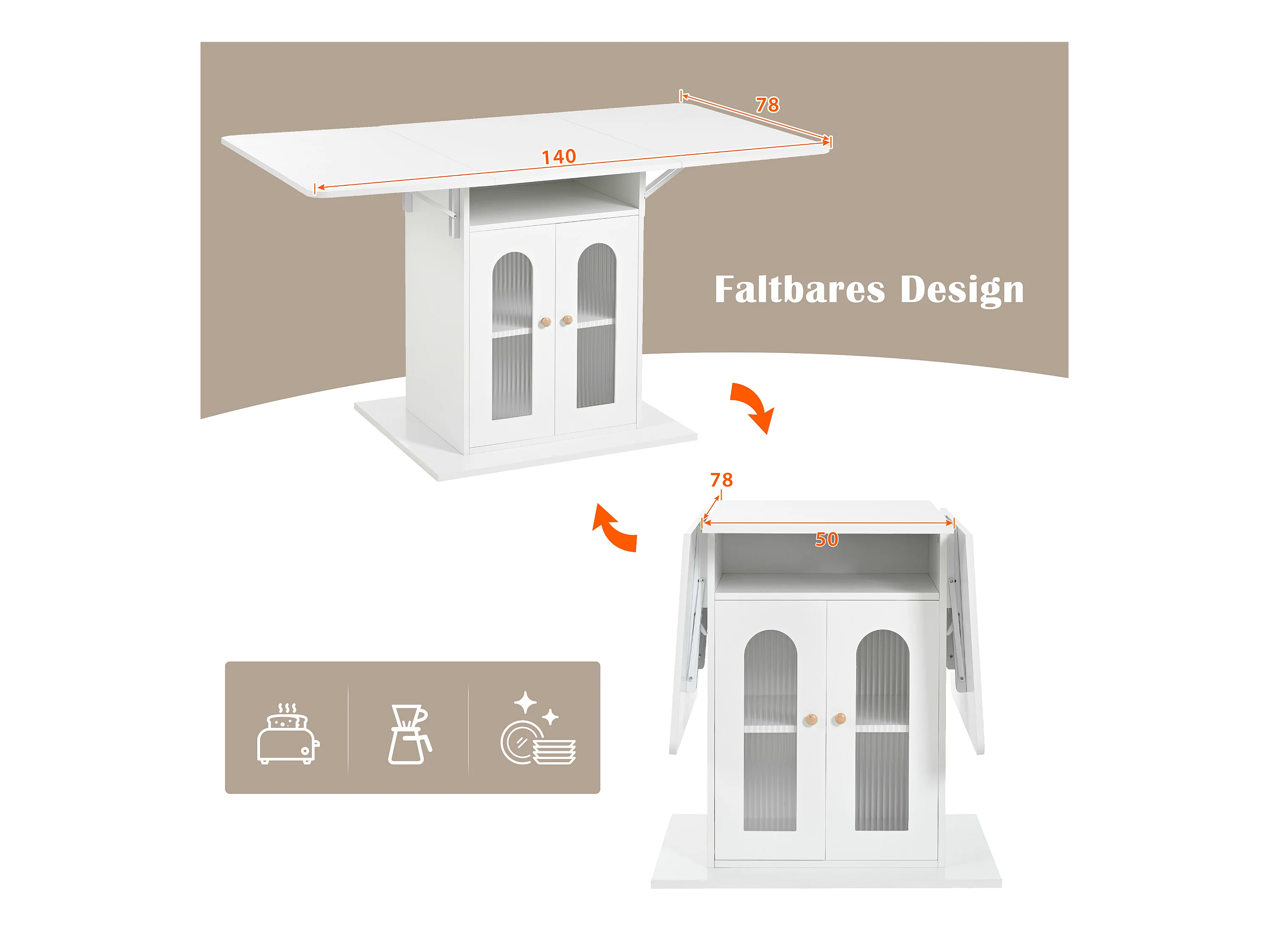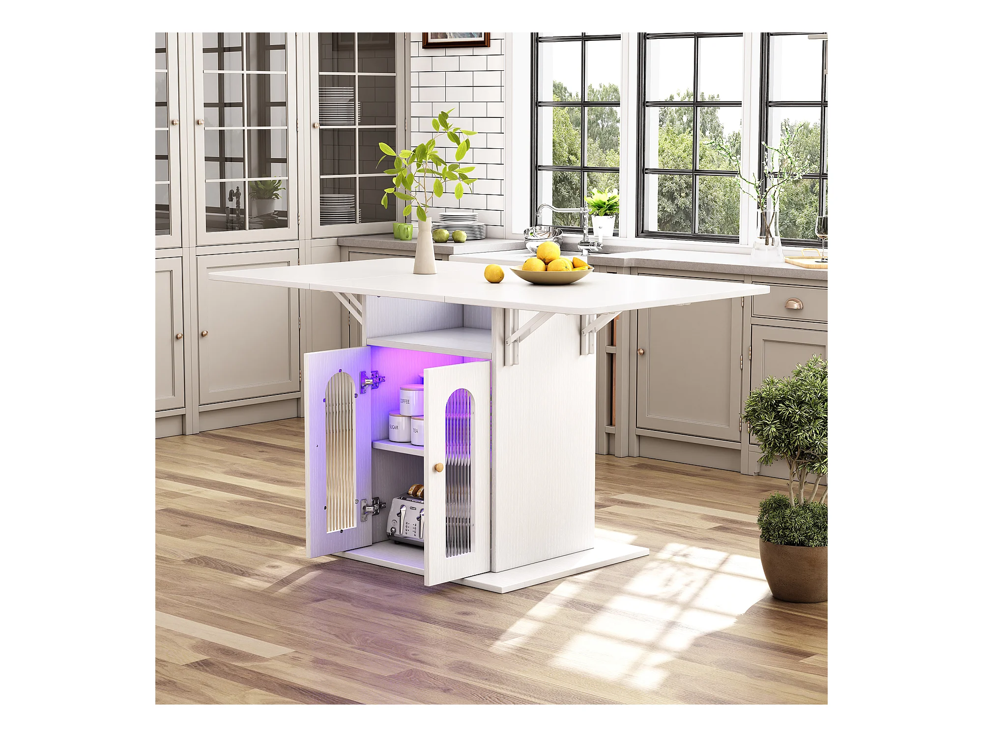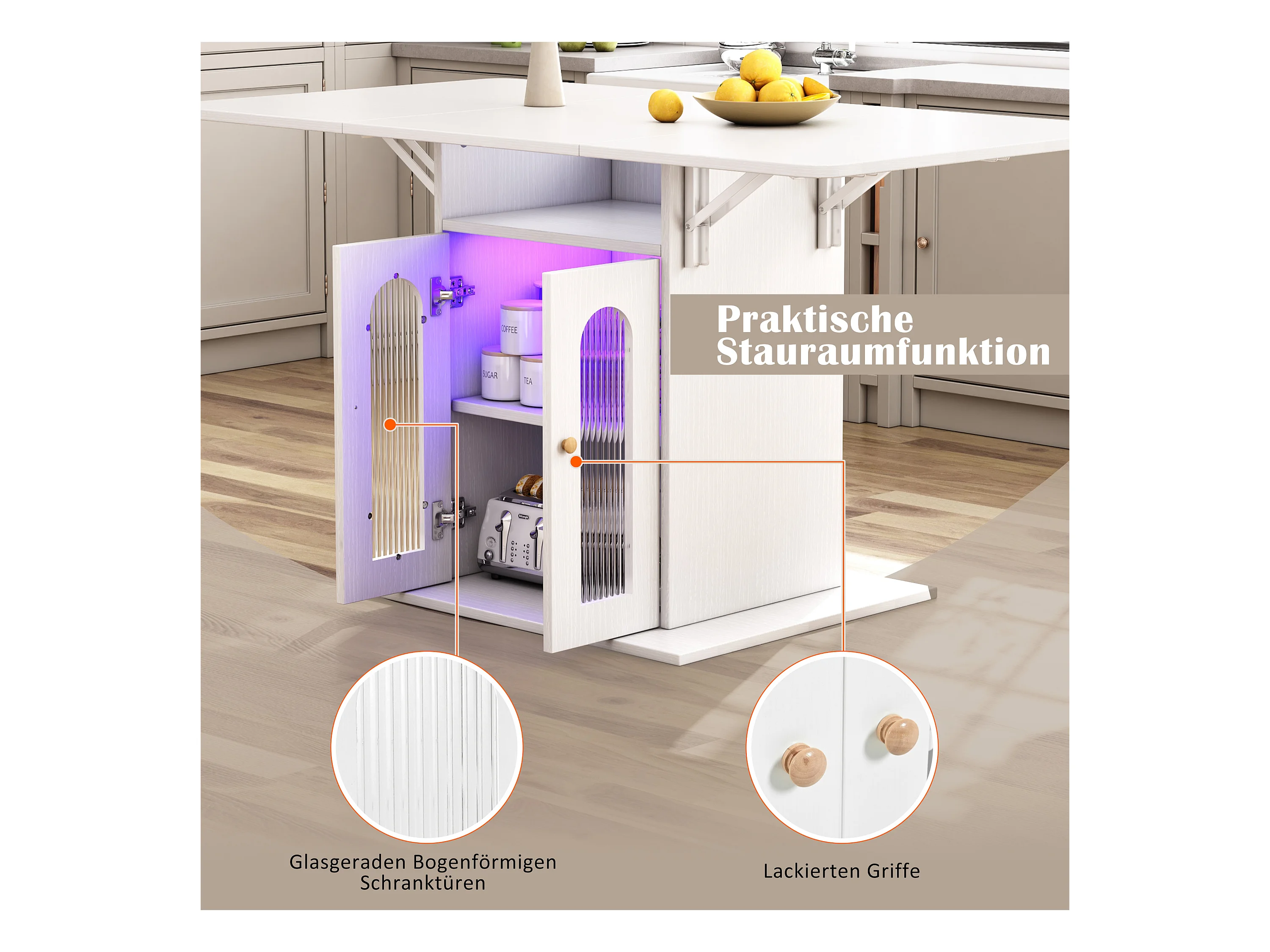 Table à Manger Pliable Moderne avec LED, Fonction de Changement de Couleur, Espace de Rangement Intégré, Plateau Extensible 140×78 cm (140×78 cm)