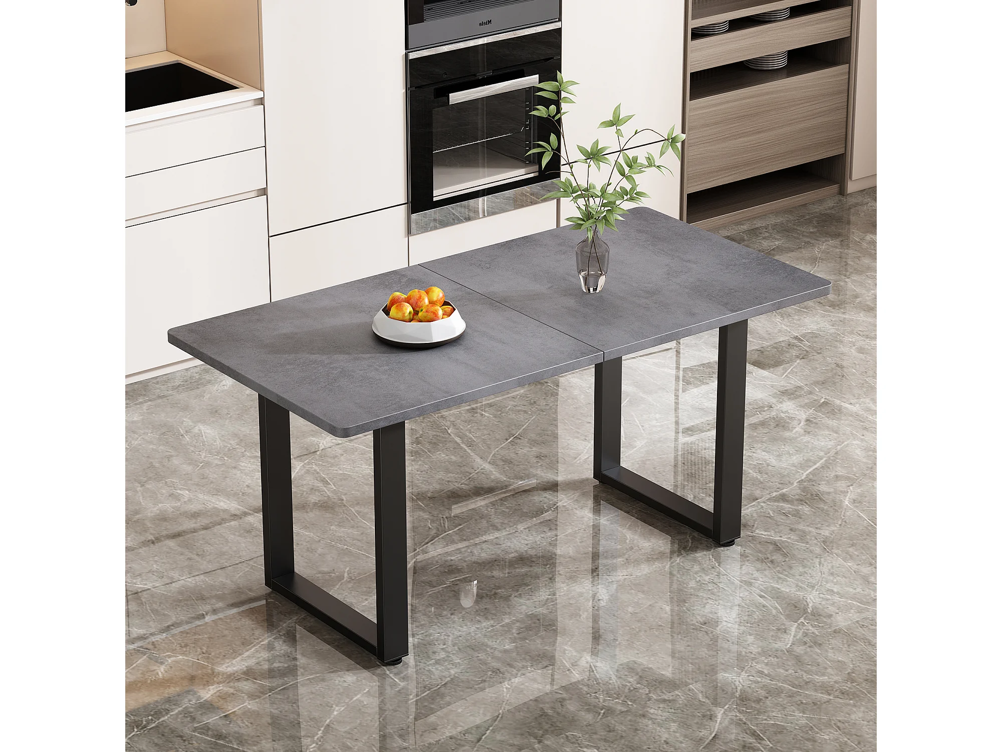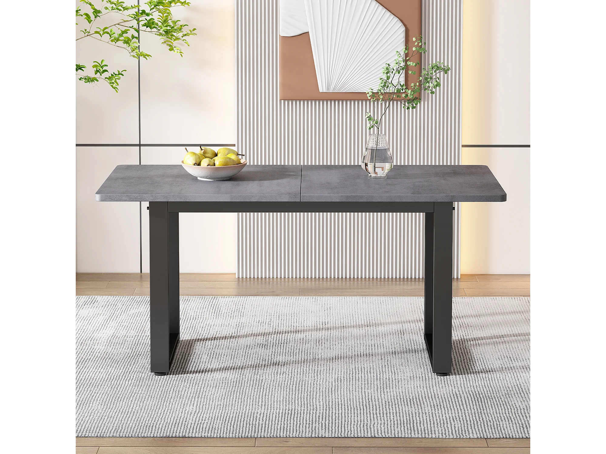 Table à manger rectangle 6 personnes, plateau gris avec pieds en U en métal noir - 140x70x75cm