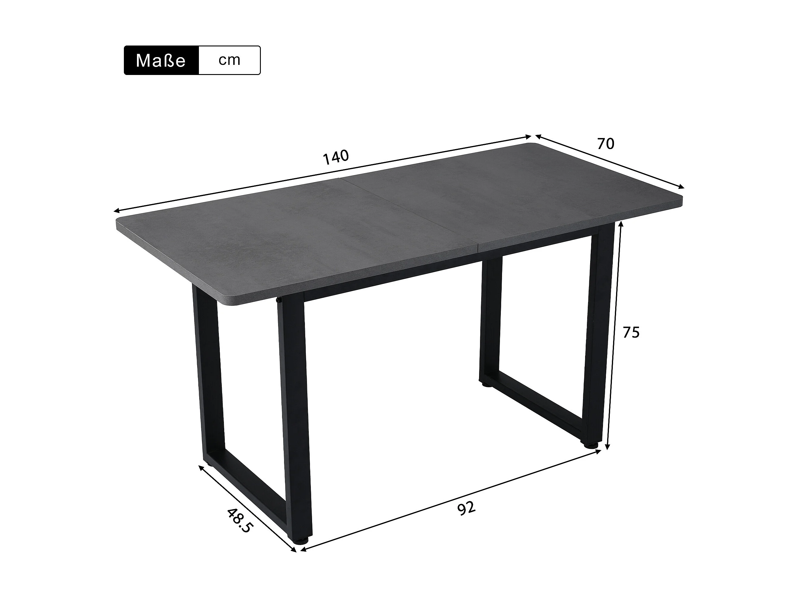 Table de salle à manger rectangulaire en fer forgé - 140 x 80 x 76 cm - aspect béton - MDF - gris + noir