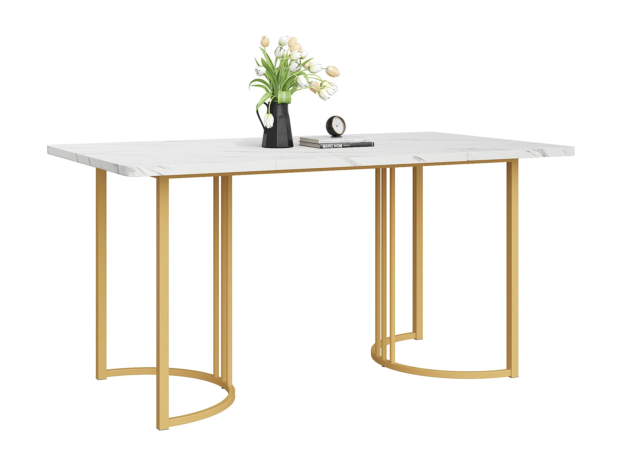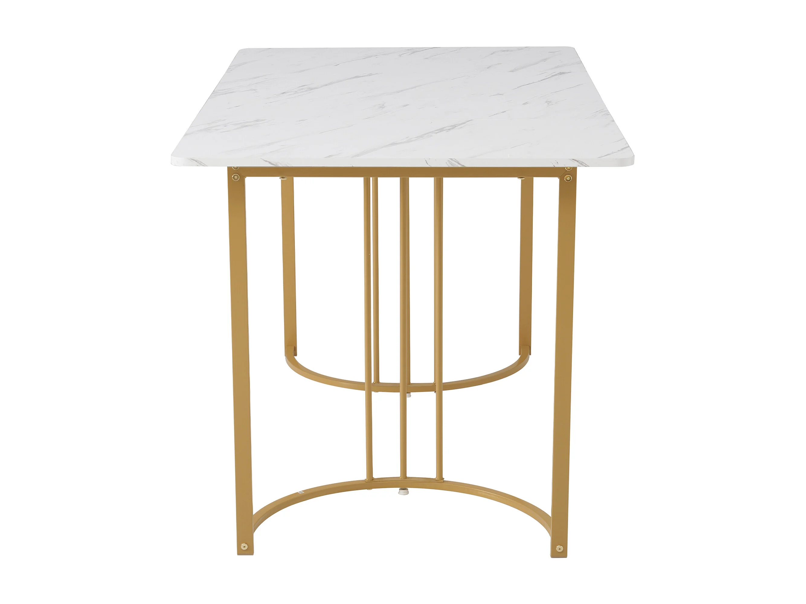 Table à manger 140x80x75 cm, motif marbre, pieds réglables, structure en métal, plateau en MDF, blanc