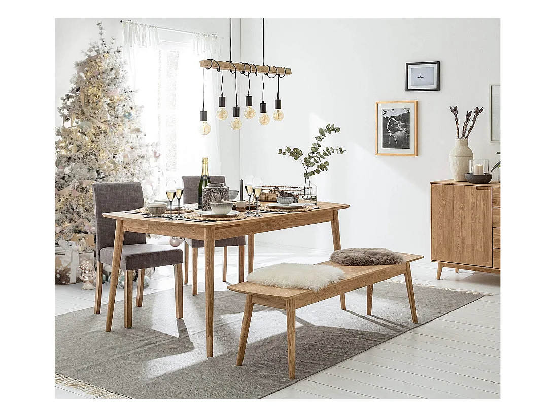 Table à manger rectangulaire 180cm en bois de chêne massif Kundy
