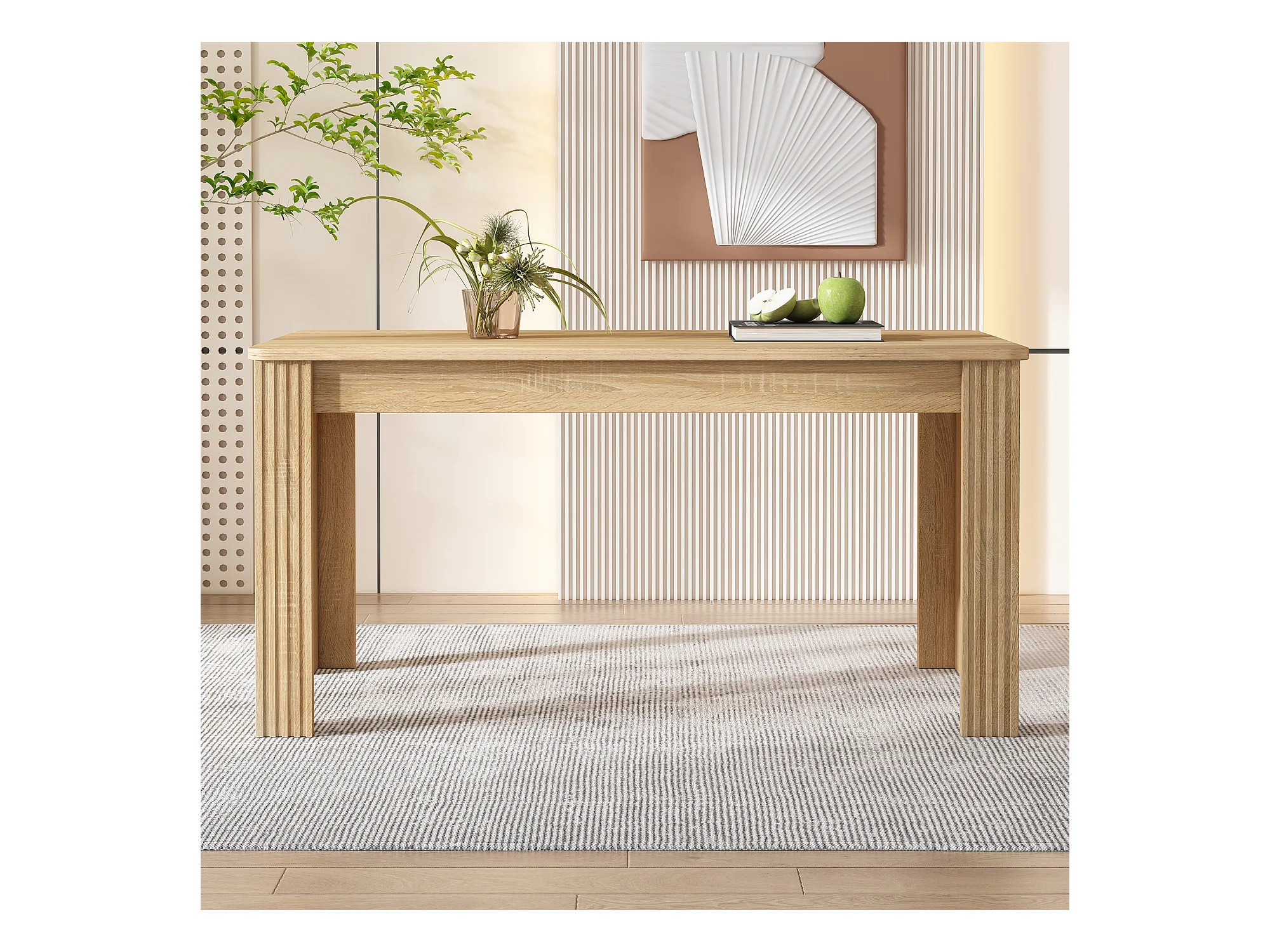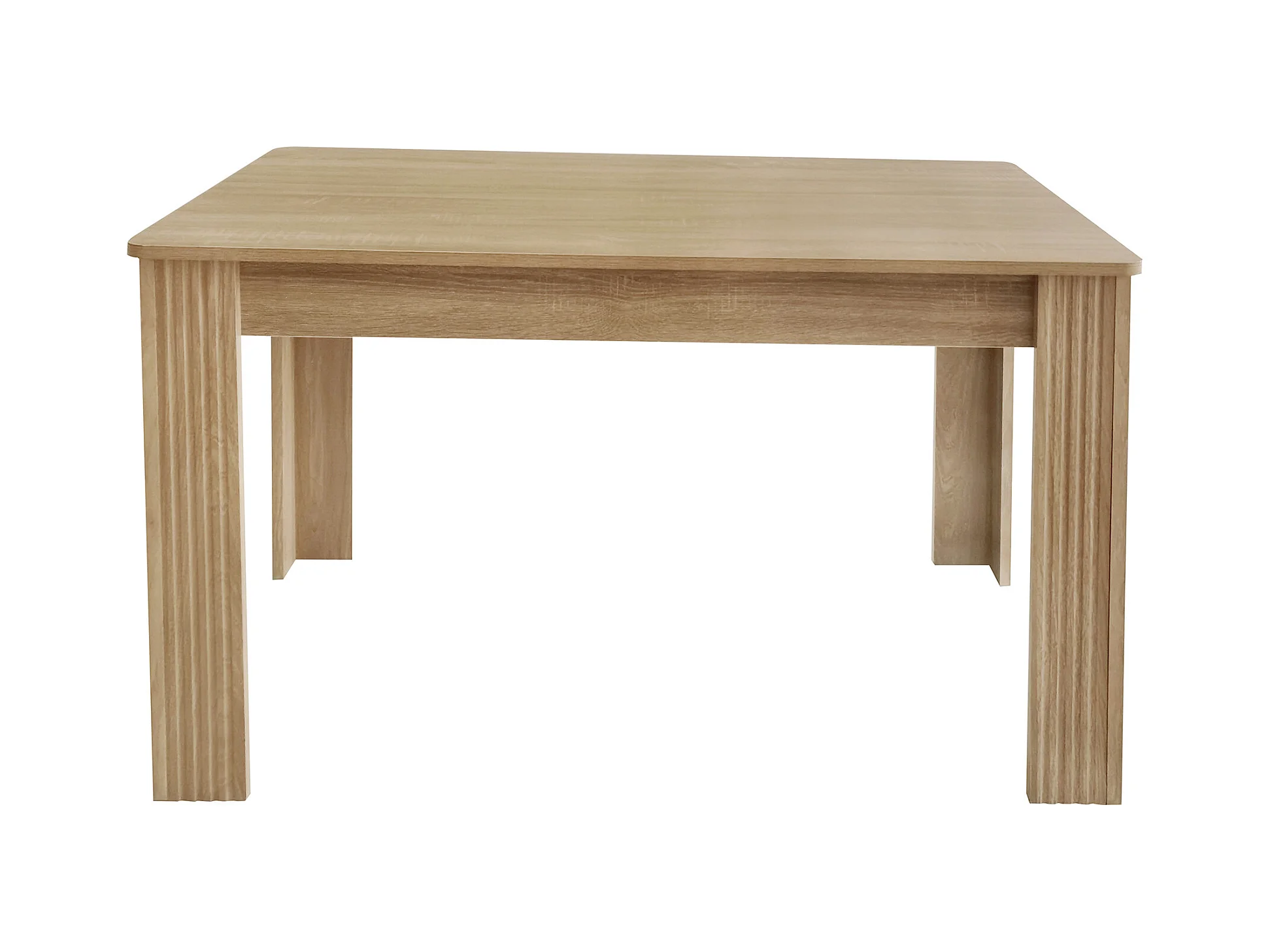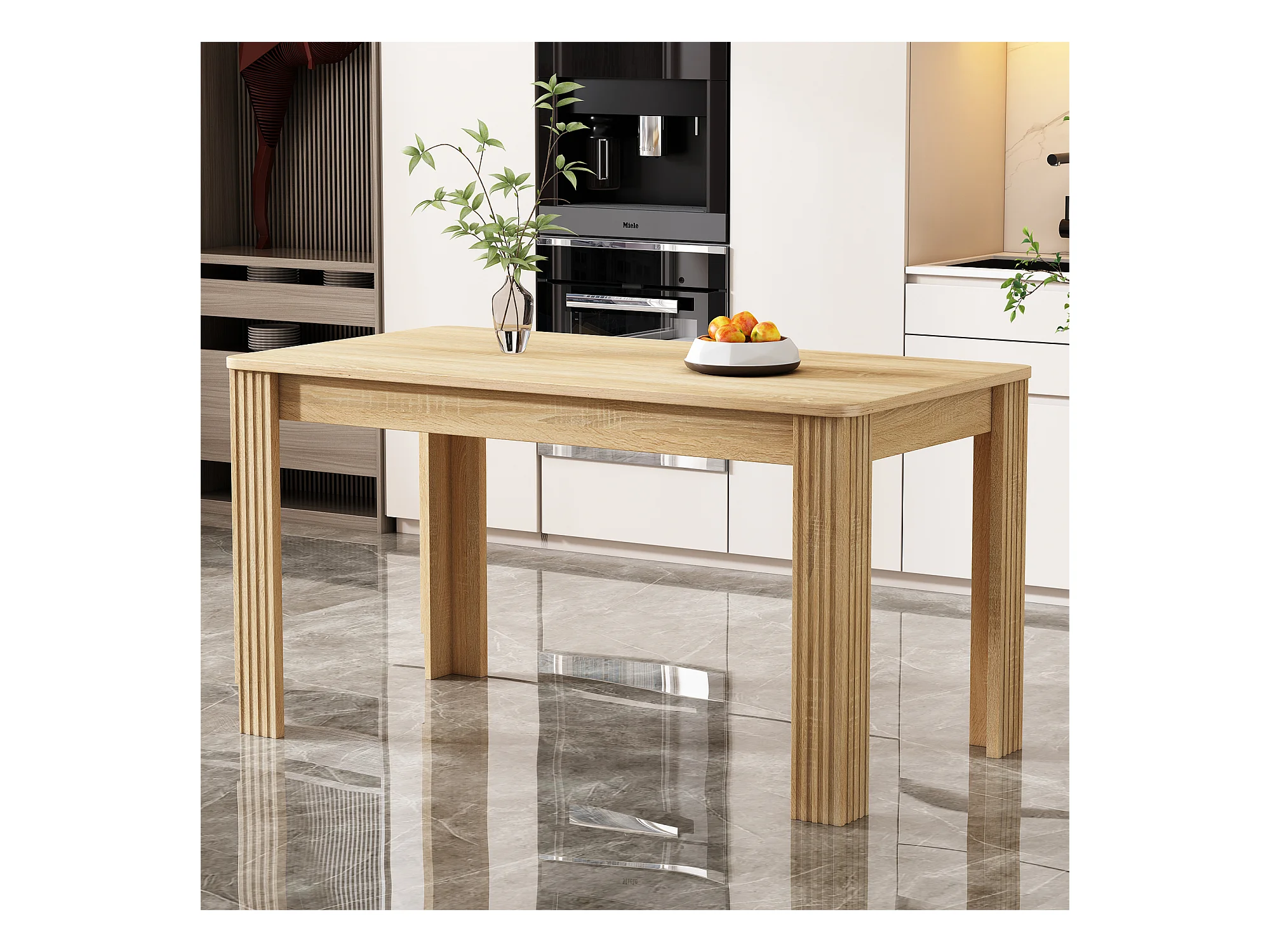 Table à manger rectangulaire 6 couverts, bois massif, style campagne, coloris chêne, 117 x 68 x 75 cm