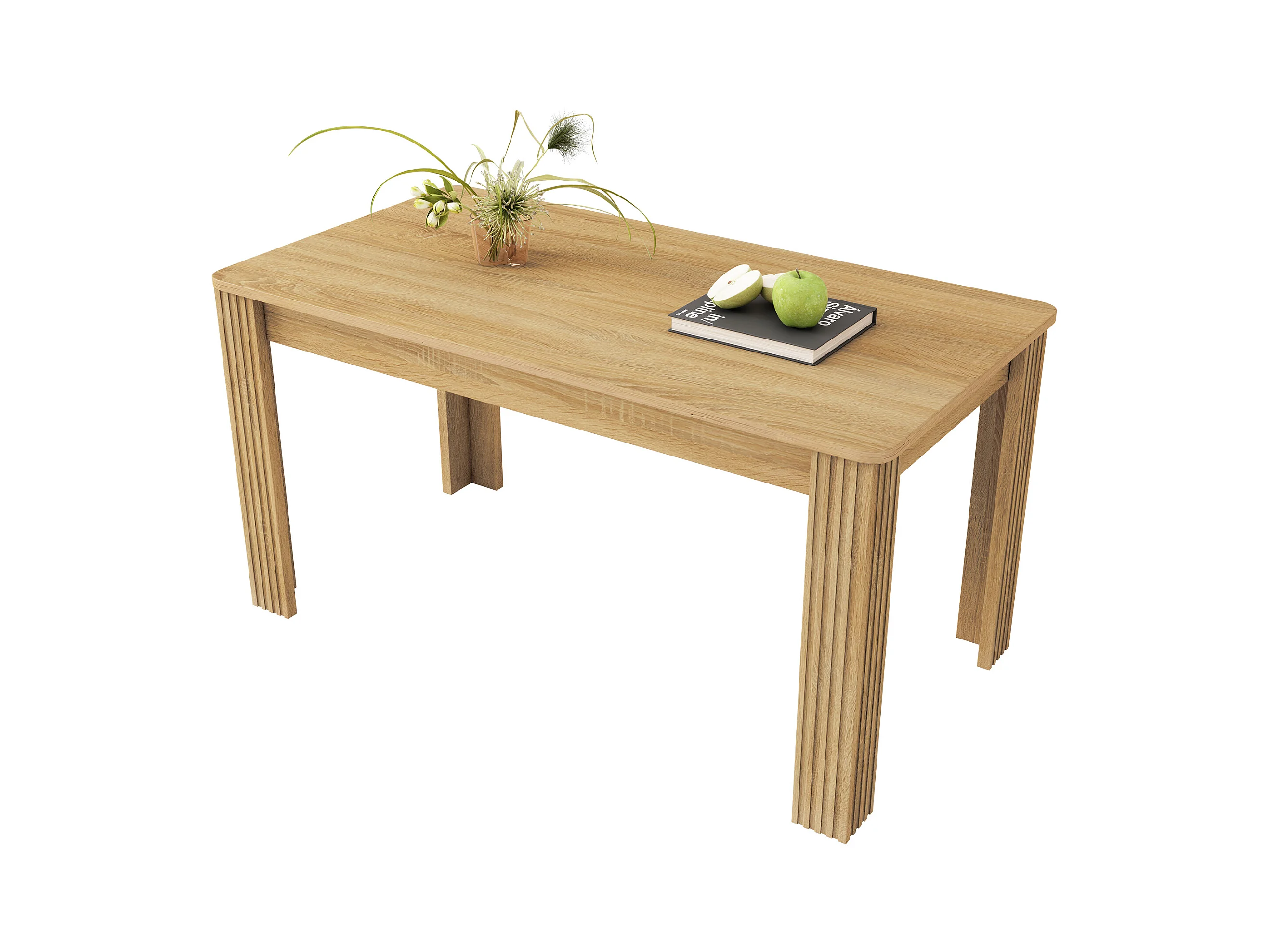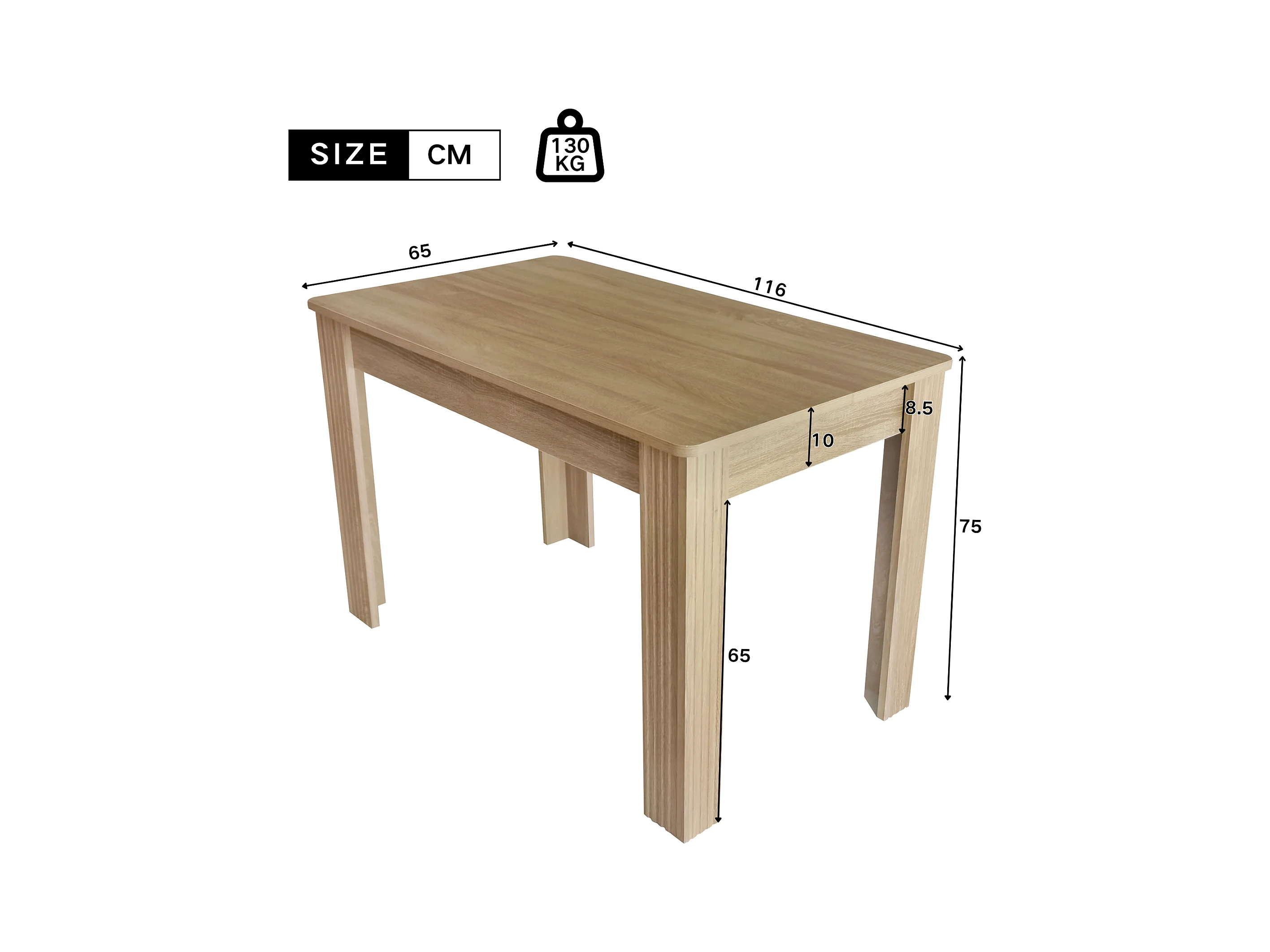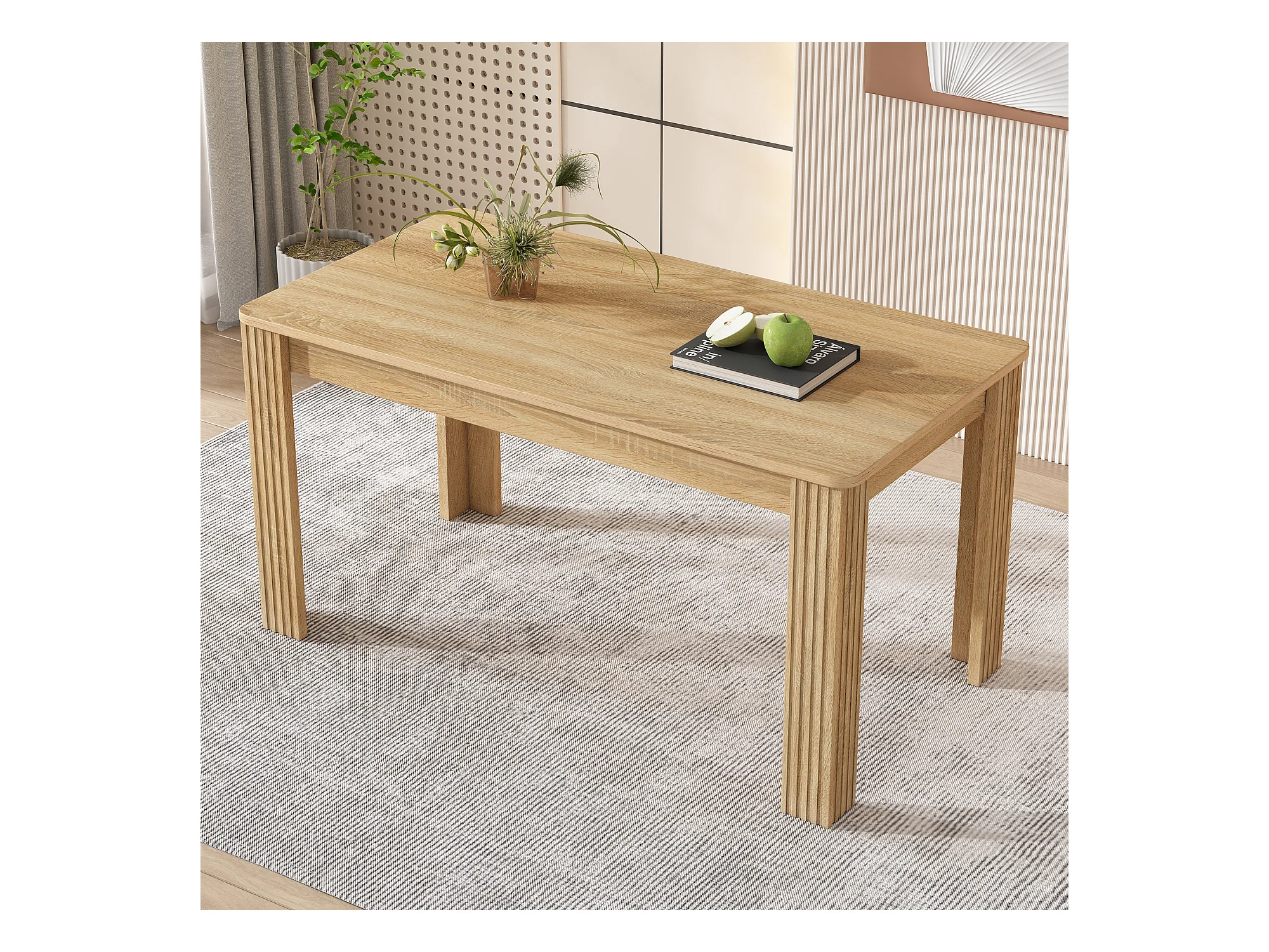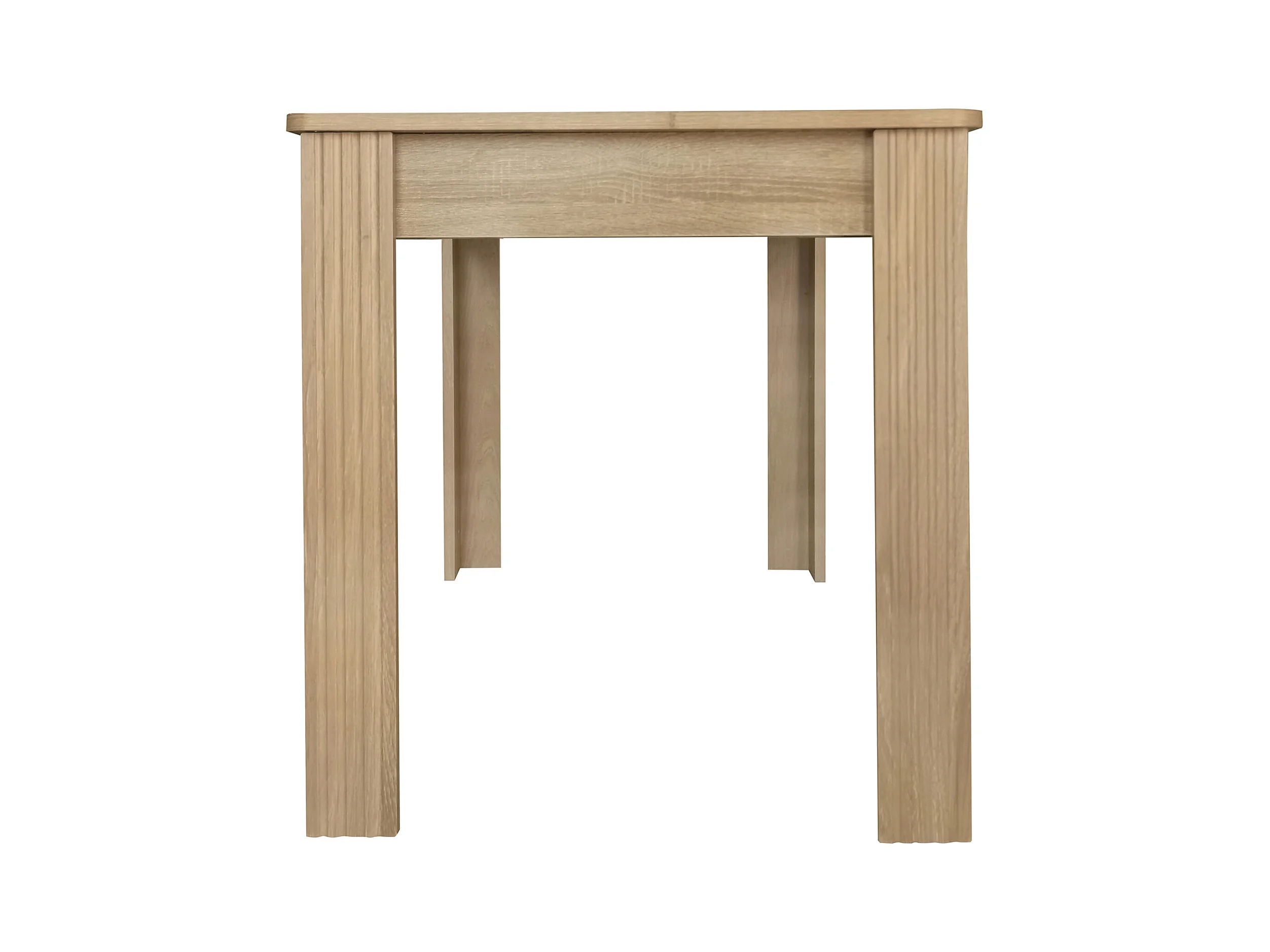 Table à manger rectangulaire 6 couverts, bois massif, style campagne, coloris chêne, 117 x 68 x 75 cm