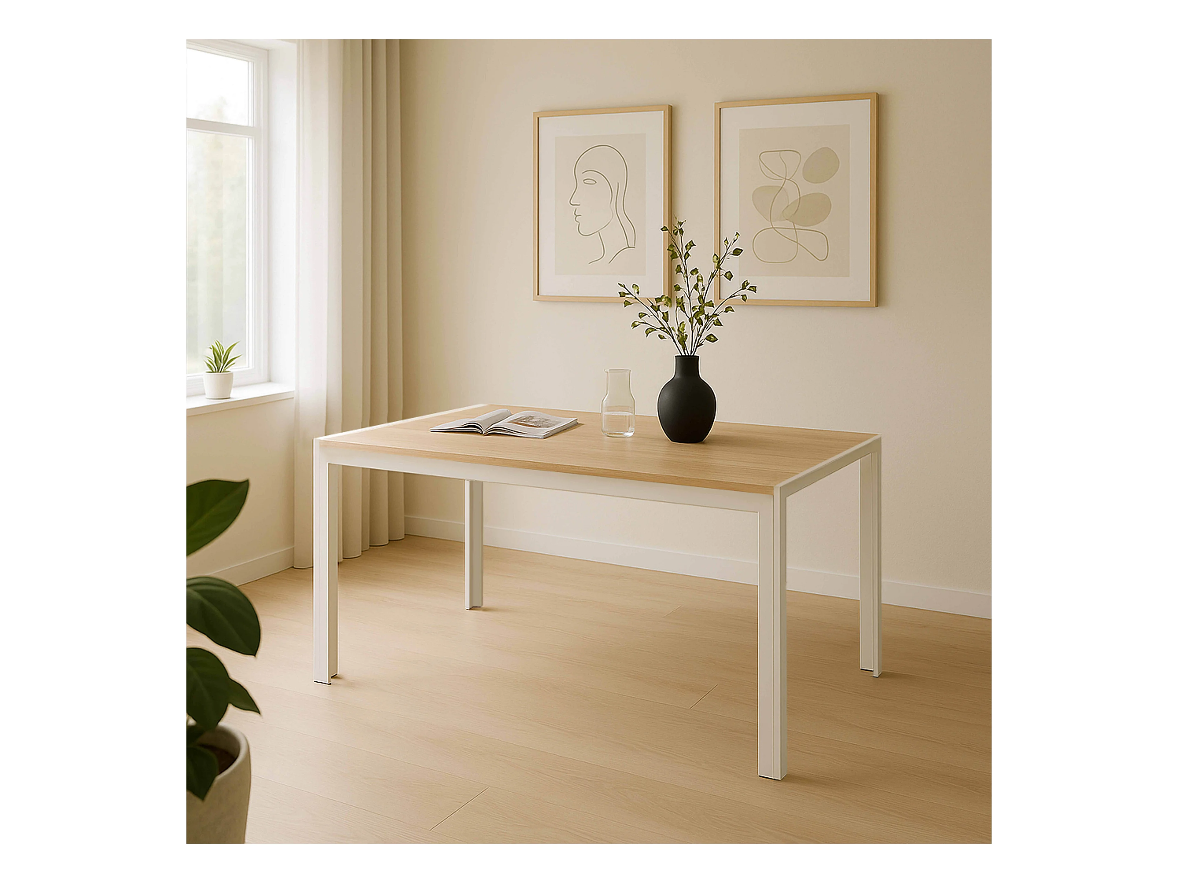 Table à manger rectangulaire frêne blanc et métal anthracite Evy 130cm