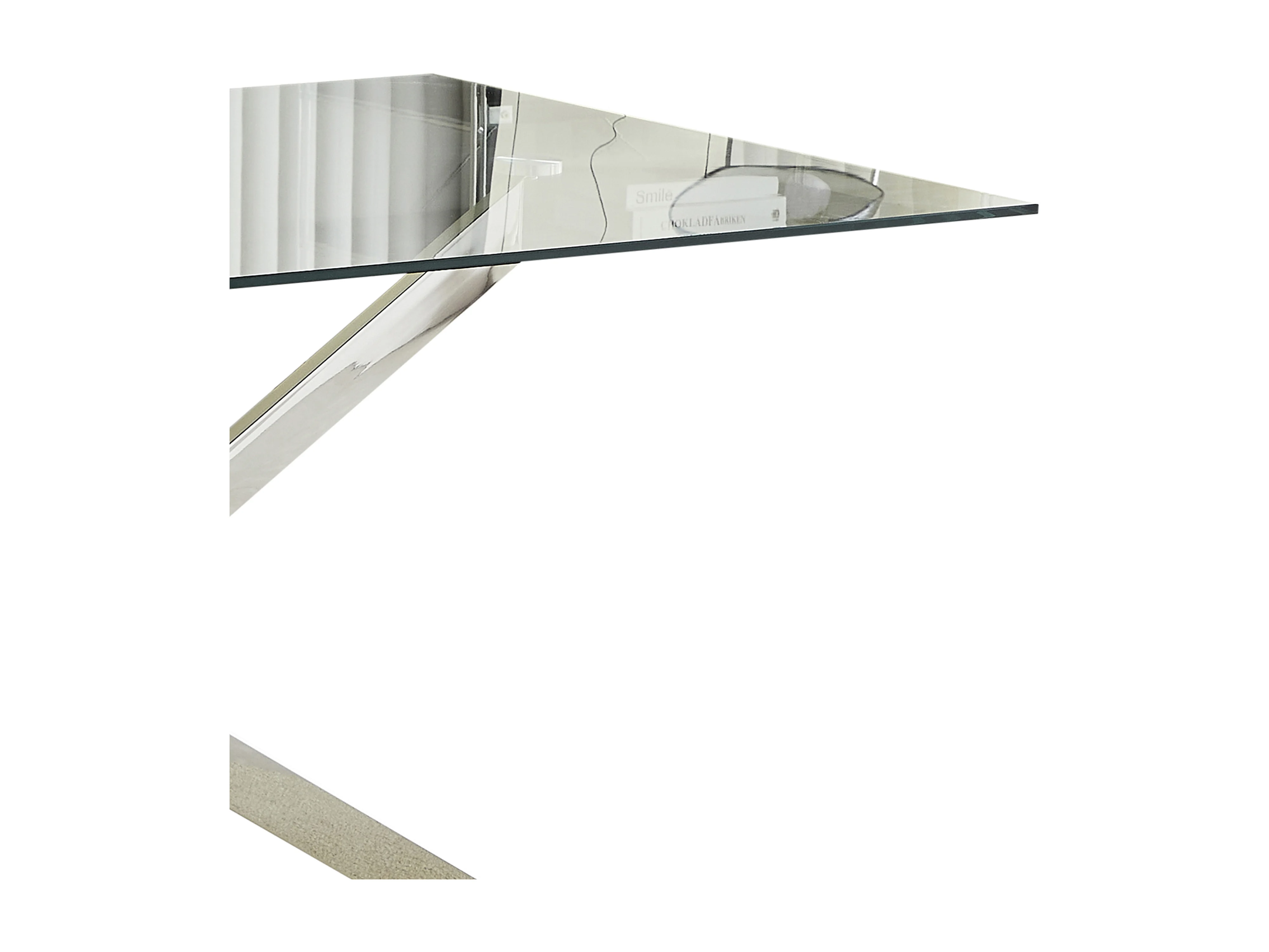 Table à manger rectangulaire en verre trempé transparent et métal chromé – 6 personnes – CHIARA