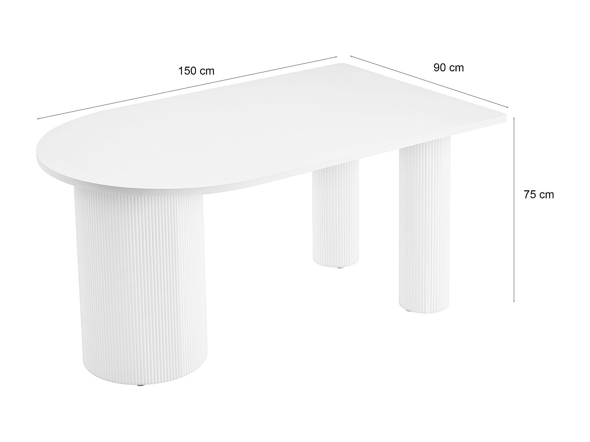 Table à manger rectangulaire – Noir – côté arrondi – pieds colonnes cannelés – 150×90 cm – DICALIZE