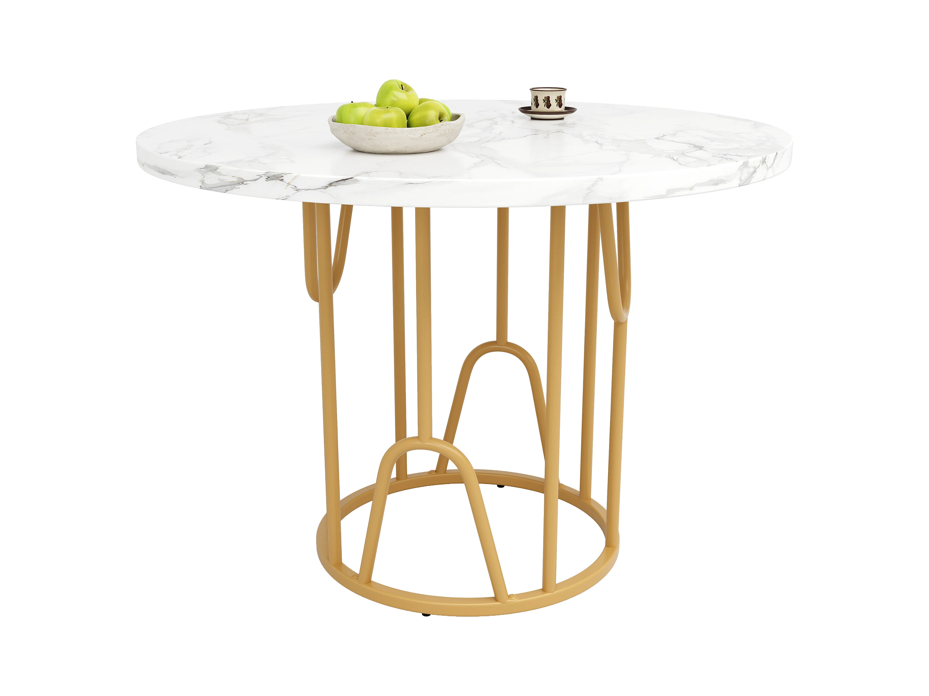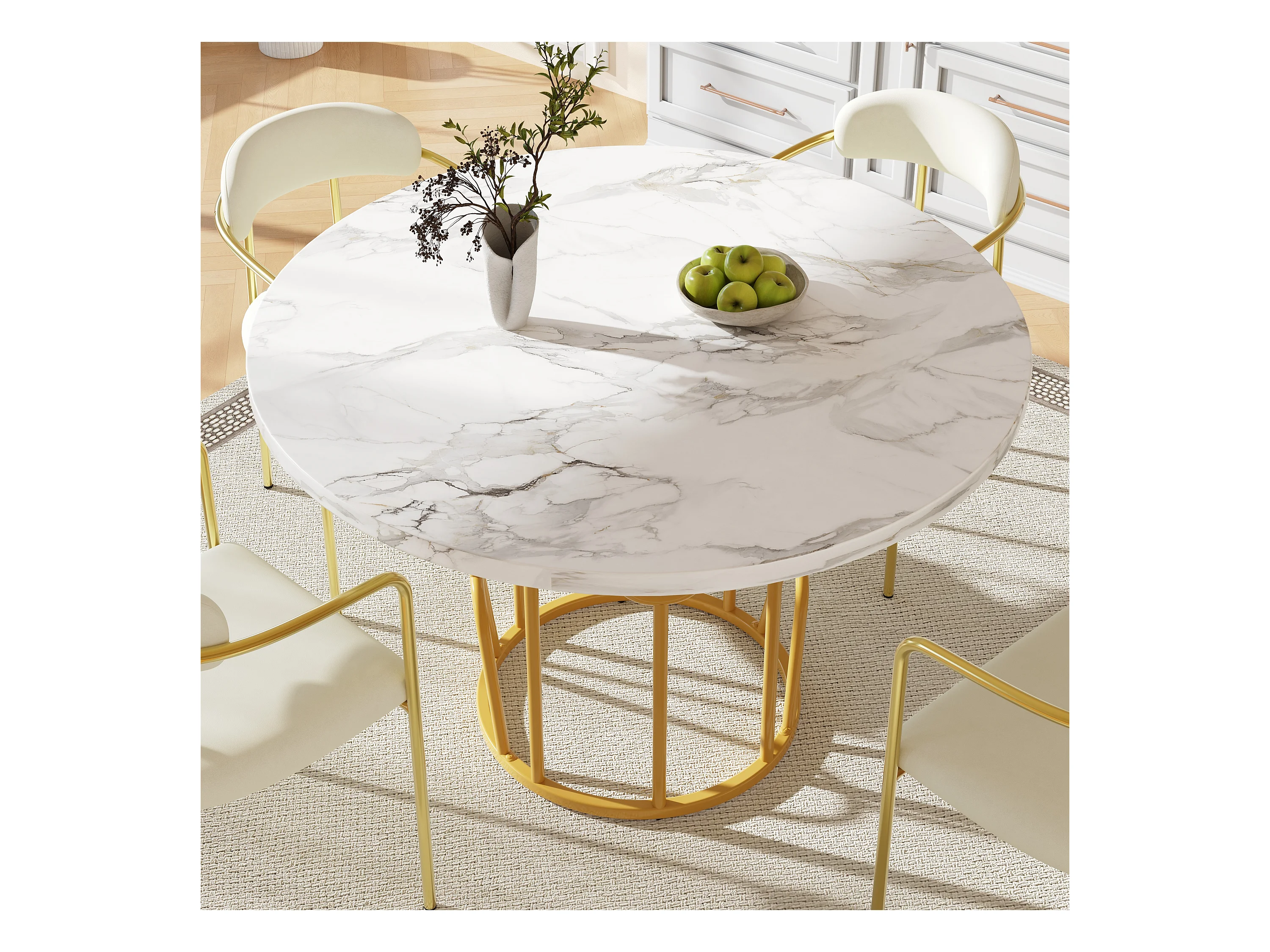 Table à manger ronde avec plateau en MDF effet marbre et pieds en métal doré - pour salles à manger et salon