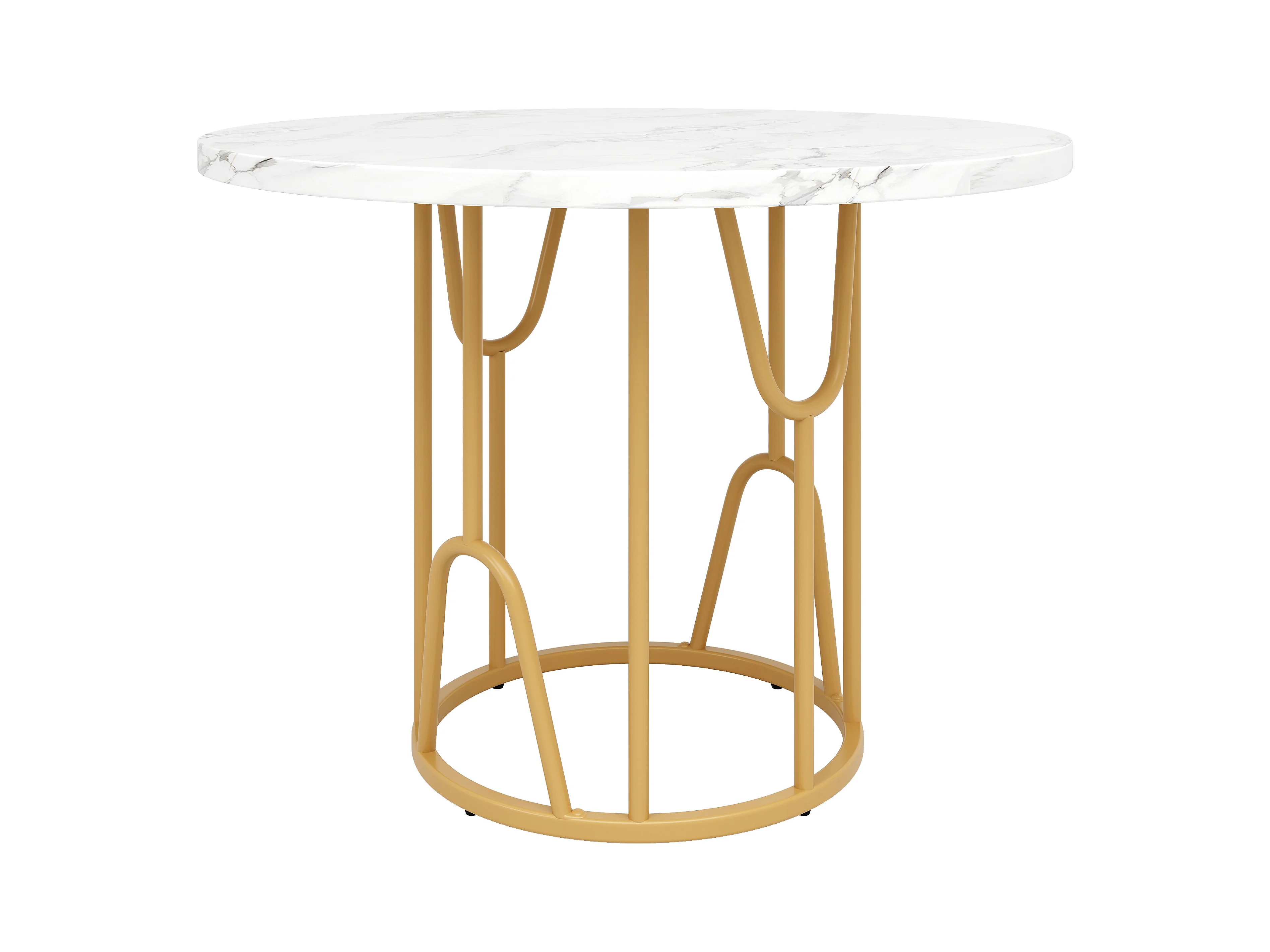 Table ronde pour salle à manger, MDF imitation marbre, pieds métalliques dorés, (100x100x76 cm)