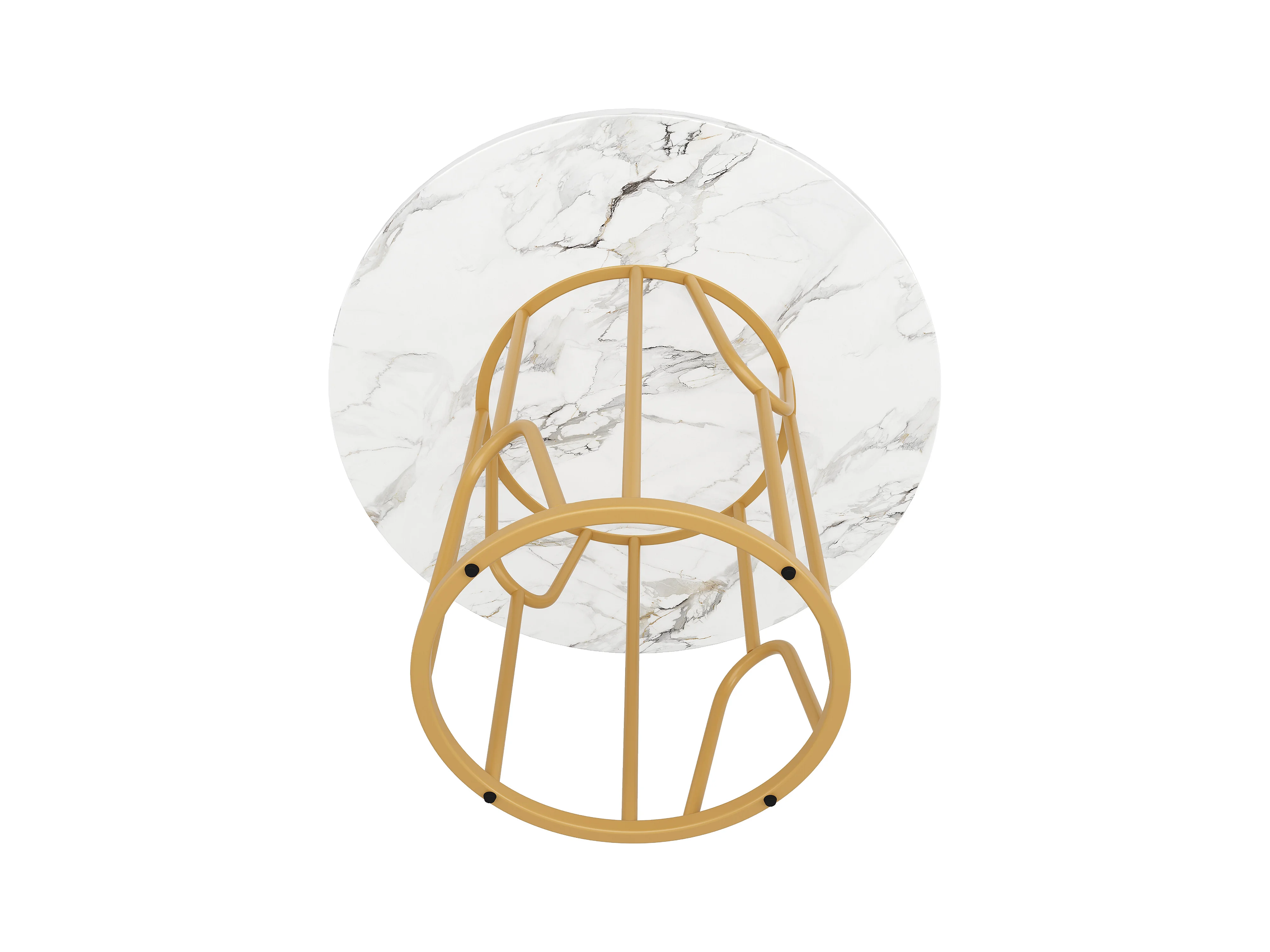 Table à manger ronde 2 personnes, plateau en placage marbre blanc avec pieds central en métal doré - 80x80x76cm