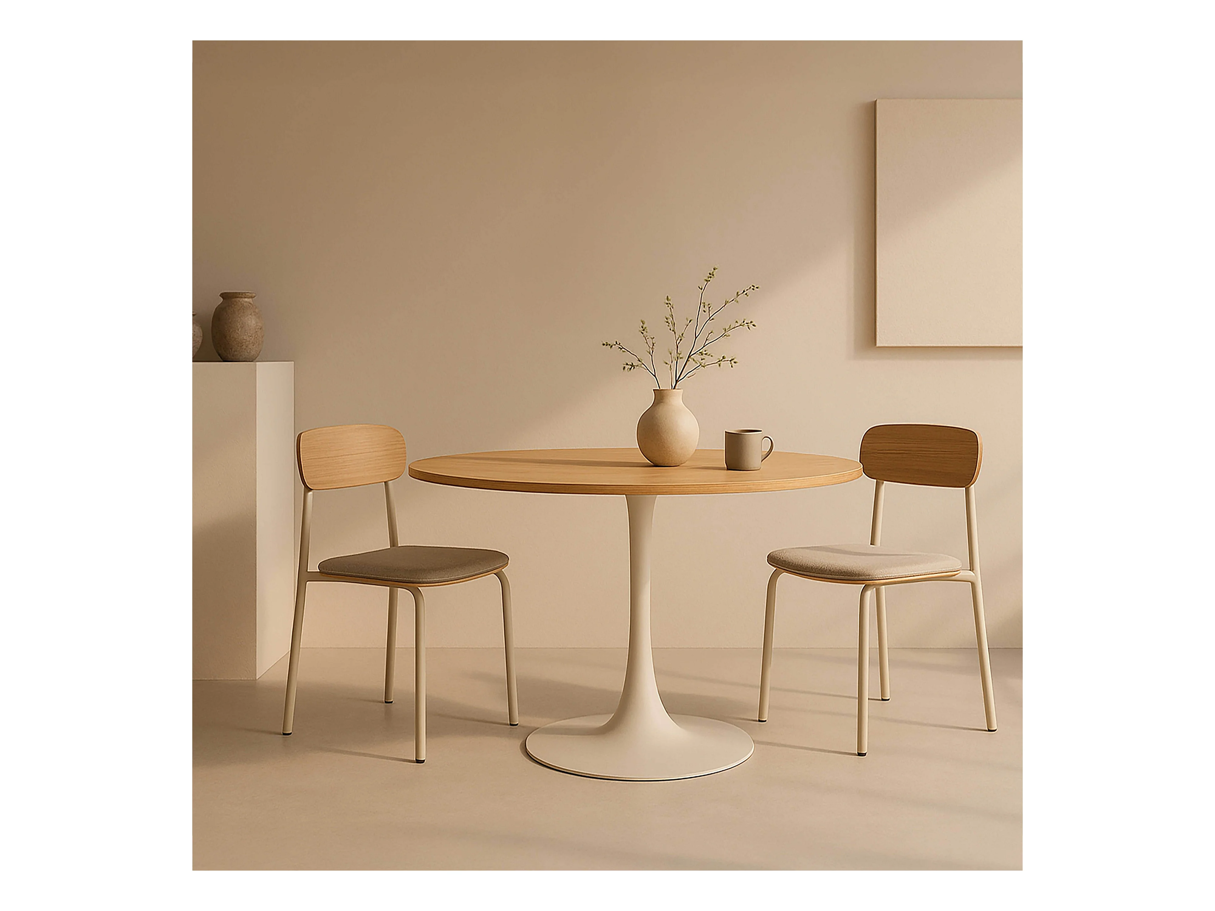 Junco - Table à manger 4 personnes ronde en bois - Bois clair