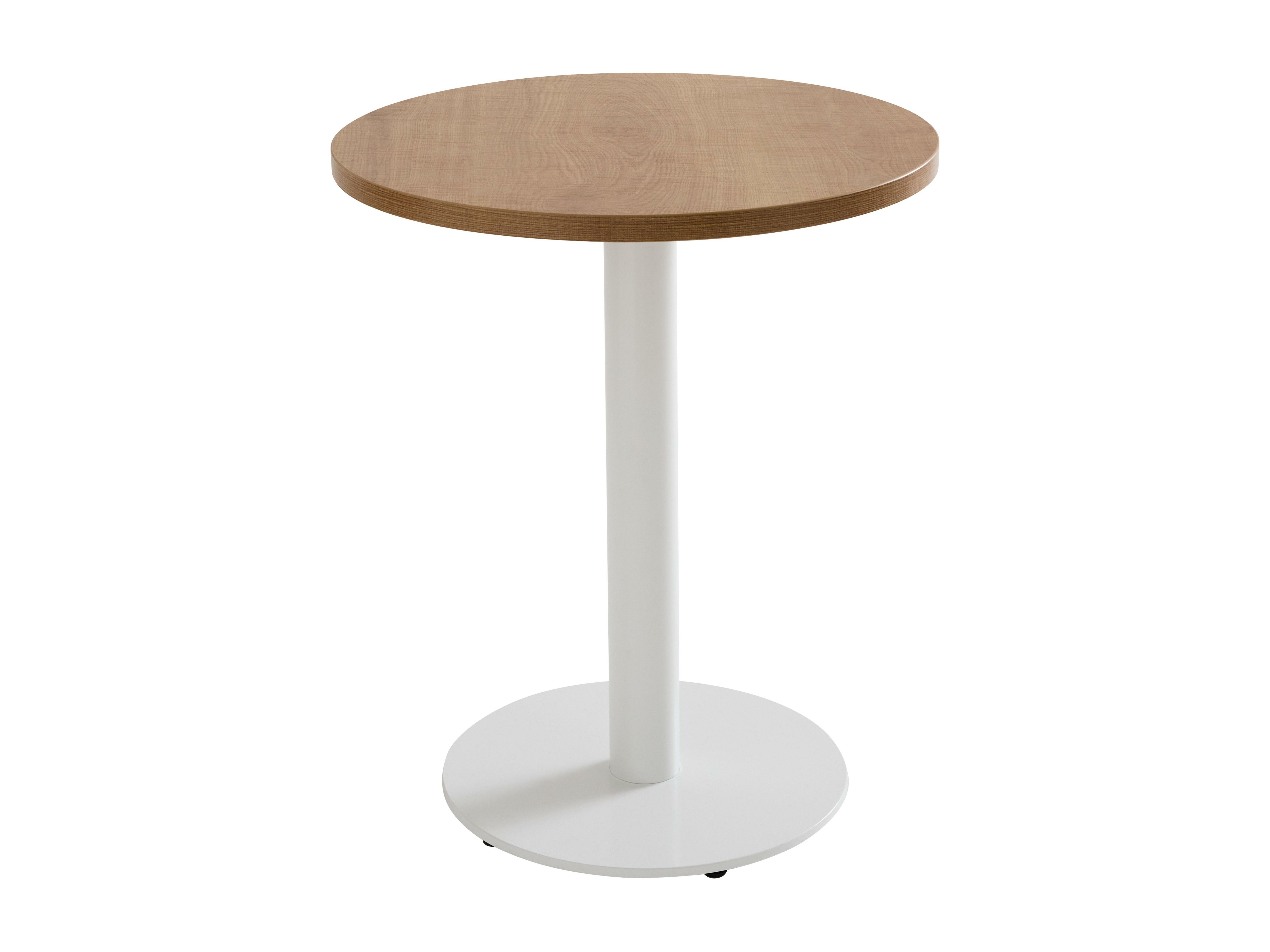 Table à manger ronde 60 cm pied blanc et revêtement bois clair