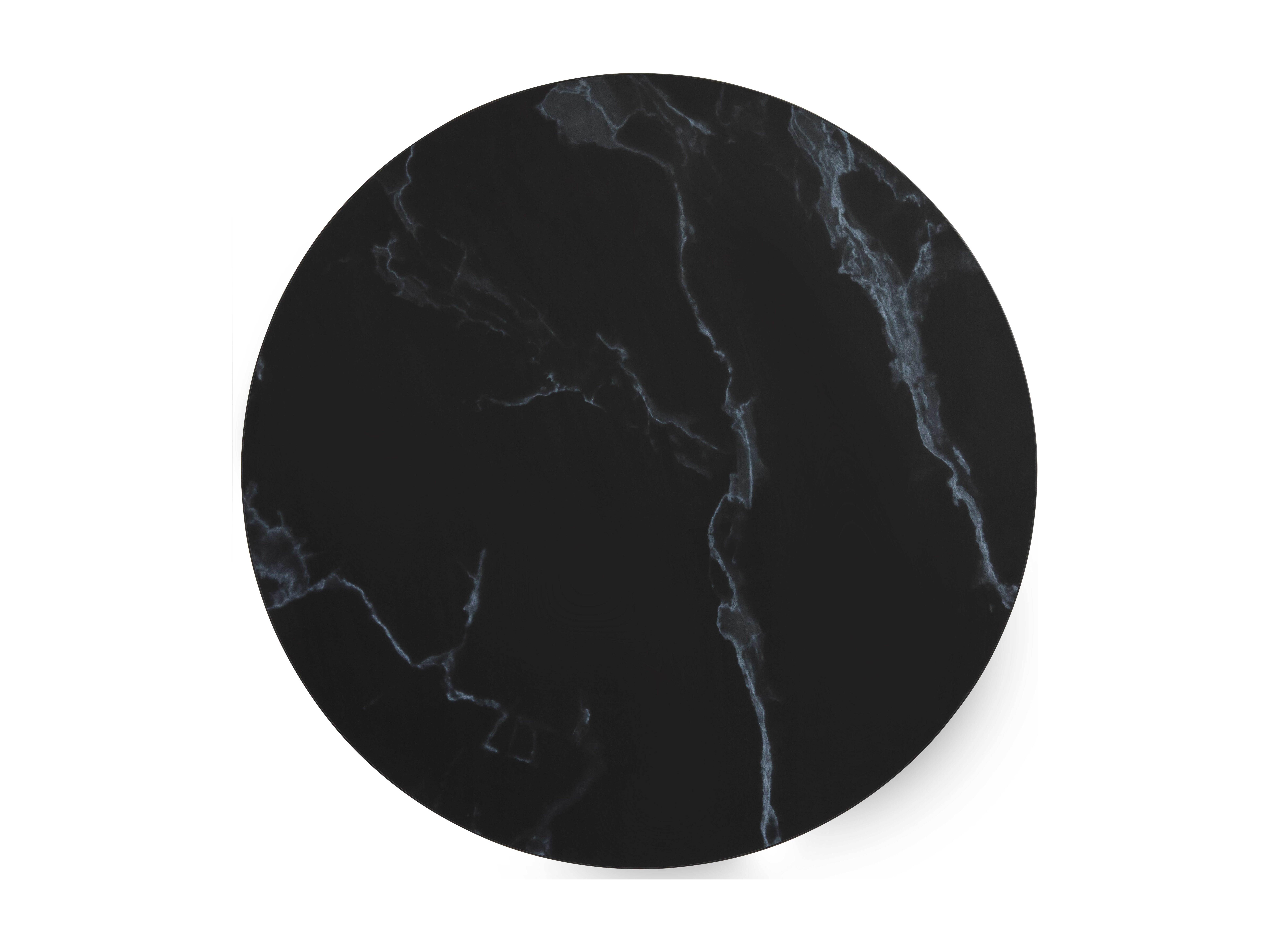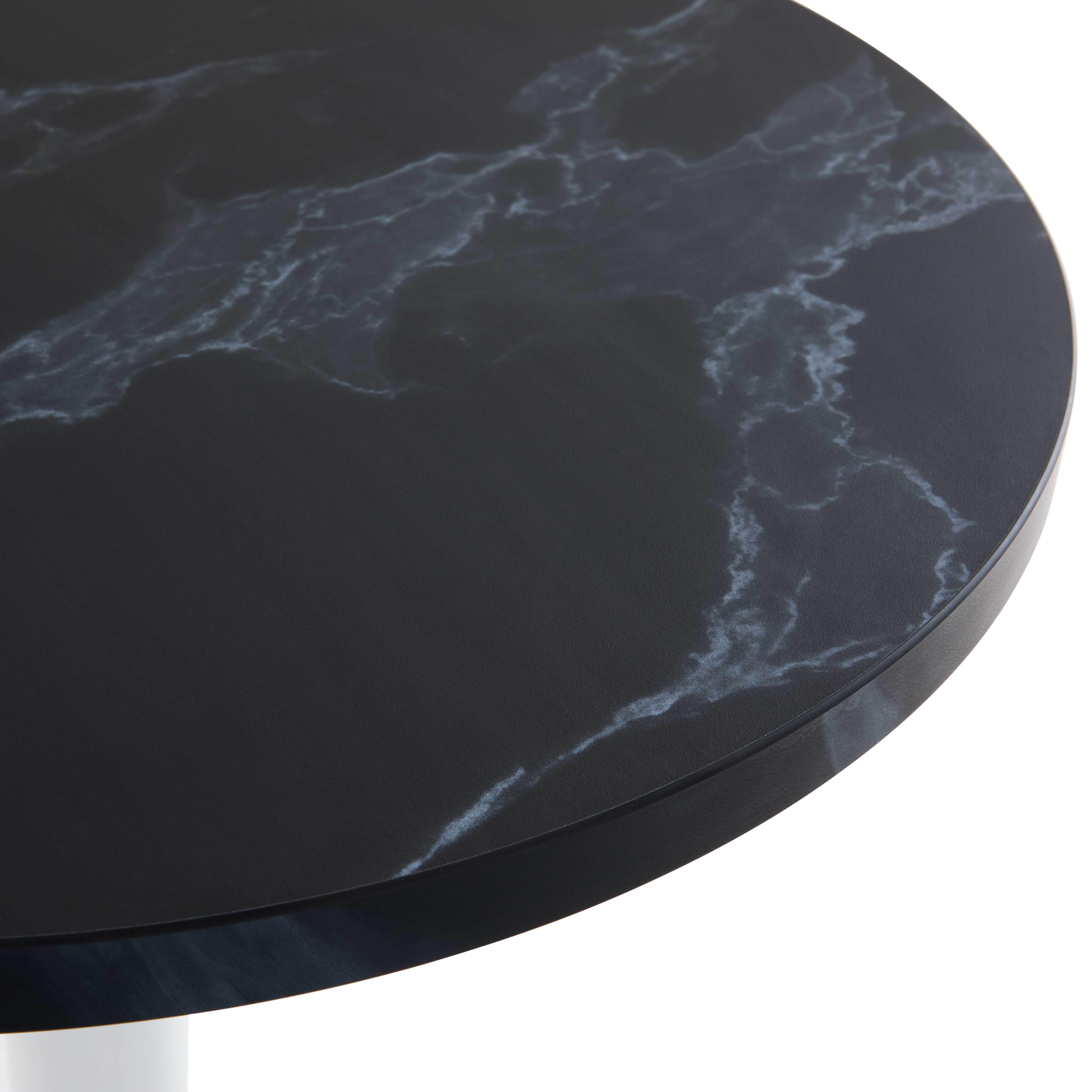 Table à manger ronde 60 cm pied blanc et revêtement marbre noir