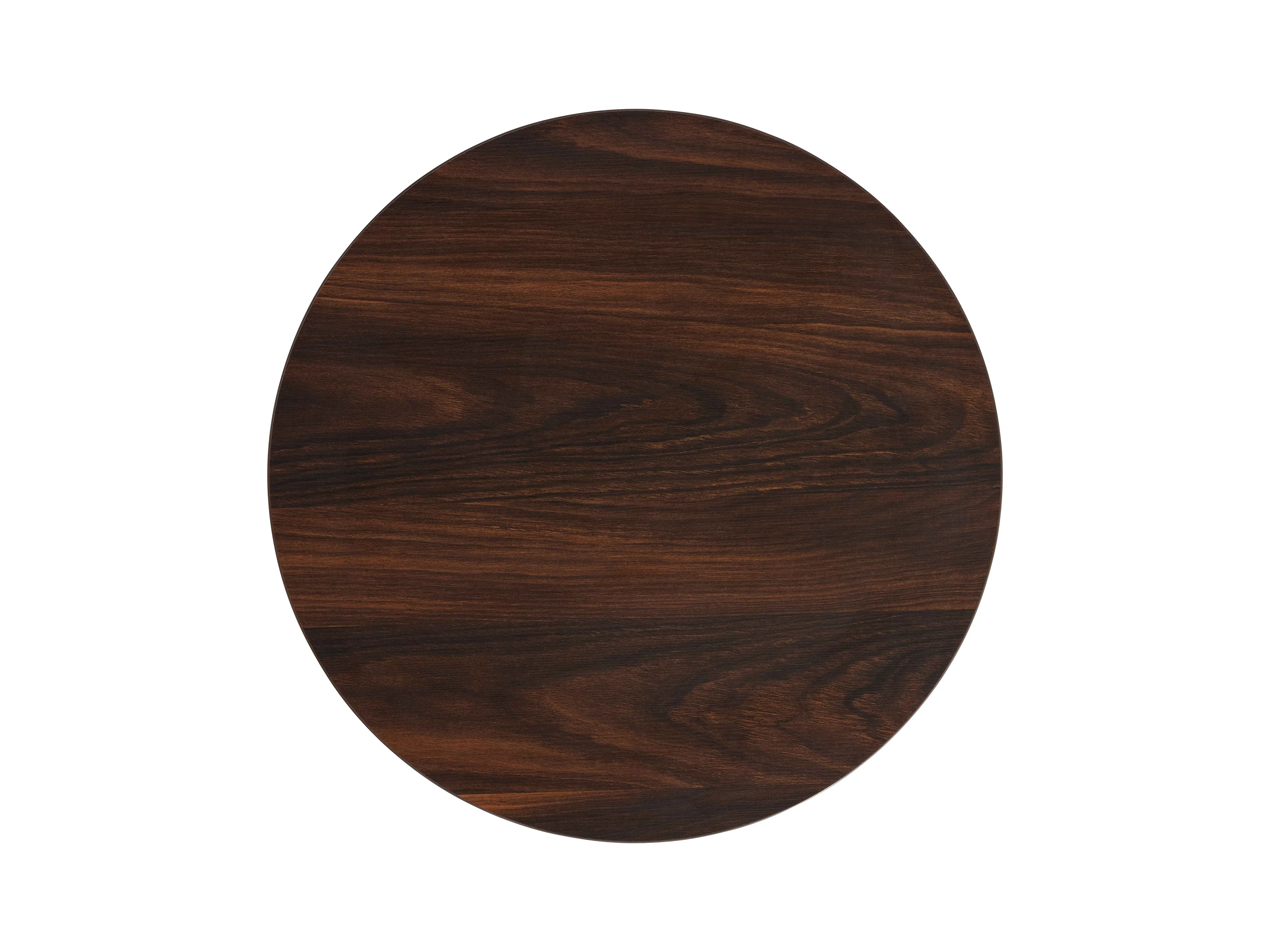 Table à manger ronde 60 cm pied noir et revêtement bois foncé