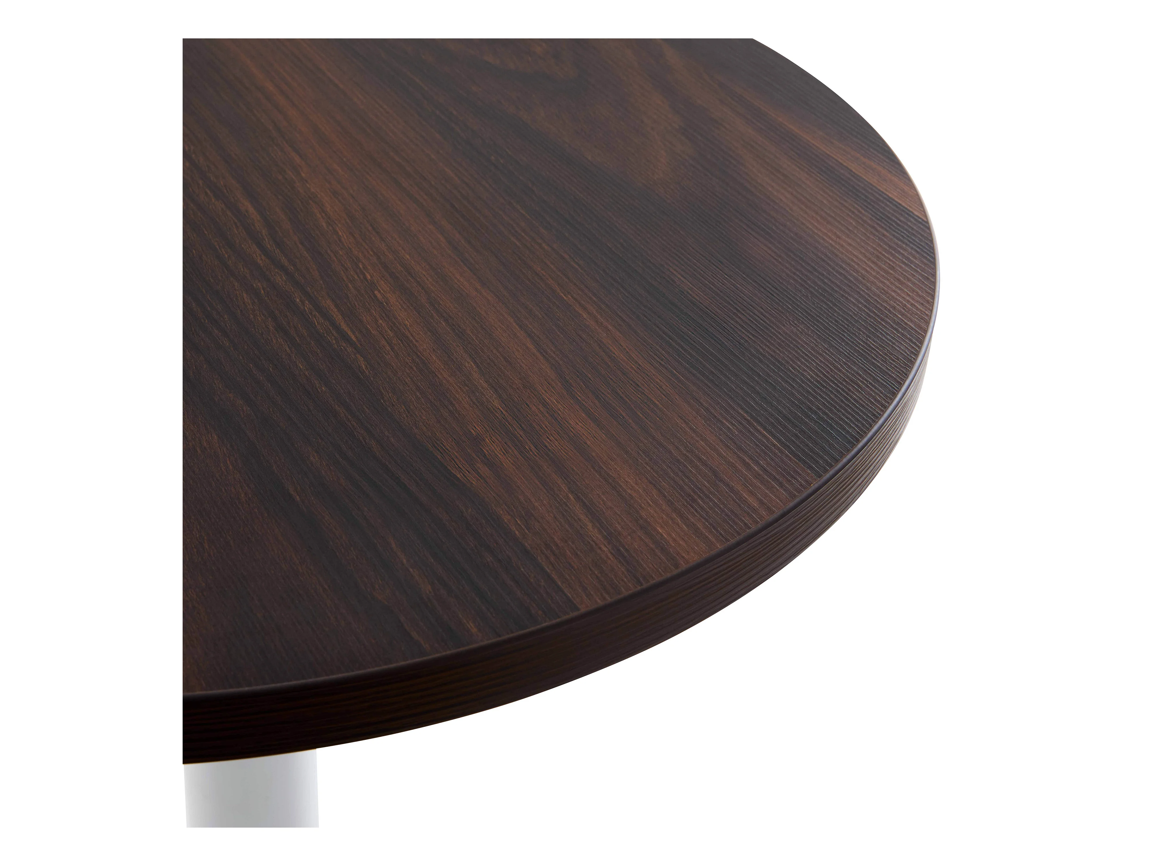 Table à manger ronde 60 cm pied blanc et revêtement bois foncé
