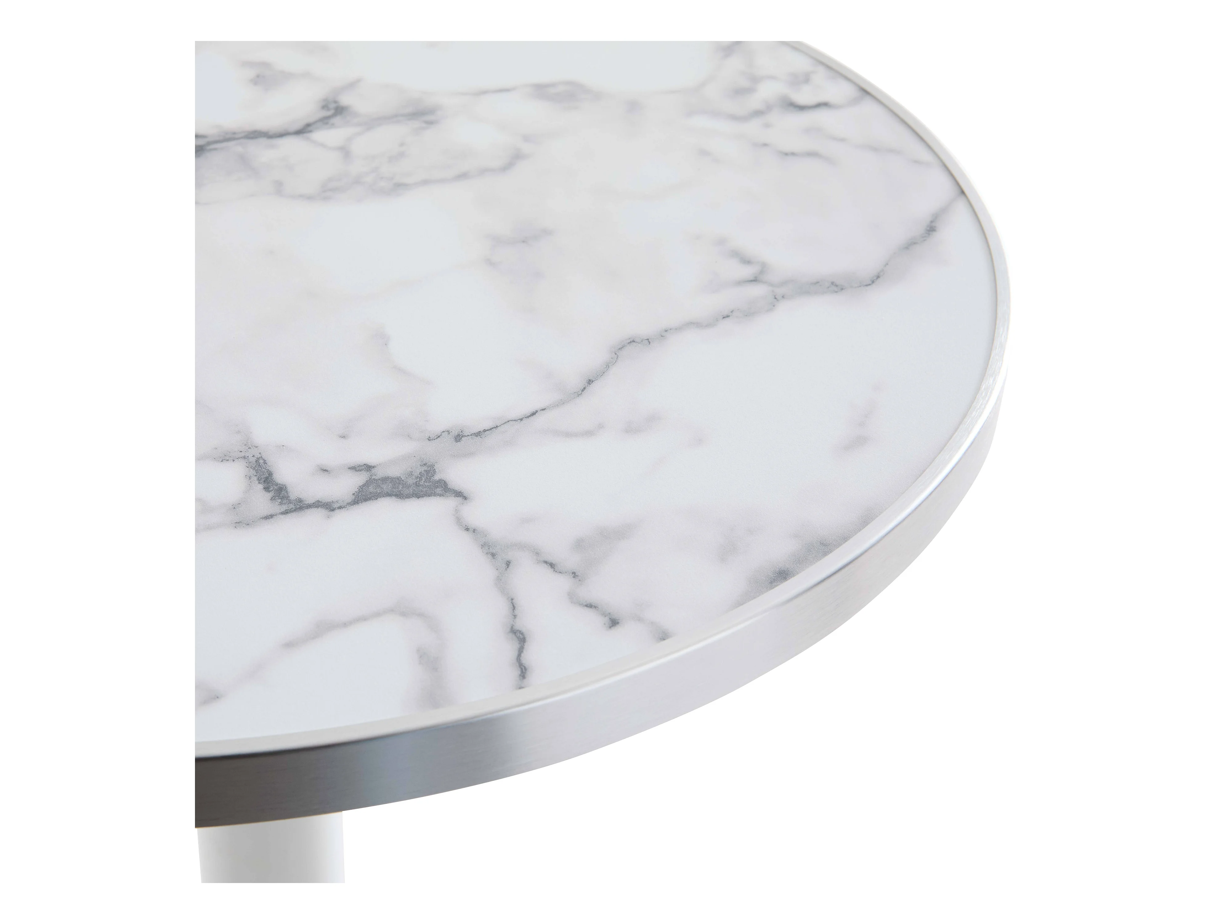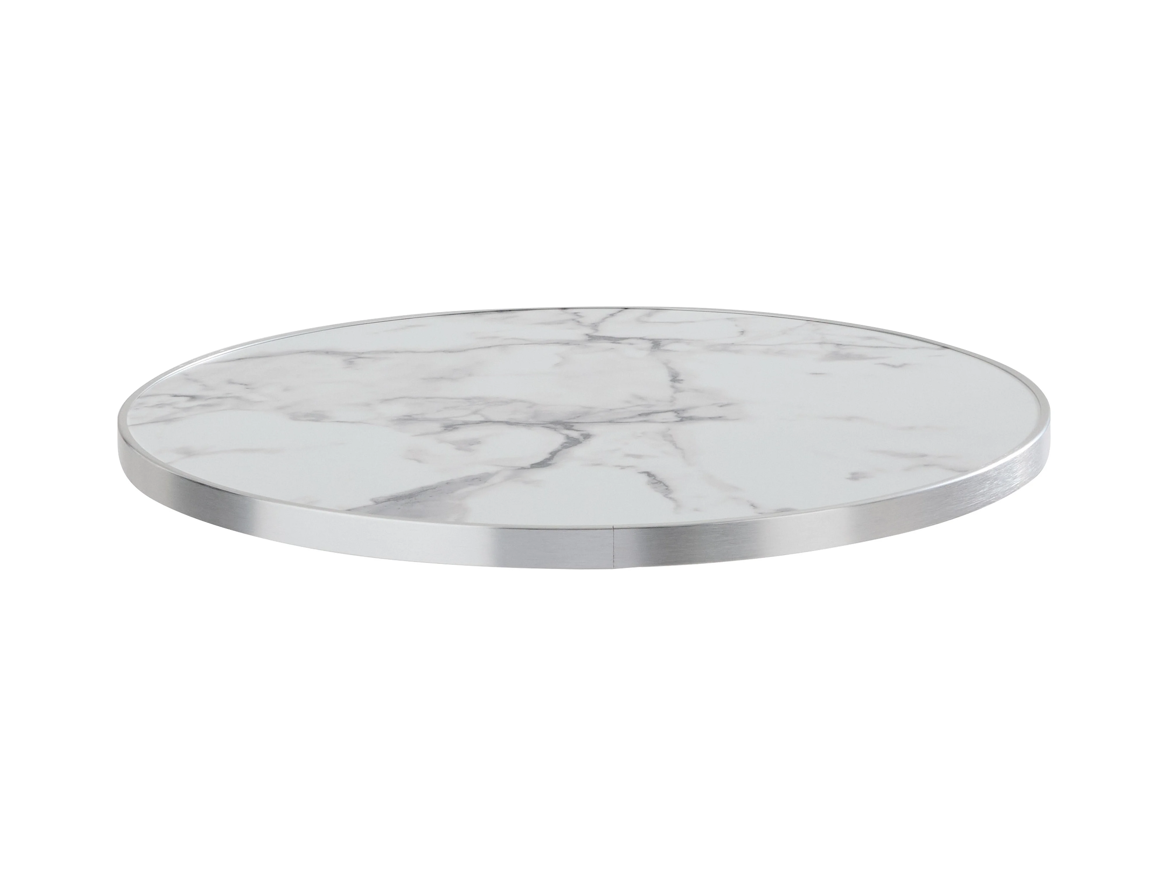 Table à manger ronde 60 cm plateau marbre blanc/argent et pied argenté