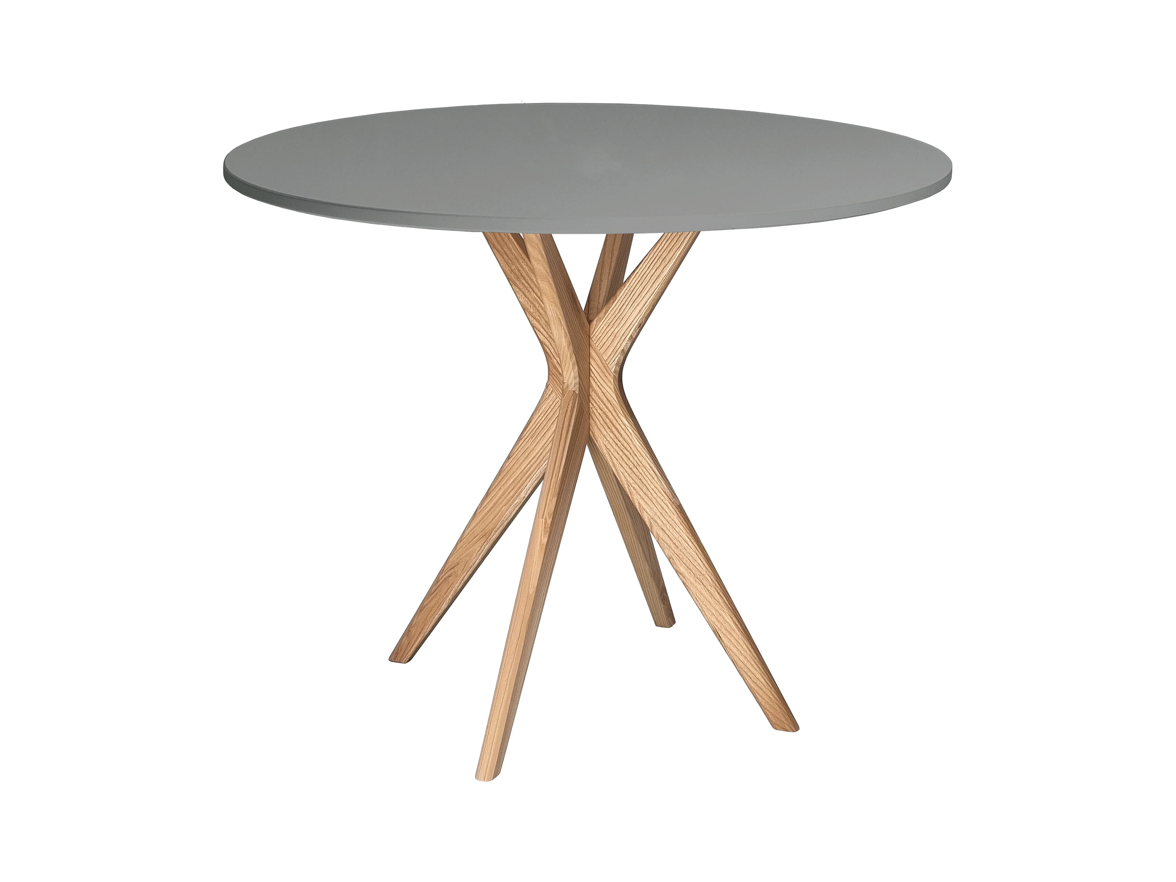 Table à manger ronde 80cm Jubi Gris Perle | Pied en frêne teinté chêne
