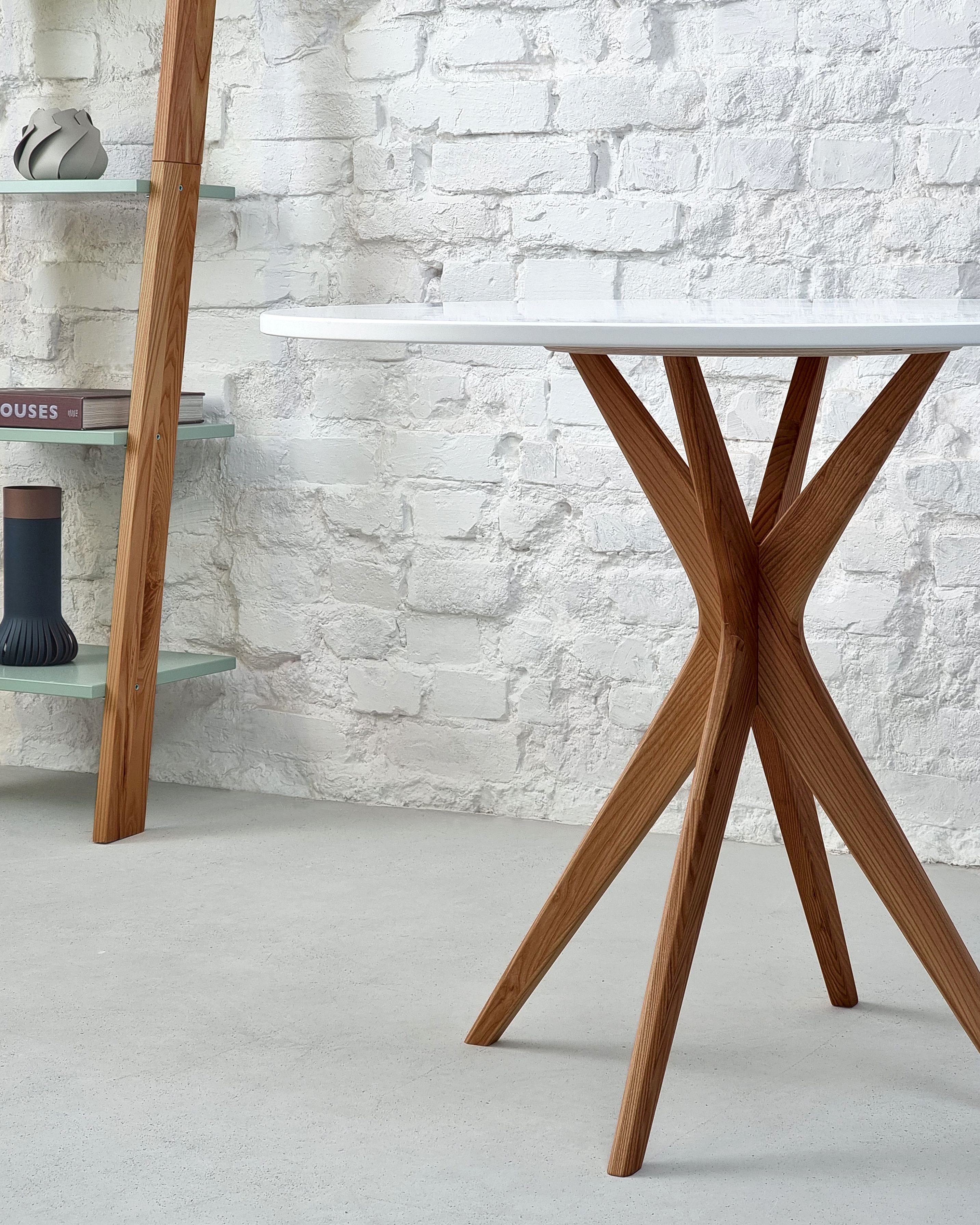 Table à manger ronde 80cm Rose Antique | Pied en frêne teinté chêne