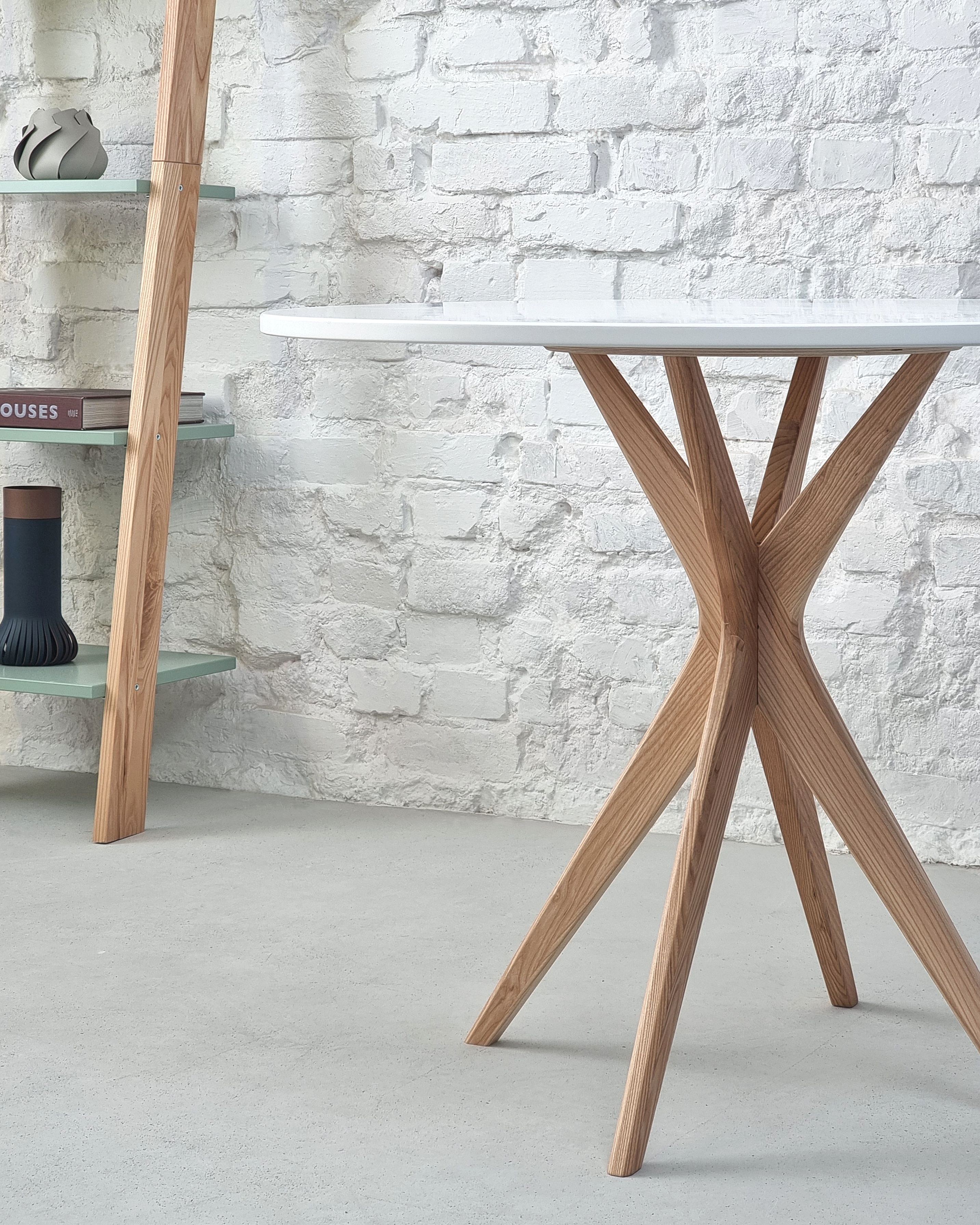 Table à manger ronde 90cm Jubi Blanche | Pied en frêne