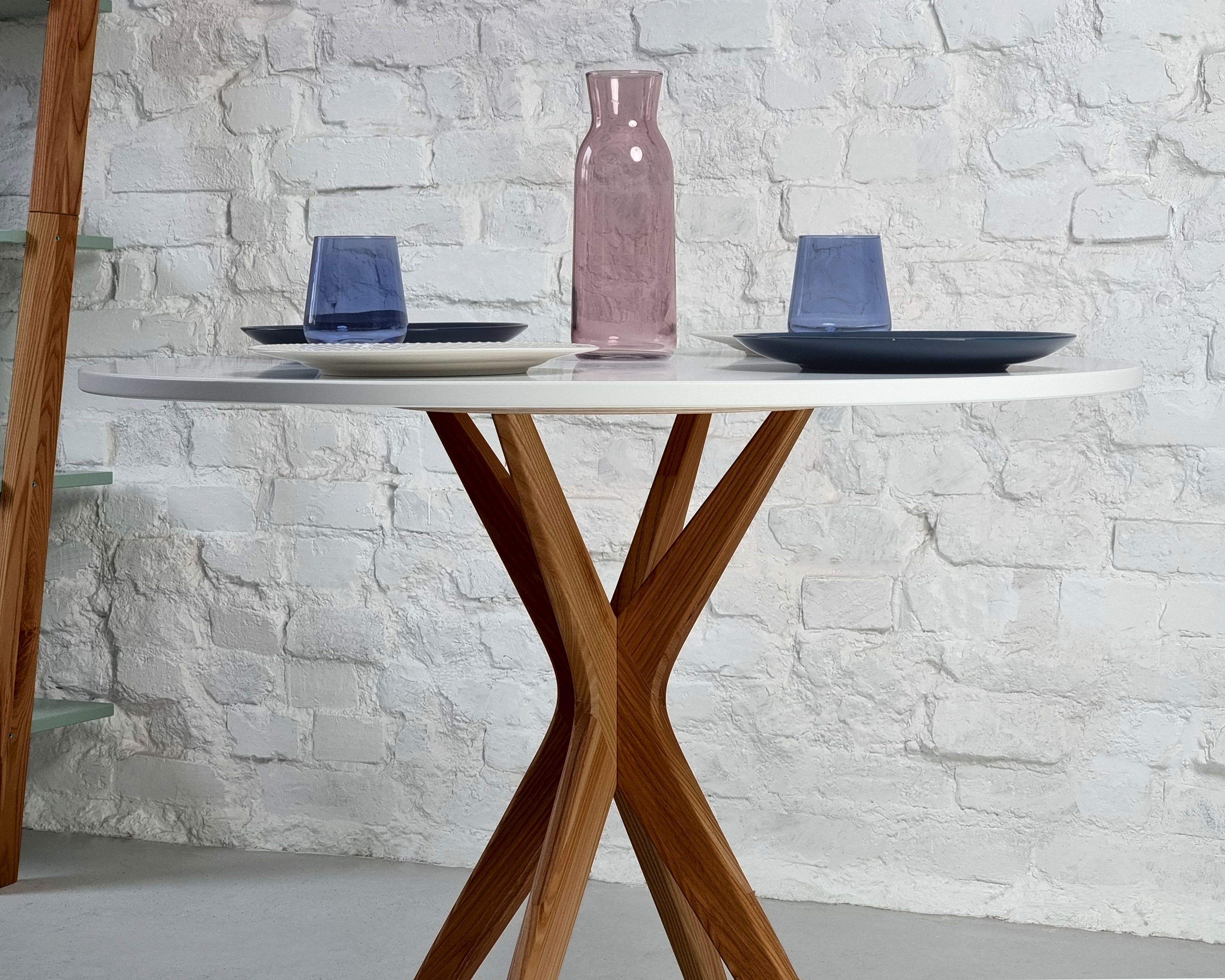 Table à manger ronde 90cm Jubi Blanche | Pied en frêne