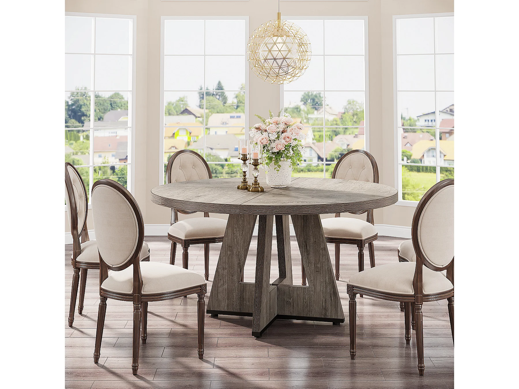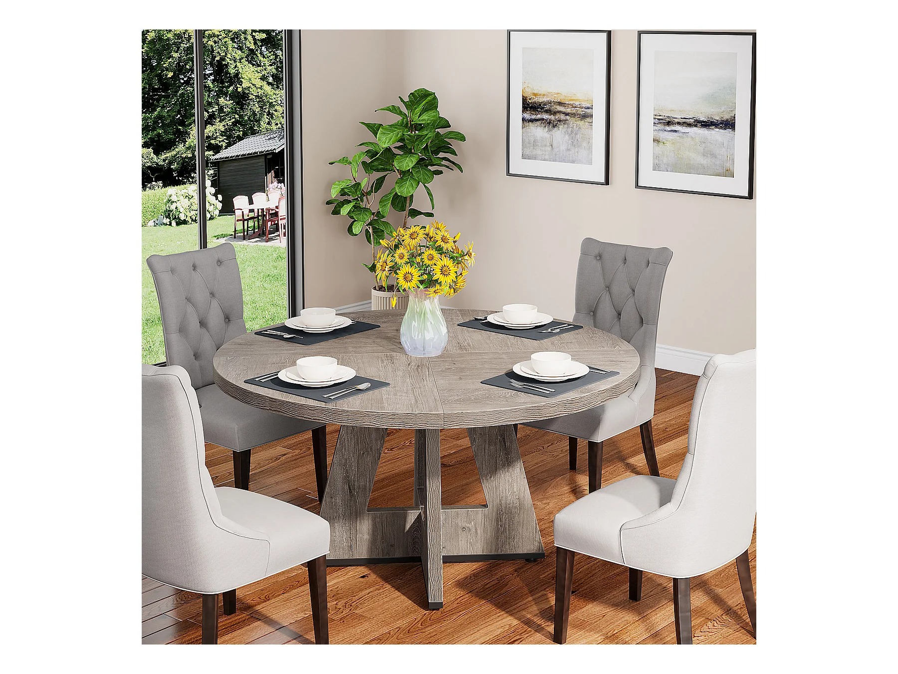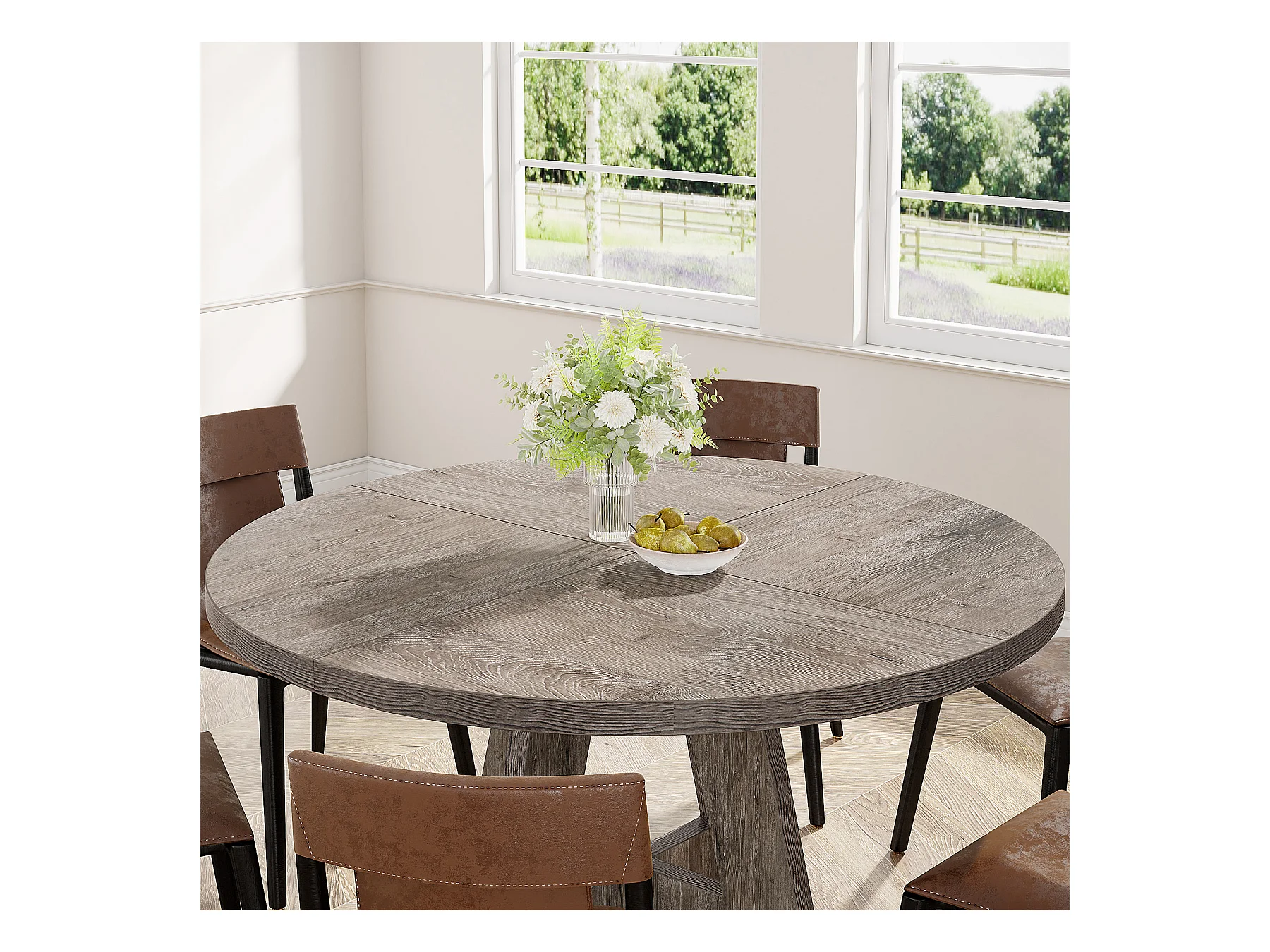 Table à manger ronde de 120 cm, table de cuisine pour salle à manger et salon, grise (table seule)