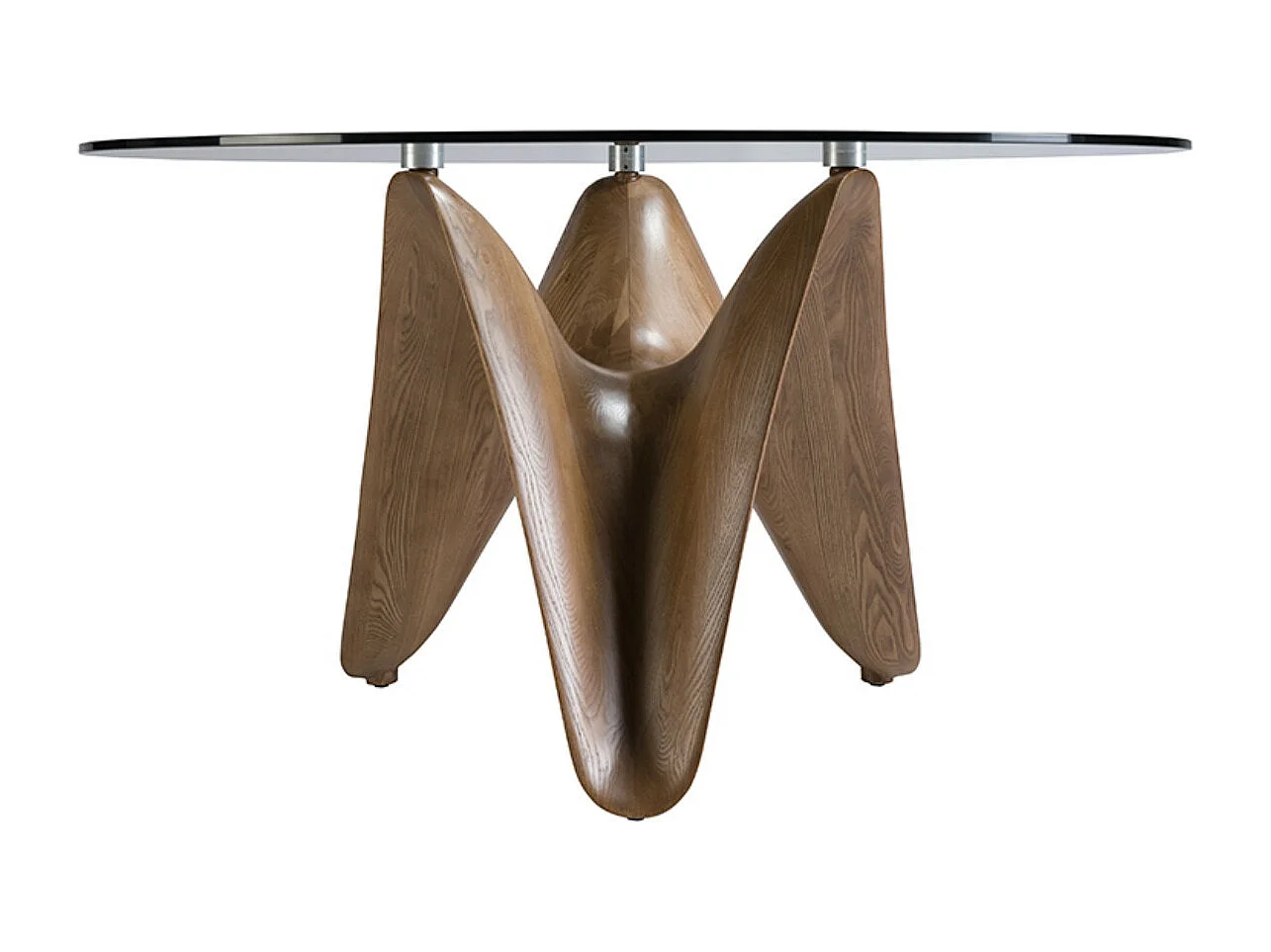 Table à manger ronde design en bois couleur noyer et verre transparent Kantar-Diamètre 150 cm