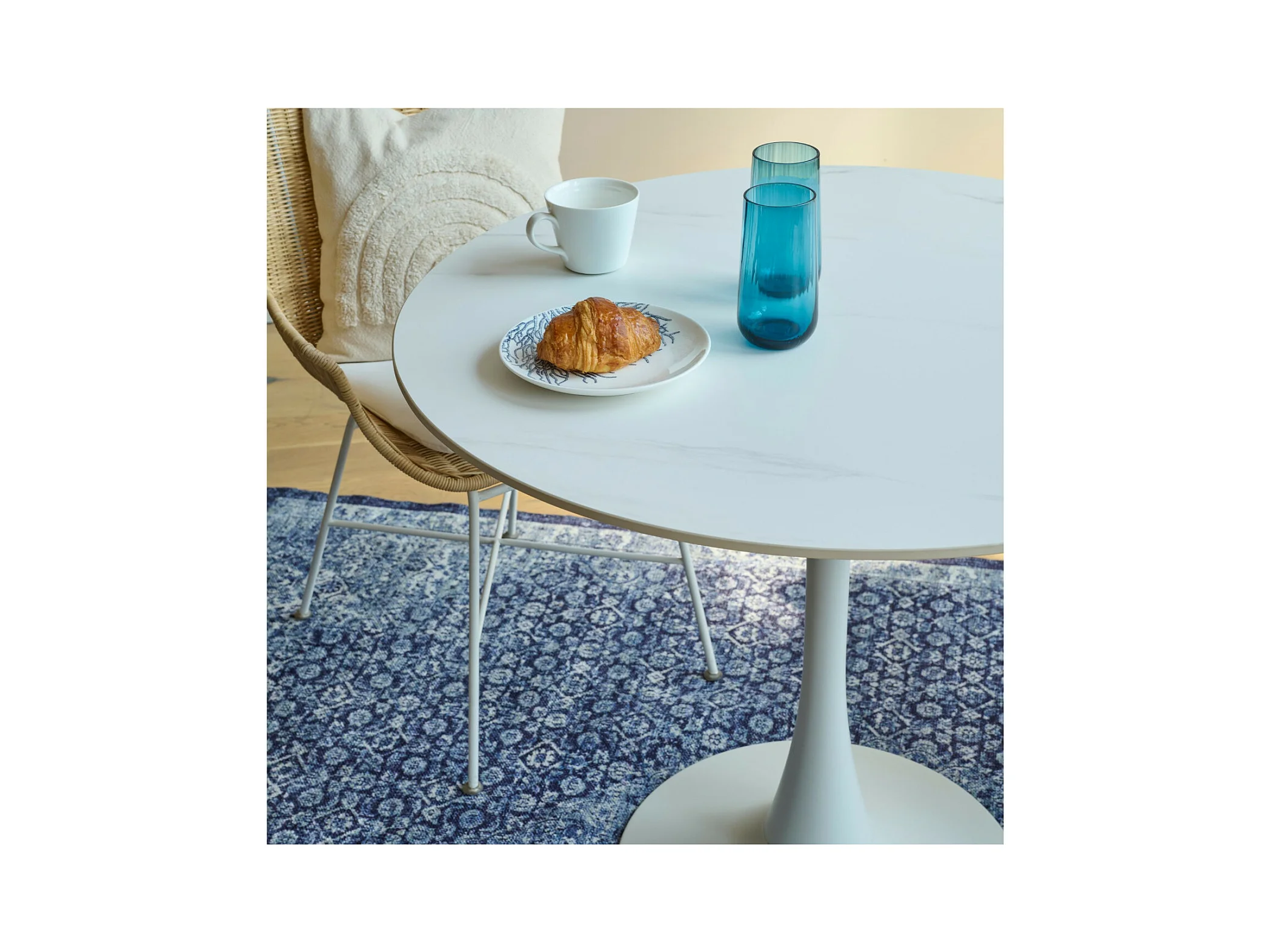Table à manger ronde en céramique et pied tulipe en métal L90 - MARSA