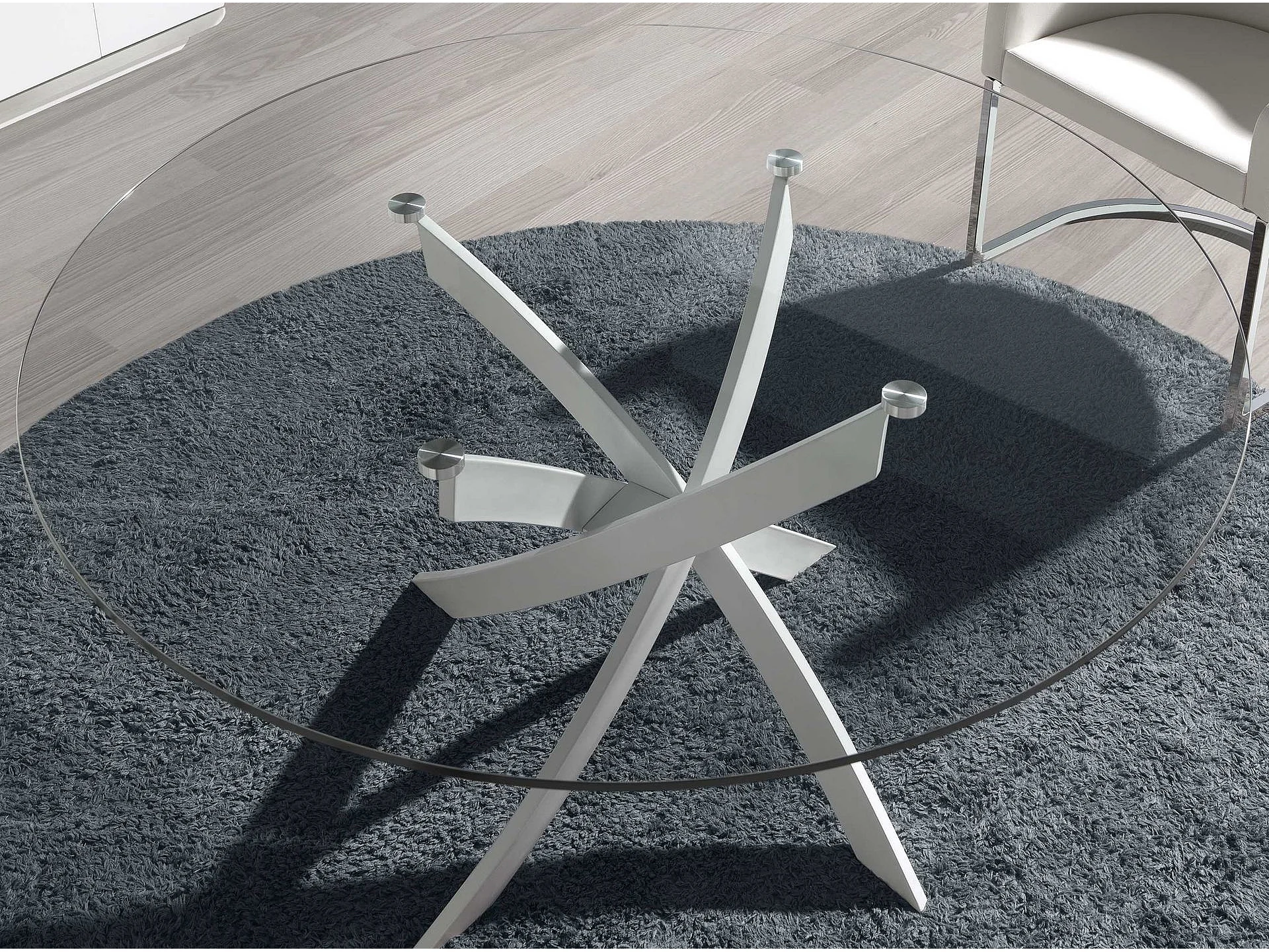 Table à manger ronde verre trempé et acier blanc 1138-Ø110 ANGEL CERDA