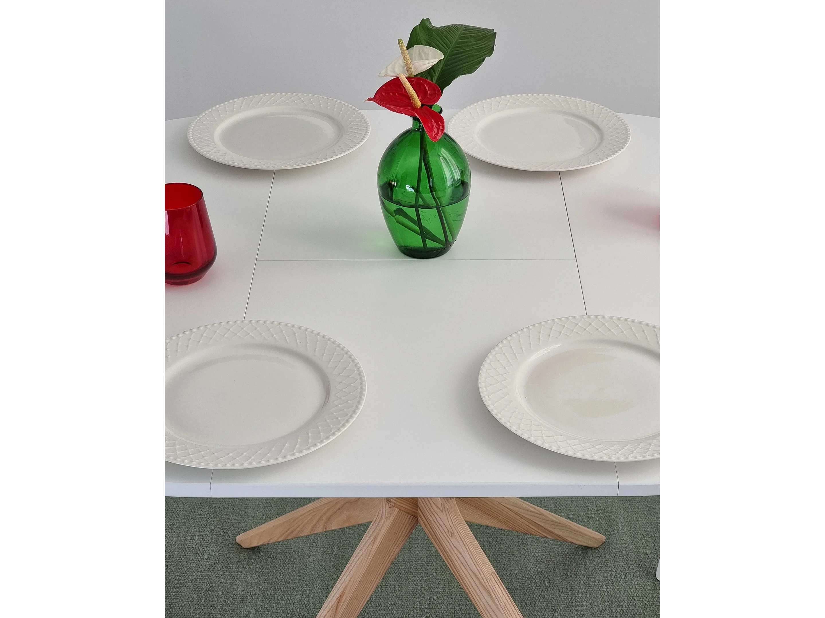 Table à manger ronde extensible 90cm Jubi Blanc | Pied en frêne