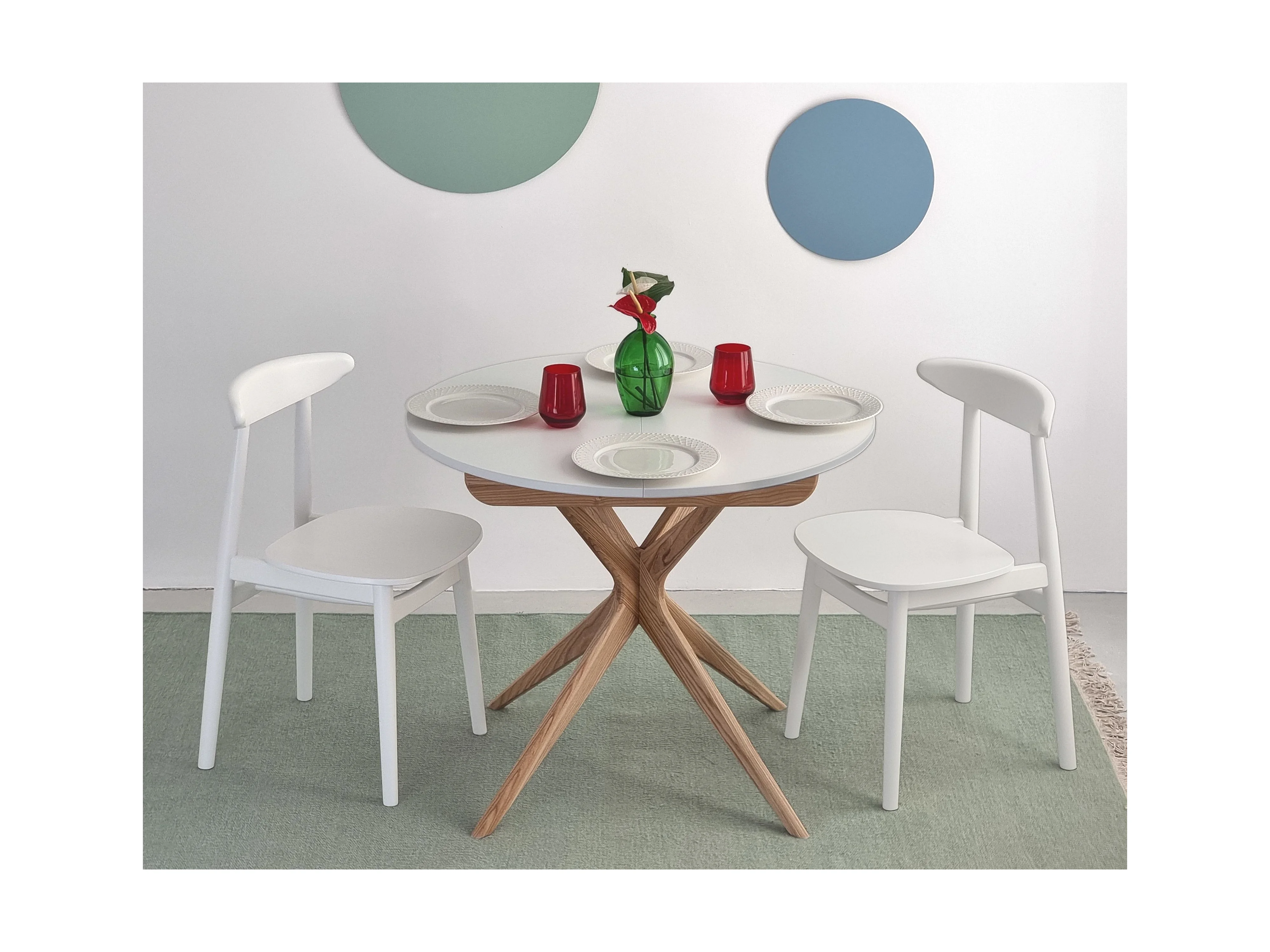 Table à manger ronde extensible 90cm Jubi Frêne