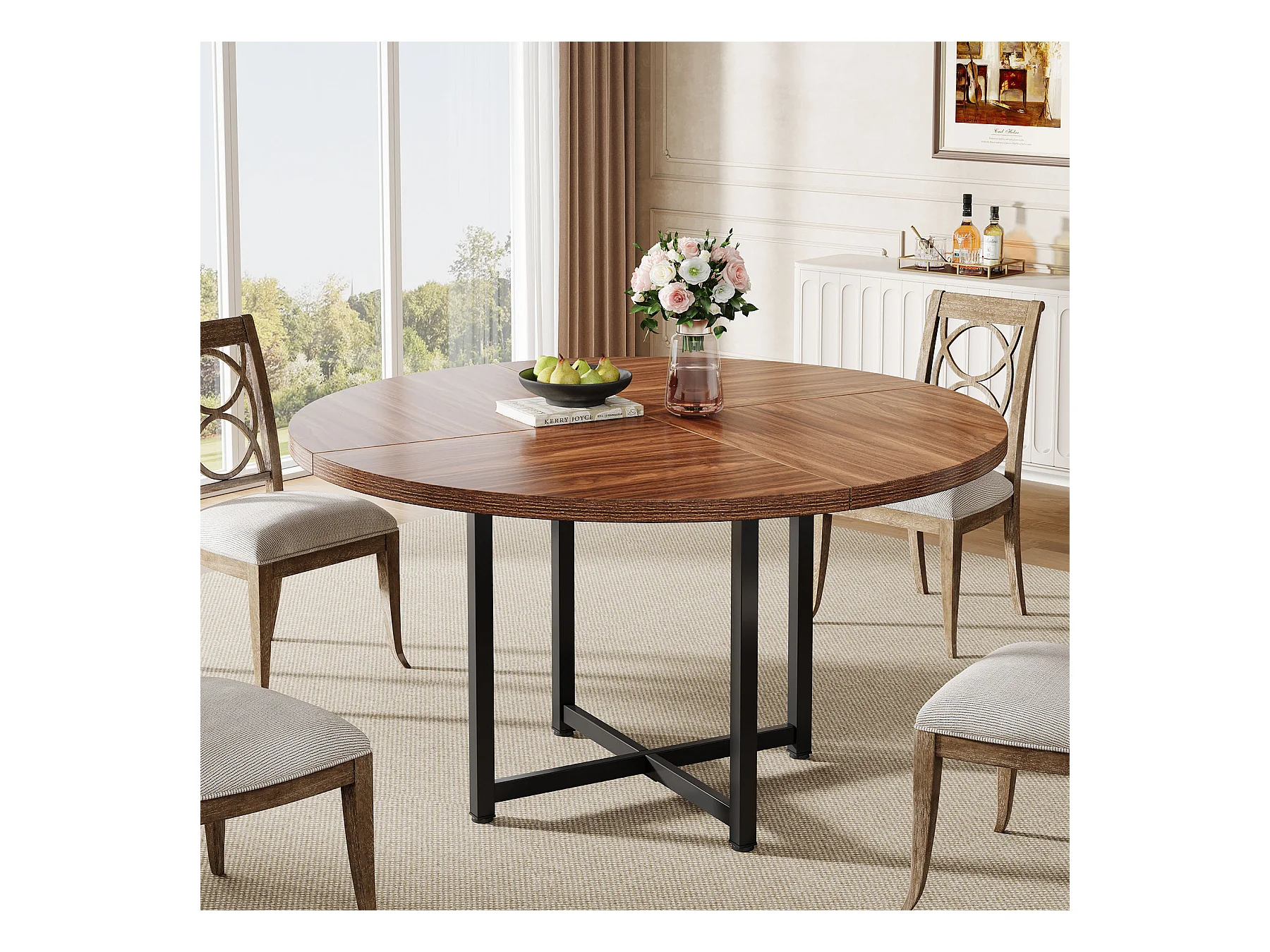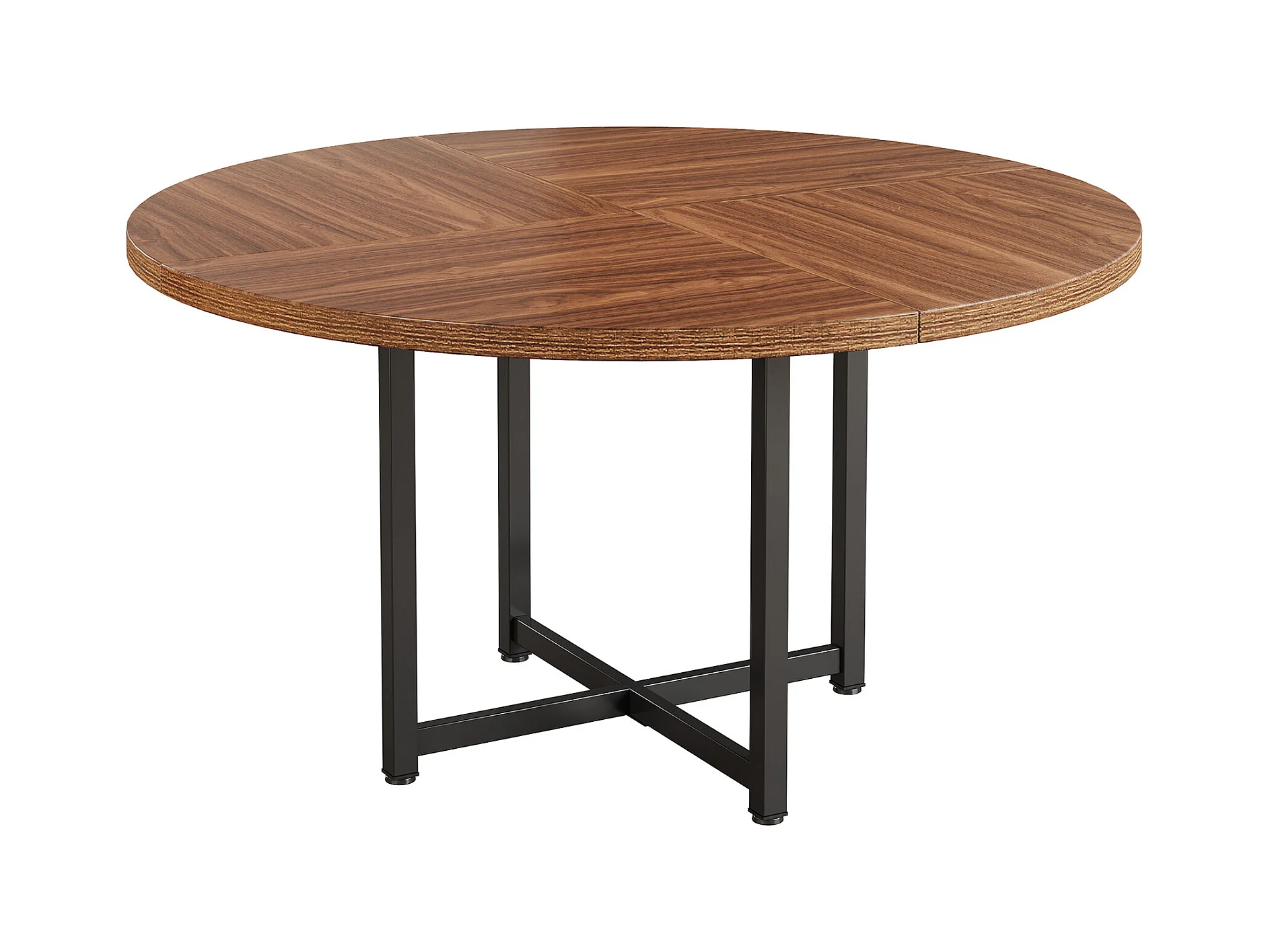 Table à manger ronde pour 4 à 6 personnes, table de cuisine ronde de 120 cm, petite table de salle à manger moderne, avec pieds croisés robustes en métal